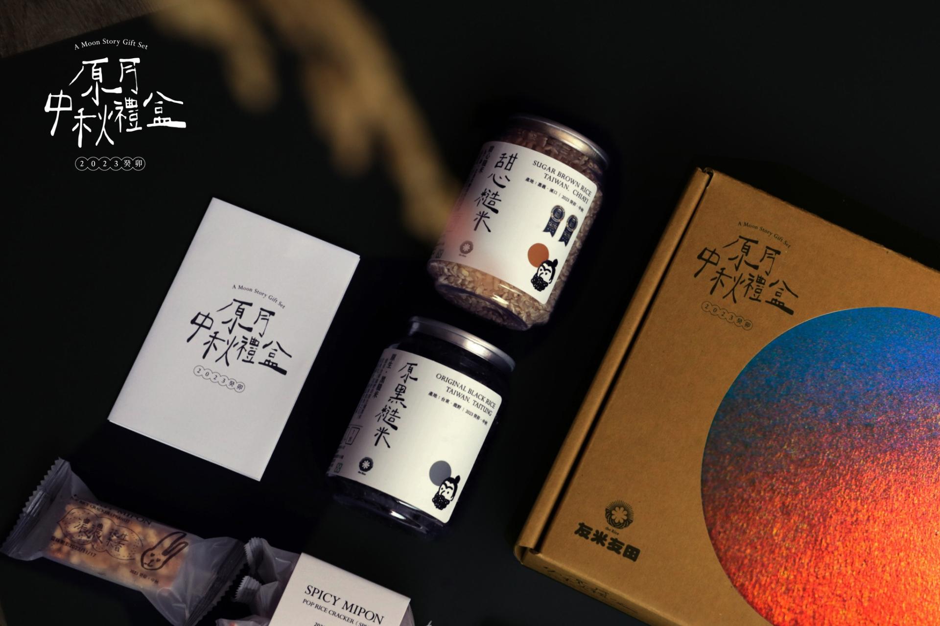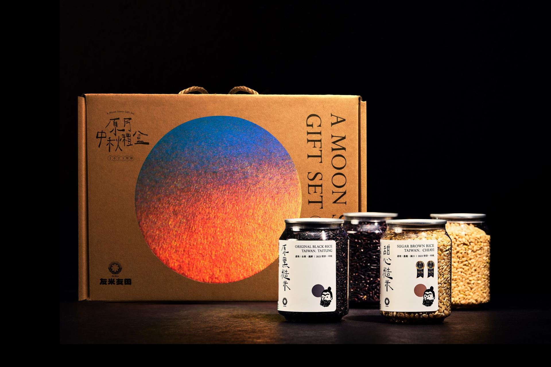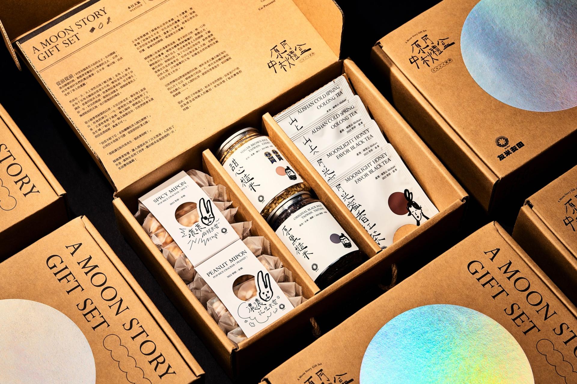 Grandvity Design collaborates with Chiayi-based rice supplier 'The Rice' (友米友田) to introduce an eco-friendly Mid-Autumn gift box. This set includes canned rice, rice crackers, and tea bags, adorned with hand-drawn depictions of traditional Chinese folklore figures Wu Gang (吳剛), Chang'e (嫦娥), and the Jade Rabbit (玉兔). All of these elements are elegantly presented in a minimalist design that perfectly captures the essence of the Mid-Autumn festival.