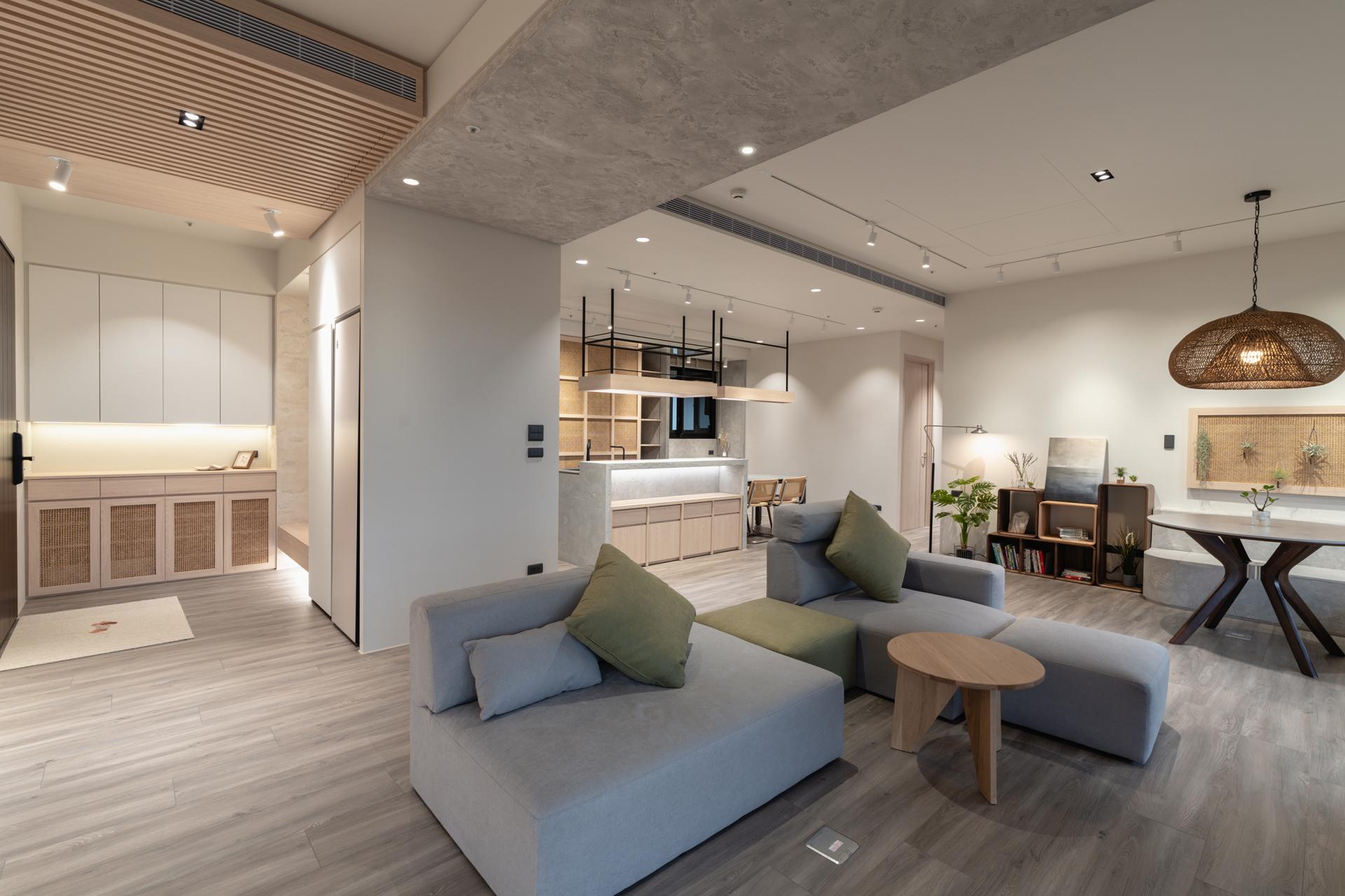 Blending the warm imagery of “日” (day) and the spatial philosophy of “間”(room), the design features a Japanese-style warmth in the wood elements, conveying a serene and comfortable beauty day after day. The multifunctional spaces demonstrate flexibility and adaptability in each area. The designers utilized soft color tones like beige-gray and light wood as the base, paired with environmentally friendly materials and special paints from Italy, providing the space with a refined texture and tactile quality, while also creating a naturally comfortable atmosphere. Whether for quiet rest or focused creativity, every corner exudes warmth and is rich with stories, embodying a life well-lived.