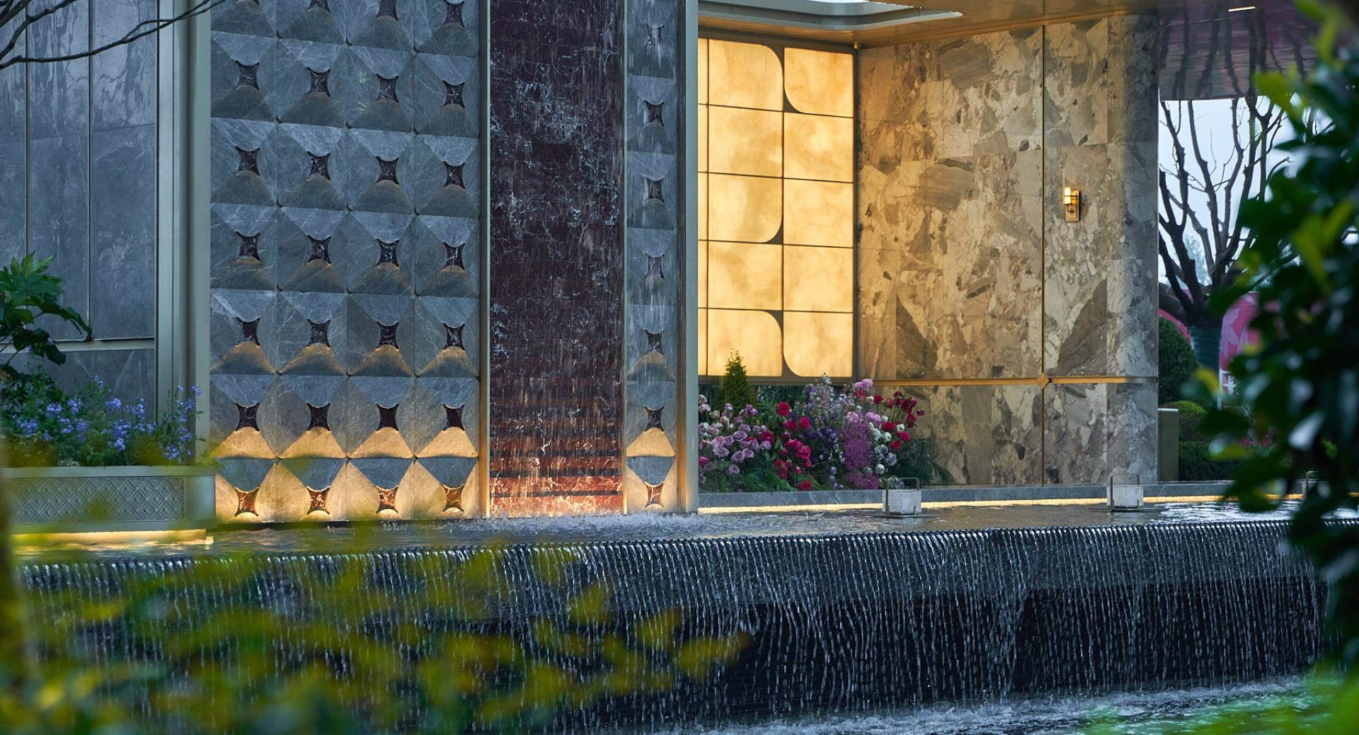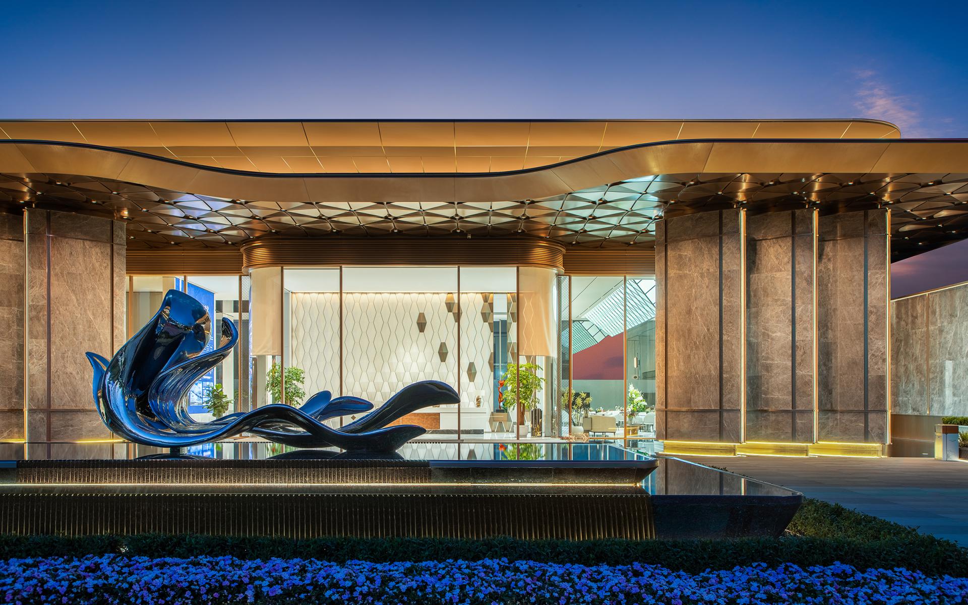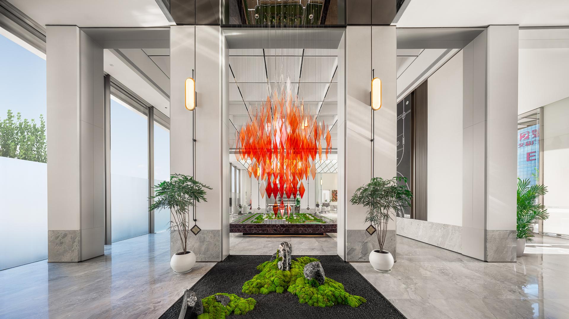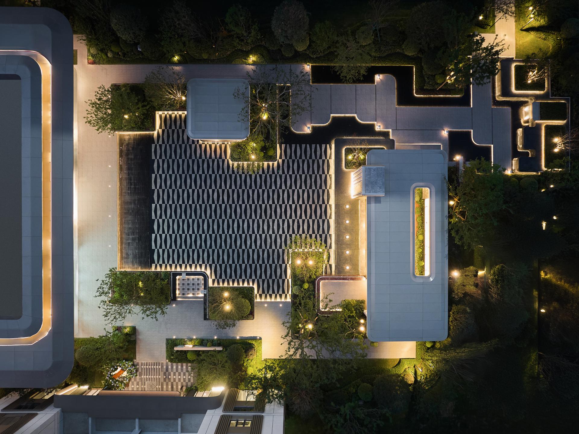 The project is located in Xi 'an International Port Zone, which is an emerging area of the city and a window for Xi 'an to display to the outside world. The surrounding education resources are sufficient, the supporting medical and business atmosphere is mature, and the city has many natural parks, which has strong resources. The architectural design scheme created by Mademake combines the grand style of traditional imperial courtyard with the lightness and delicacy of modernism, aiming to create a high-quality residential area with both Eastern cultural artistic conception and modern aesthetic characteristics. You can see that every design is close to life. Taking "Xi 'an Flower a pomegranate flower" as the prototype, through form extraction, symbol deduction, and geometric reconstruction, the project's own symbol is customized, and it is integrated into all aspects of the community through the presentation of materials, colors and elements. The main entrance image is gorgeous and refined, like a work of art; With a total width of 40 meters and a height of about 9 meters, the super-span gate not only creates a unique aesthetic business card in the urban space, but also completes the field experience from the public domain to the high-end residential area, creating a sense of privilege and belonging. The "pomegranate flower" made of champagne gold aluminum plate, champagne gold stainless steel plate and Italian gray stone will show a mysterious "star" on the surface under the sun or light, and the texture is calm and solemn without sacrificing artistic genius. Through the foyer, you can see a semi-sunken courtyard connecting the gate and the neighborhood center. This sequence of "arrival" - "walk" - "stay" - "experience" is the physical carrier showing the yearning for life. This thousands of square meters of real community atrium space is the place where our hearts aspire to live.