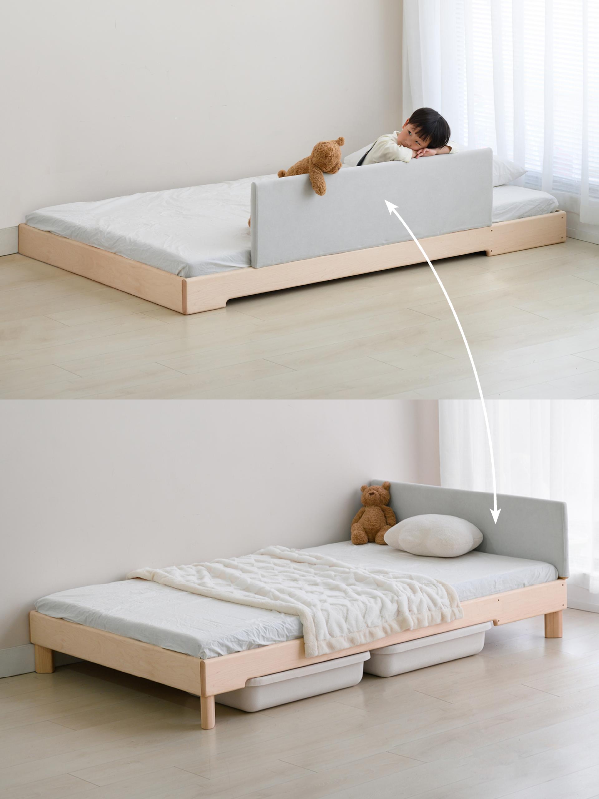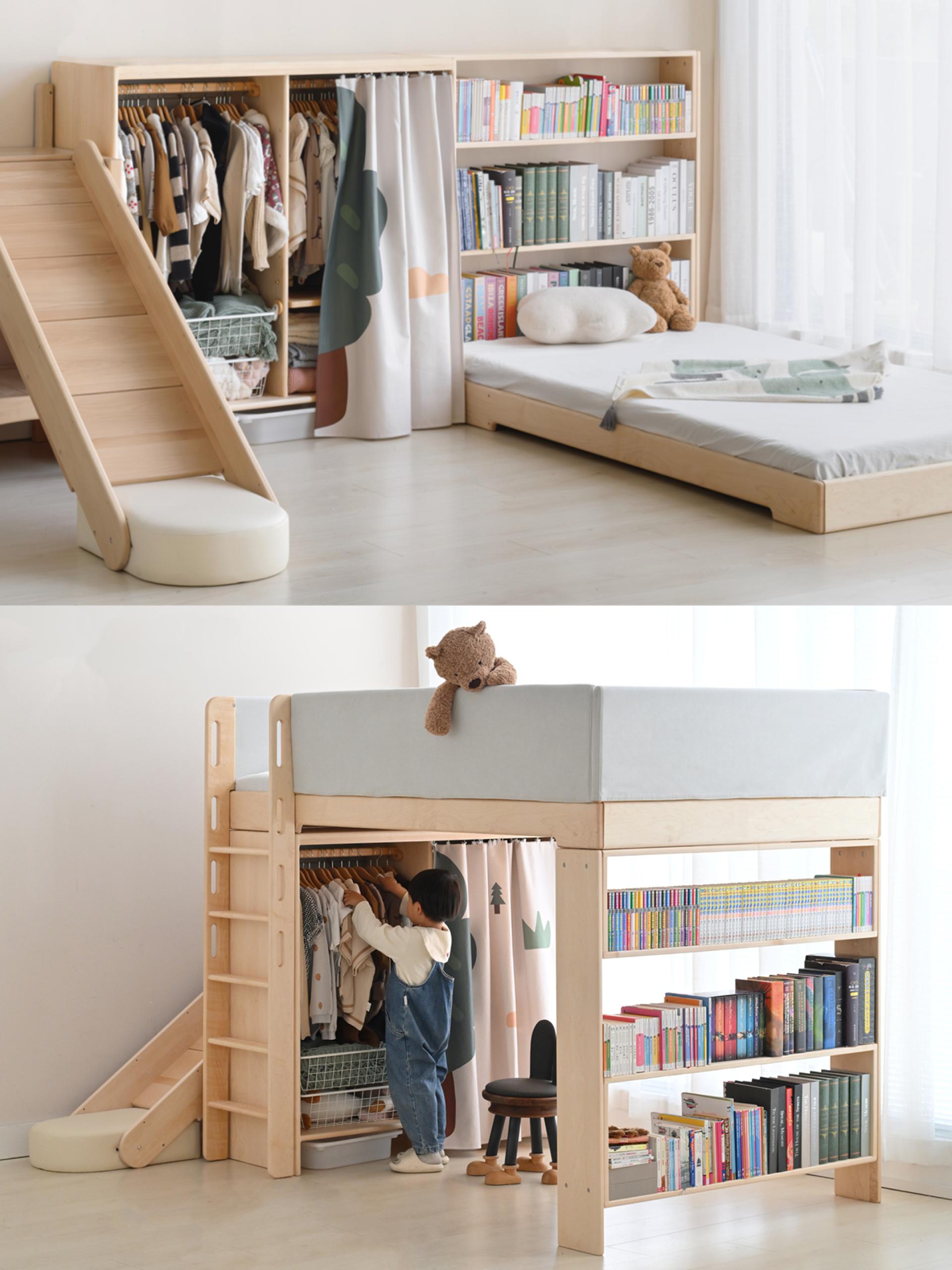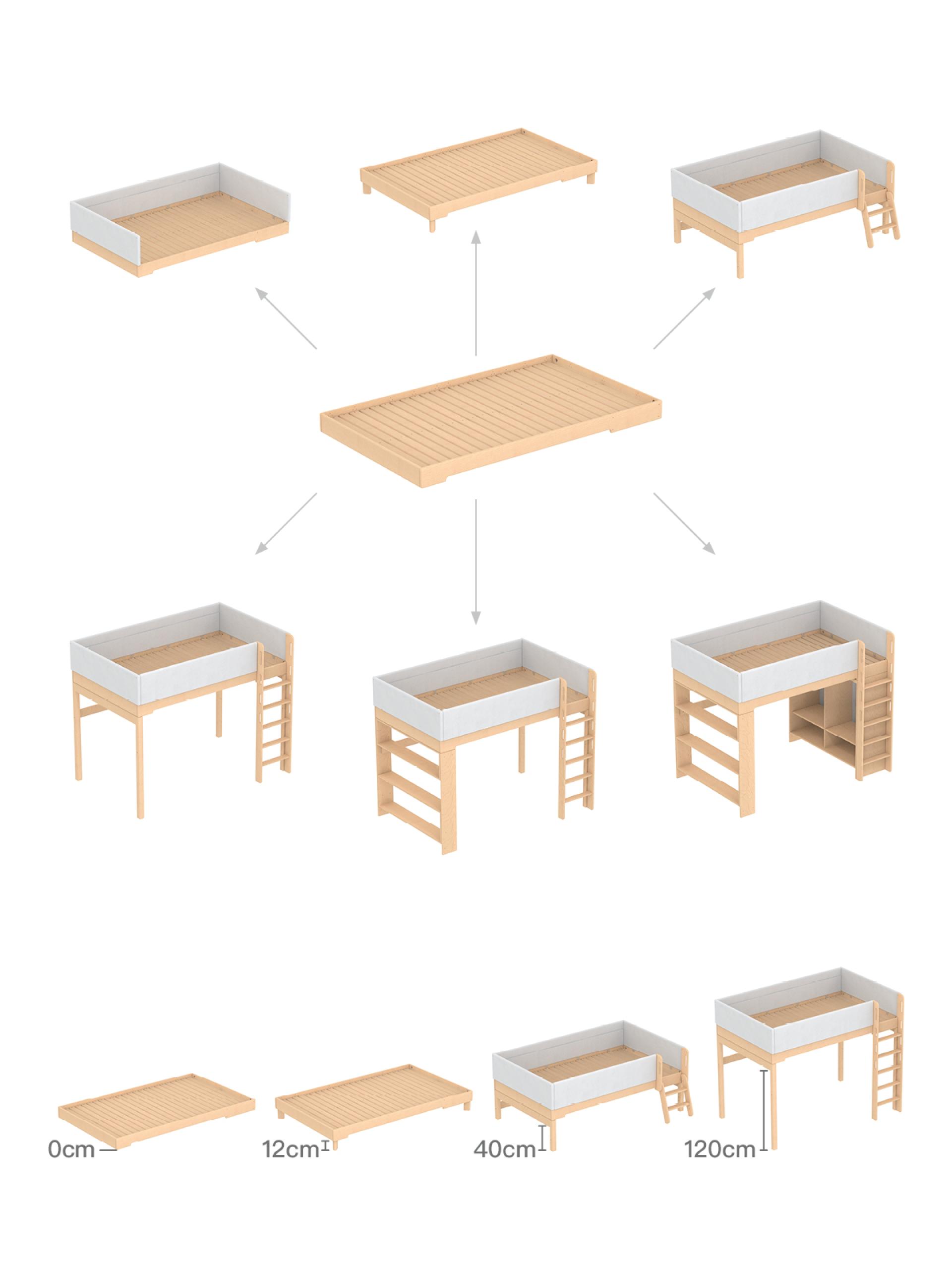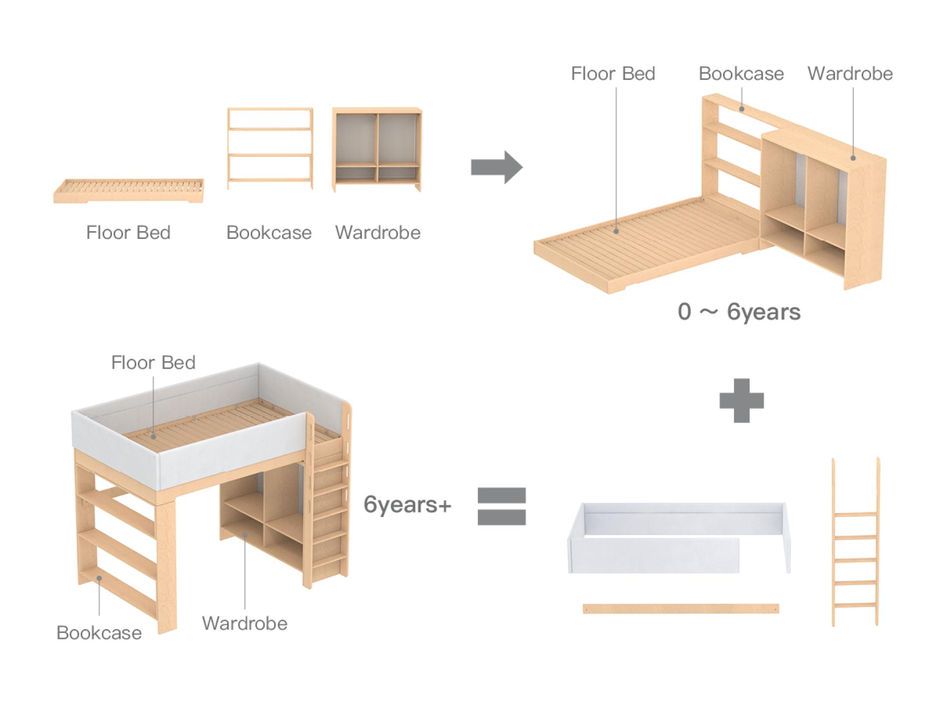 The floor model makes it easy for younger children to get in and out of bed and exercise independent mobility. And gradually become taller after growing up, not only can adapt to the child's height change, but also expand the vertical space, provide more activity space and storage space, conducive to the child's free exploration and independent storage.