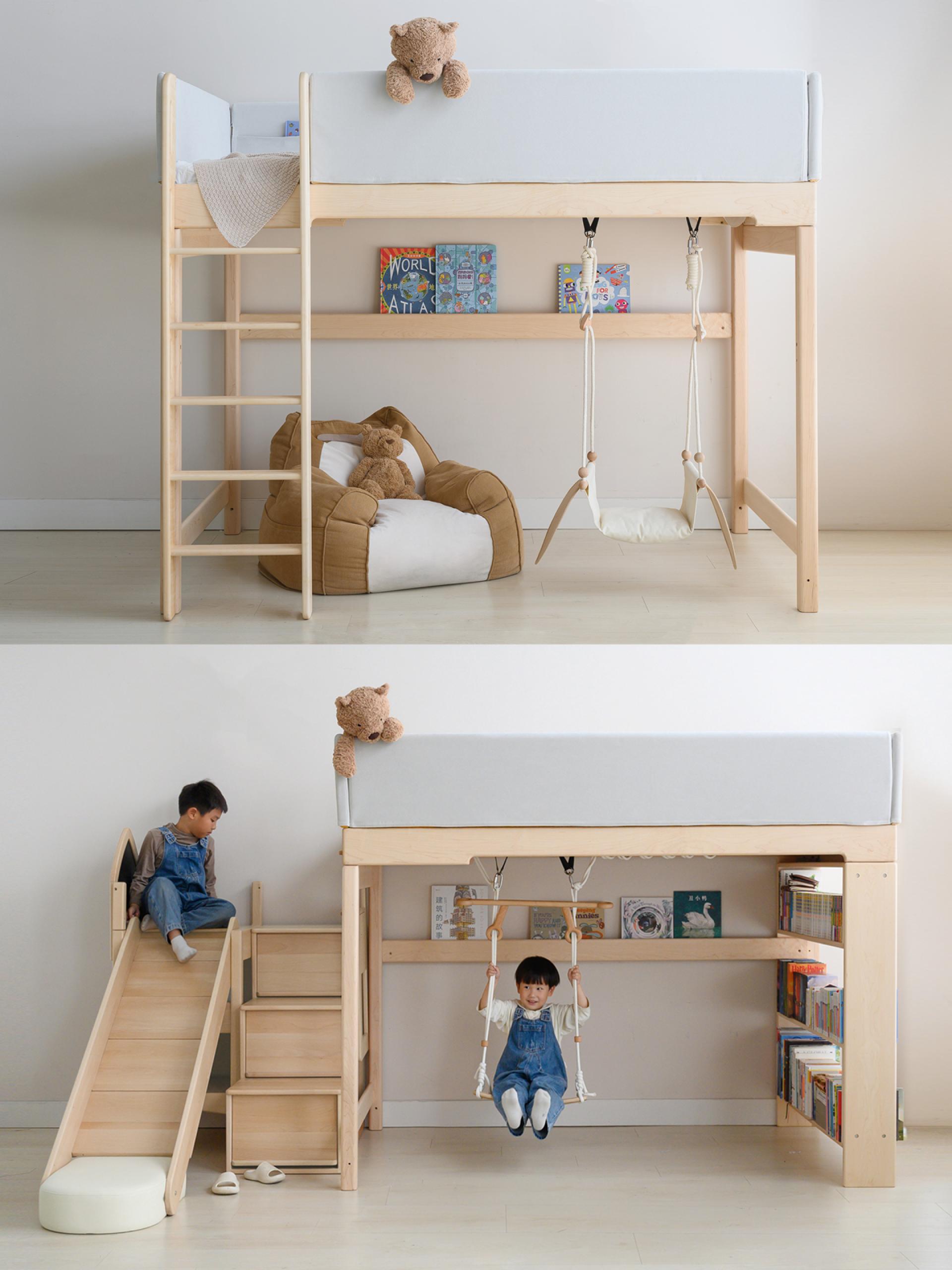 The Floating Floor Bed is a bed that can be changed as your child grows, different underbed heights can be easily achieved by adding accessories. One bed, all ages.