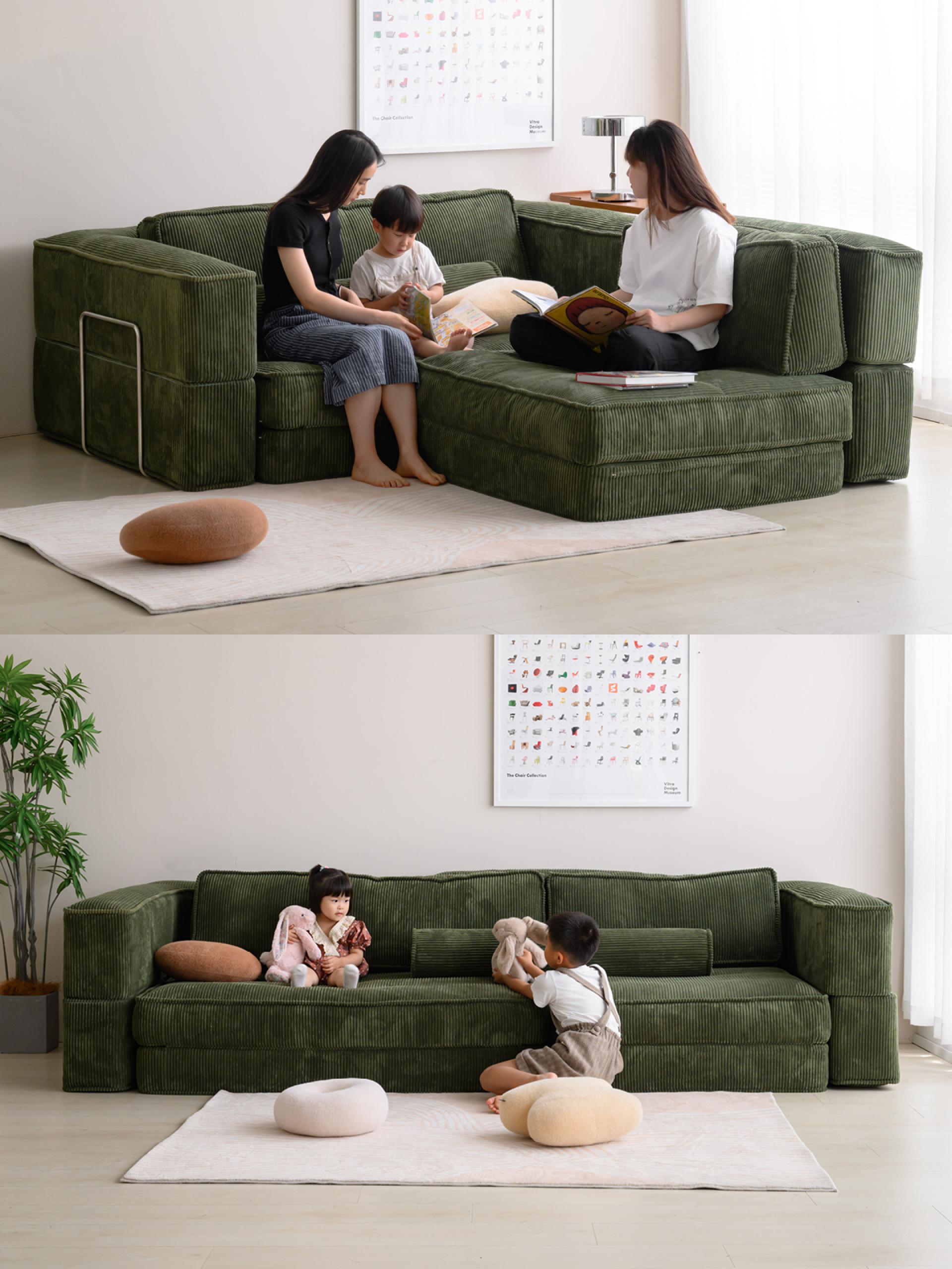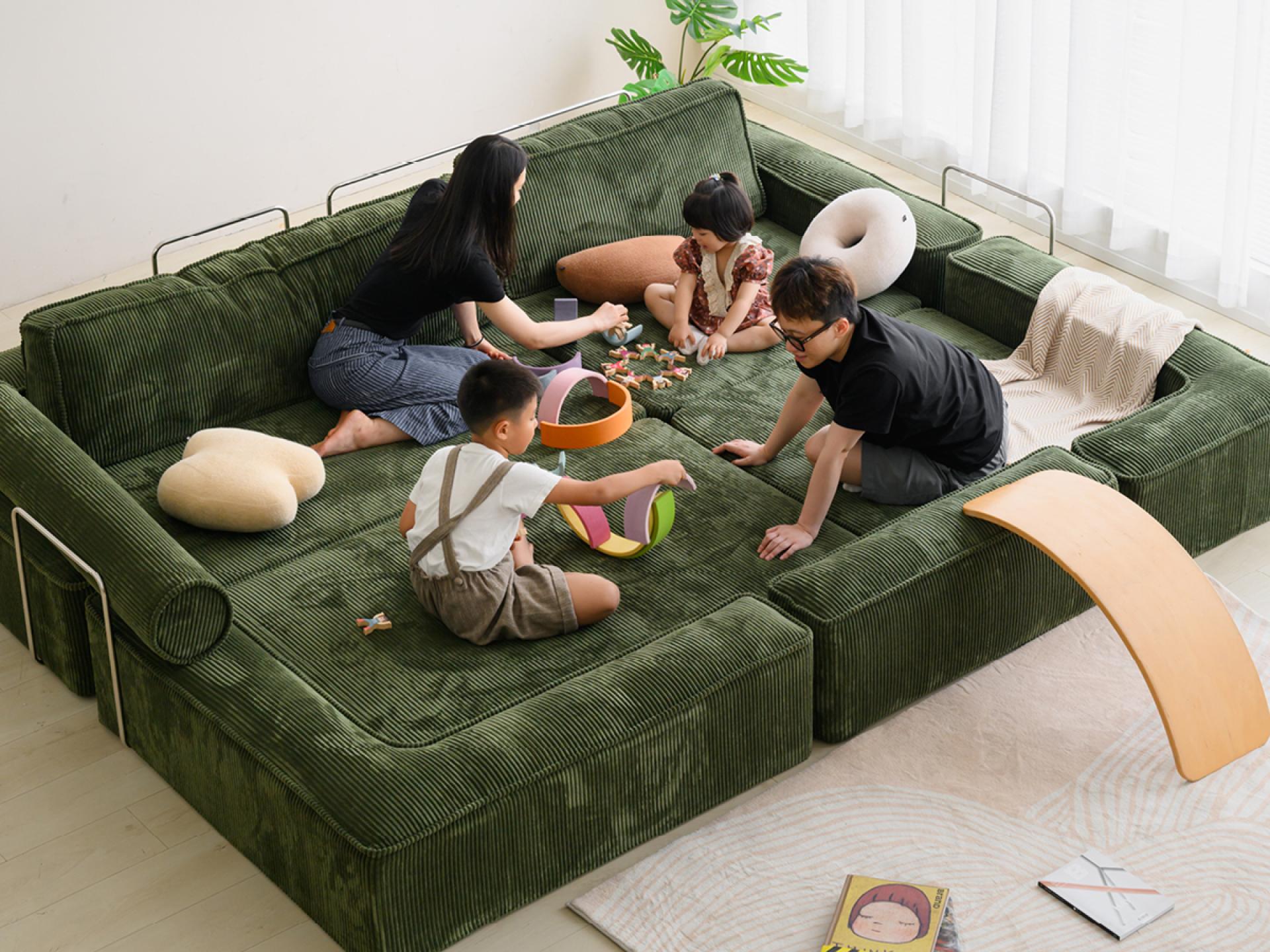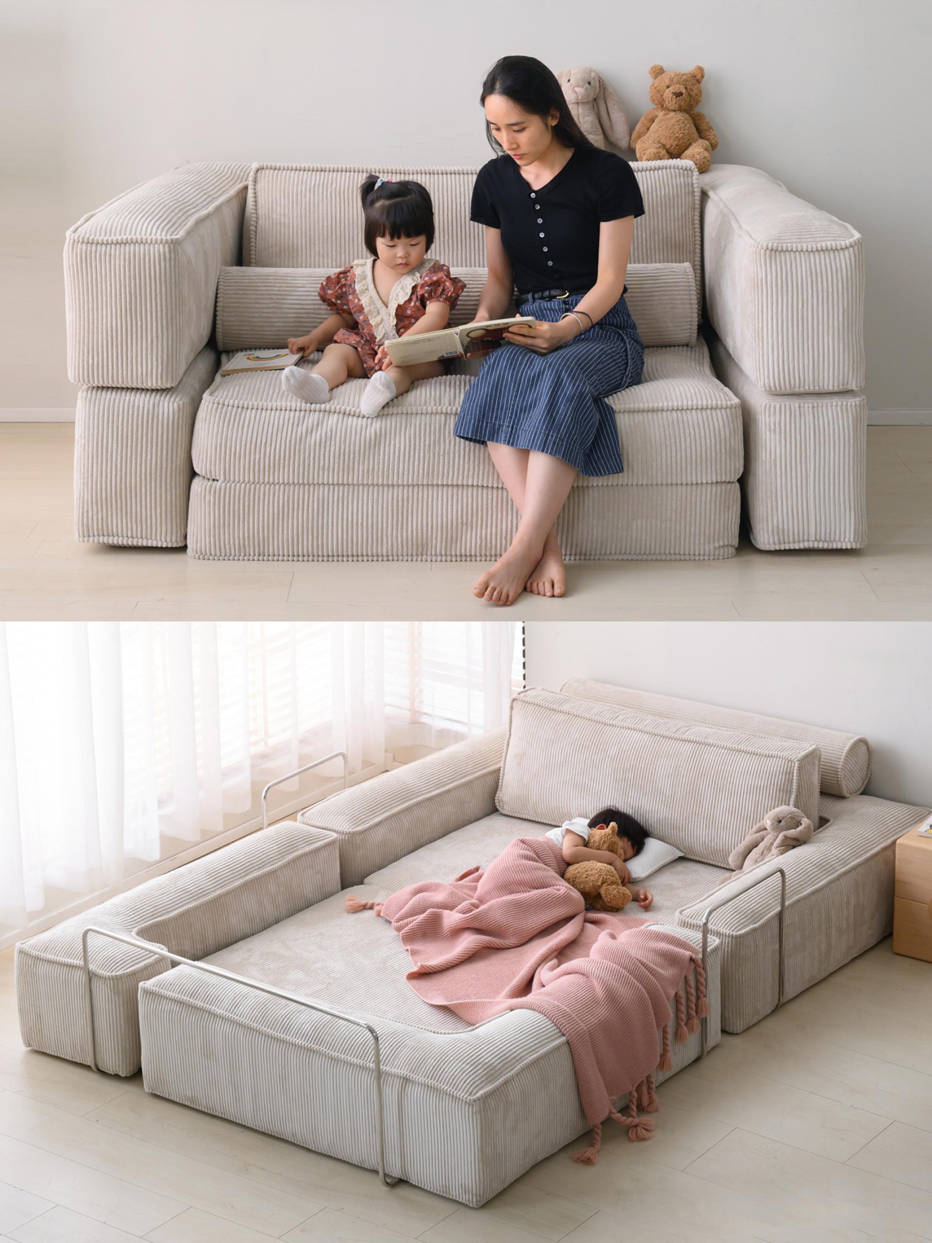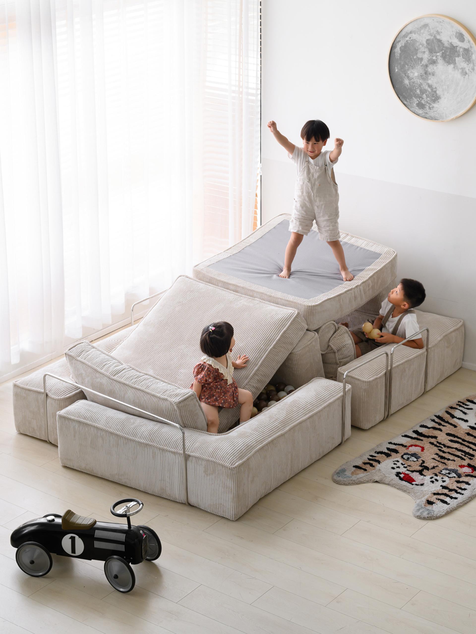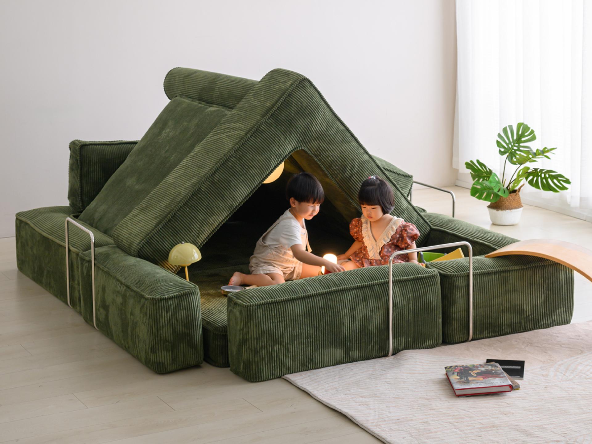 It's a modular sofa, a folding bed, or a big toy that can turn into a playground.