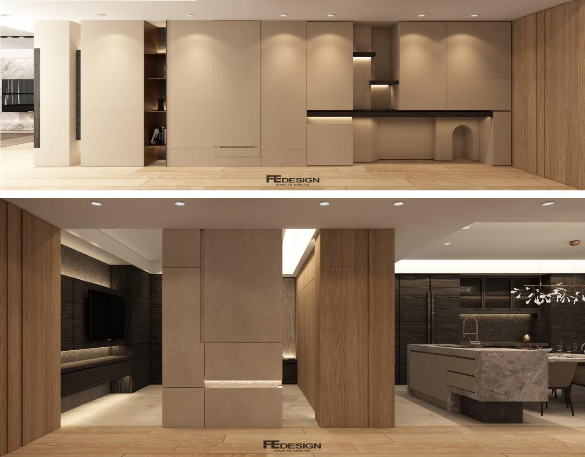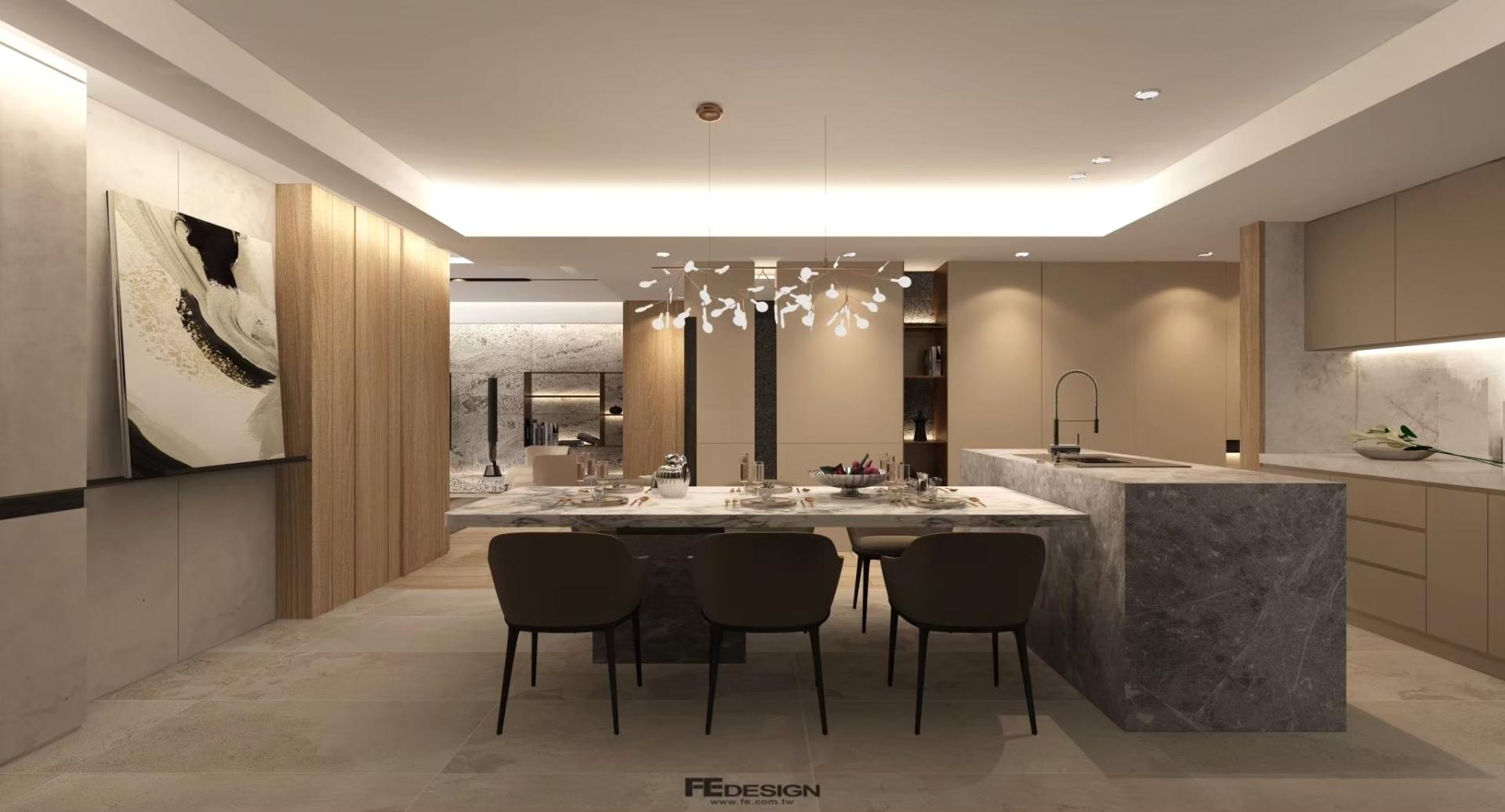 Starting from the flat’s bare-shell stage, the design gradually evolved into a space that well integrates essential functions with emotional resonance, perfectly accommodating this family of four and their furry companion. The design revolves around balancing vertical and horizontal extensions, where the blend of solid and void creates a sense of elegance and harmony, narrowing the gap between nature and man-made elements while maximizing comfort.