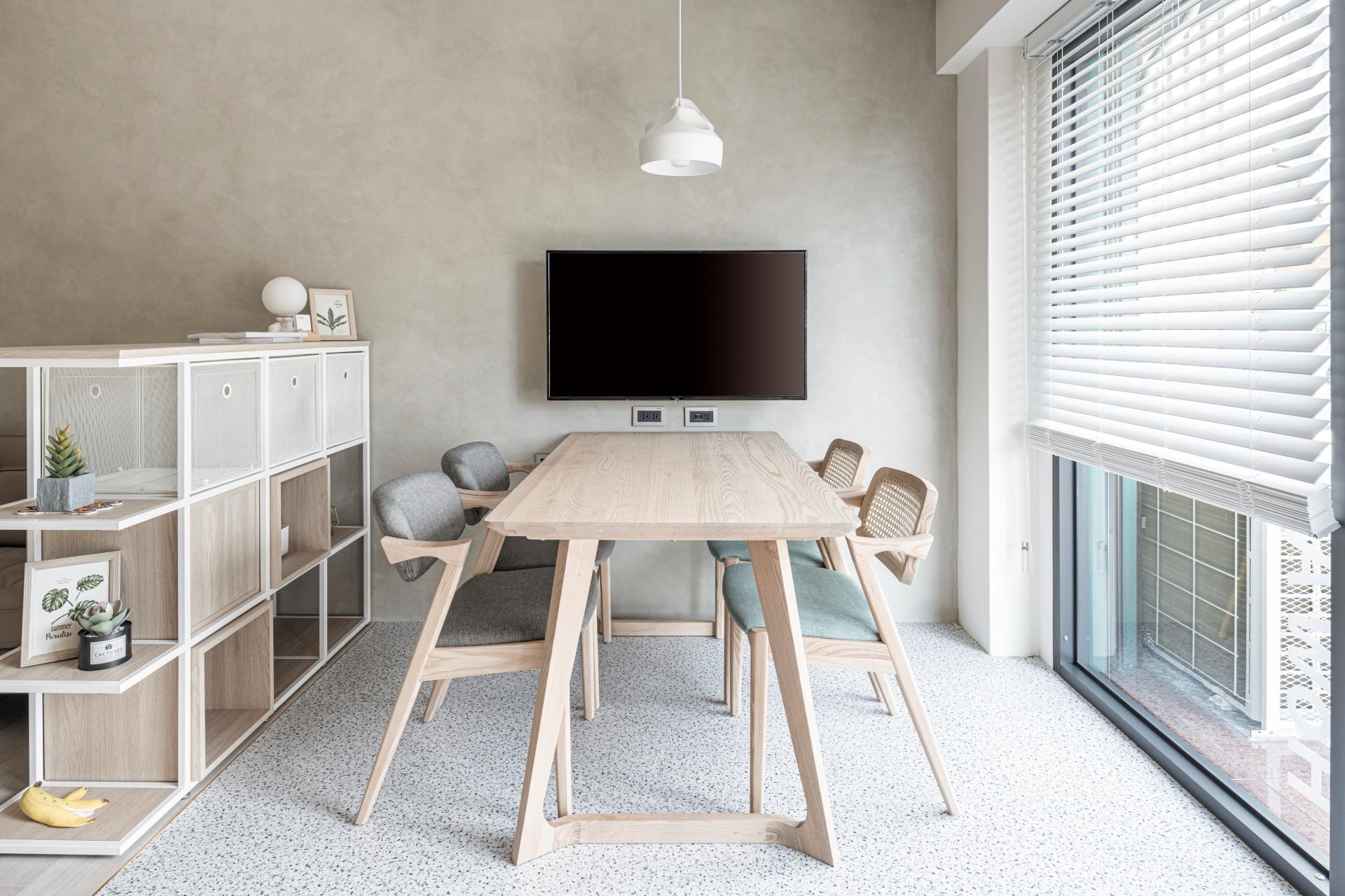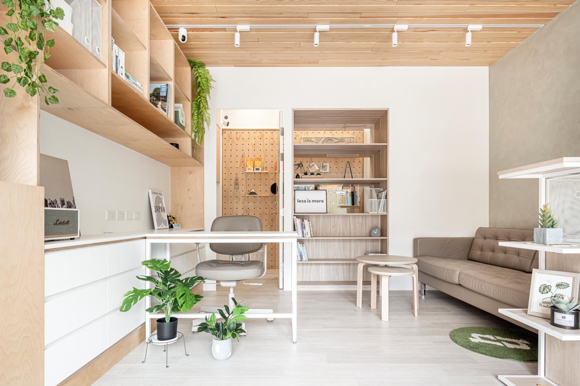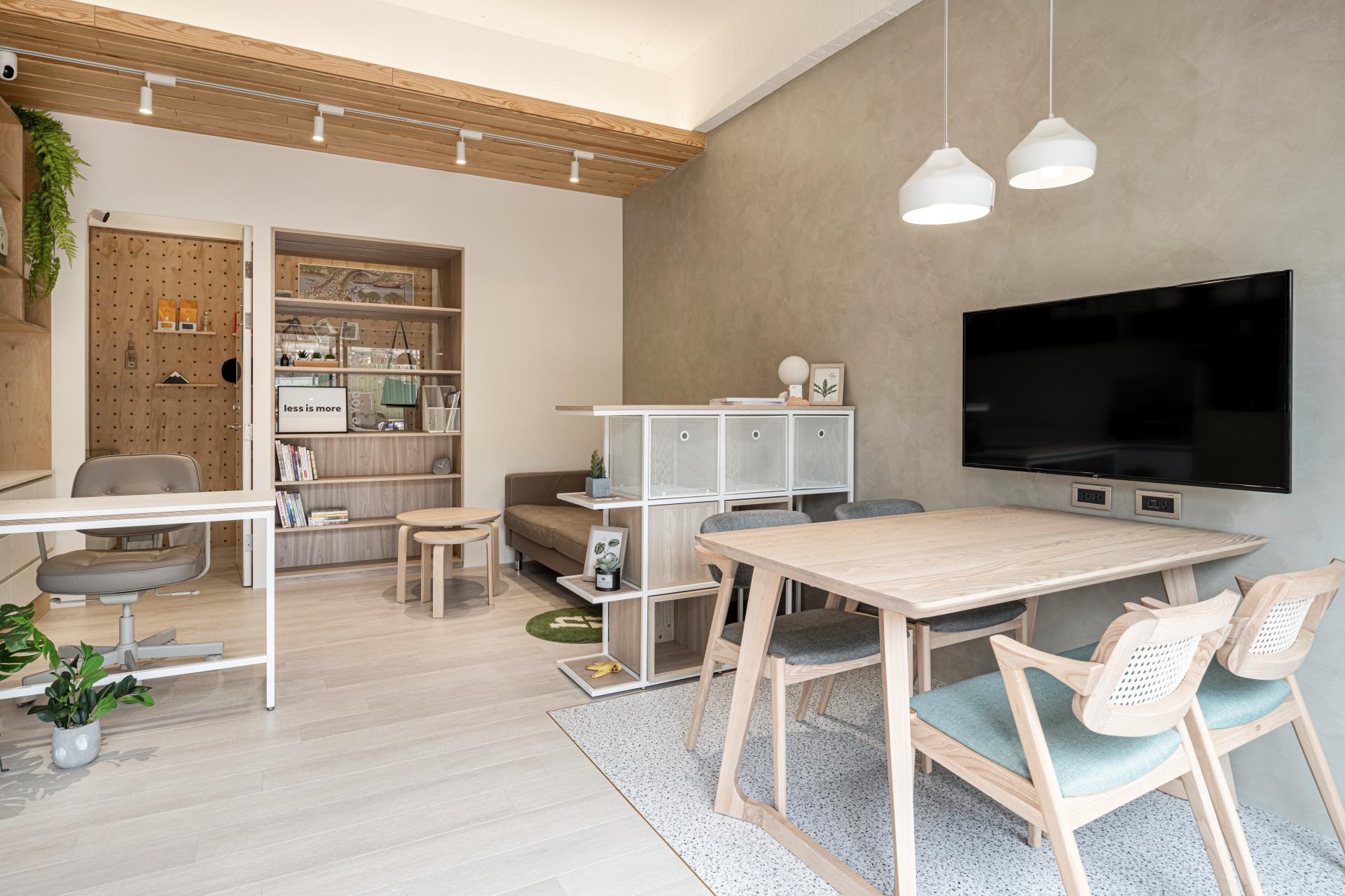 As the office of an interior design firm, the space features an open layout, eliminating the sense of confinement typically associated with traditional offices. Large floor-to-ceiling windows bring in ample natural light, while natural elements such as wood tones, textured coatings, and greenery create a warm, natural atmosphere that's both inviting and grounding. Thoughtful details and skillful use of borrowed scenery further highlight the company’s professionalism and creativity. From the careful selection of materials to thoughtful functional planning, the space harmoniously blends practicality and aesthetics, perfectly embodying the essence of the company’s philosophy.