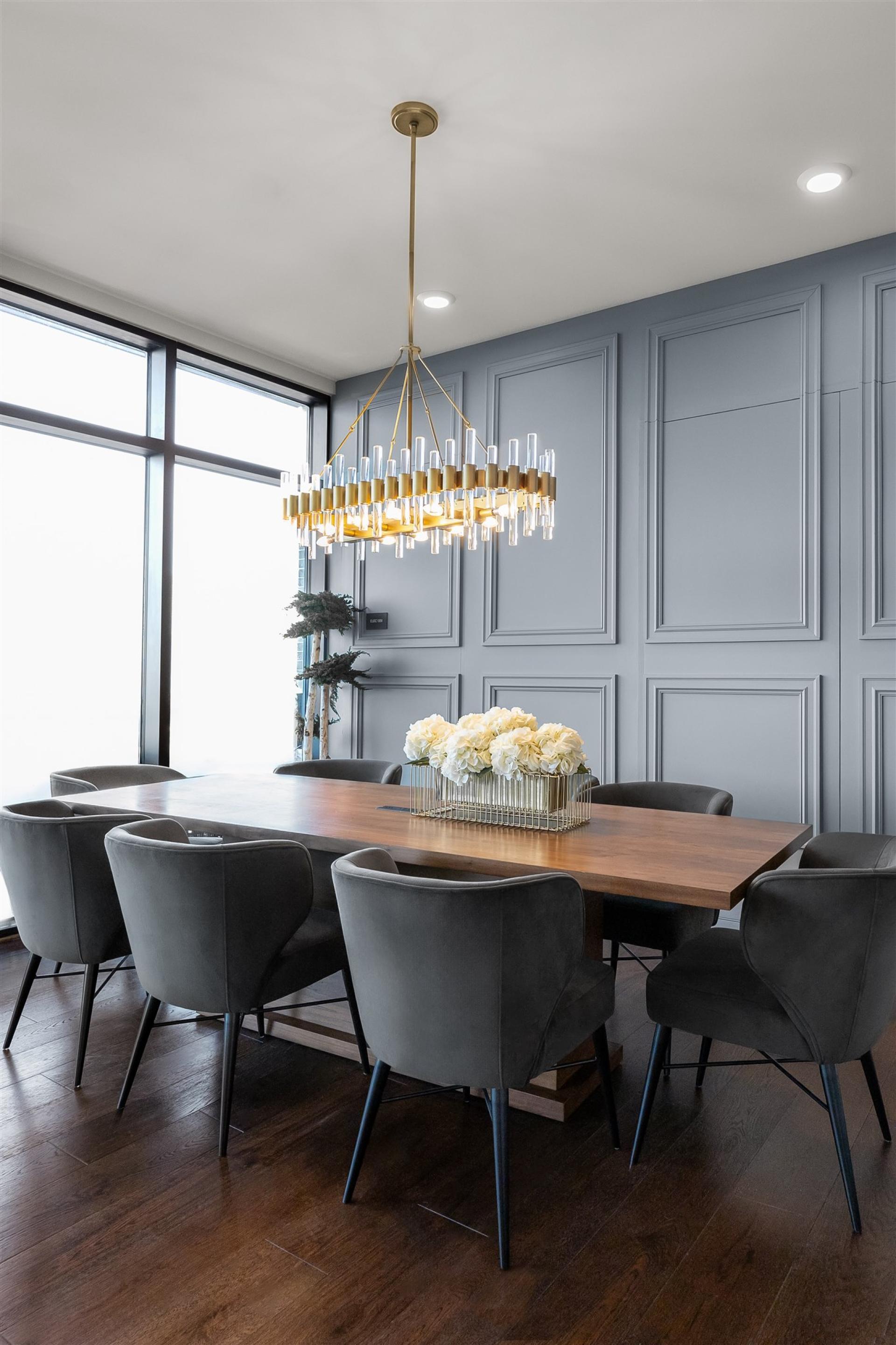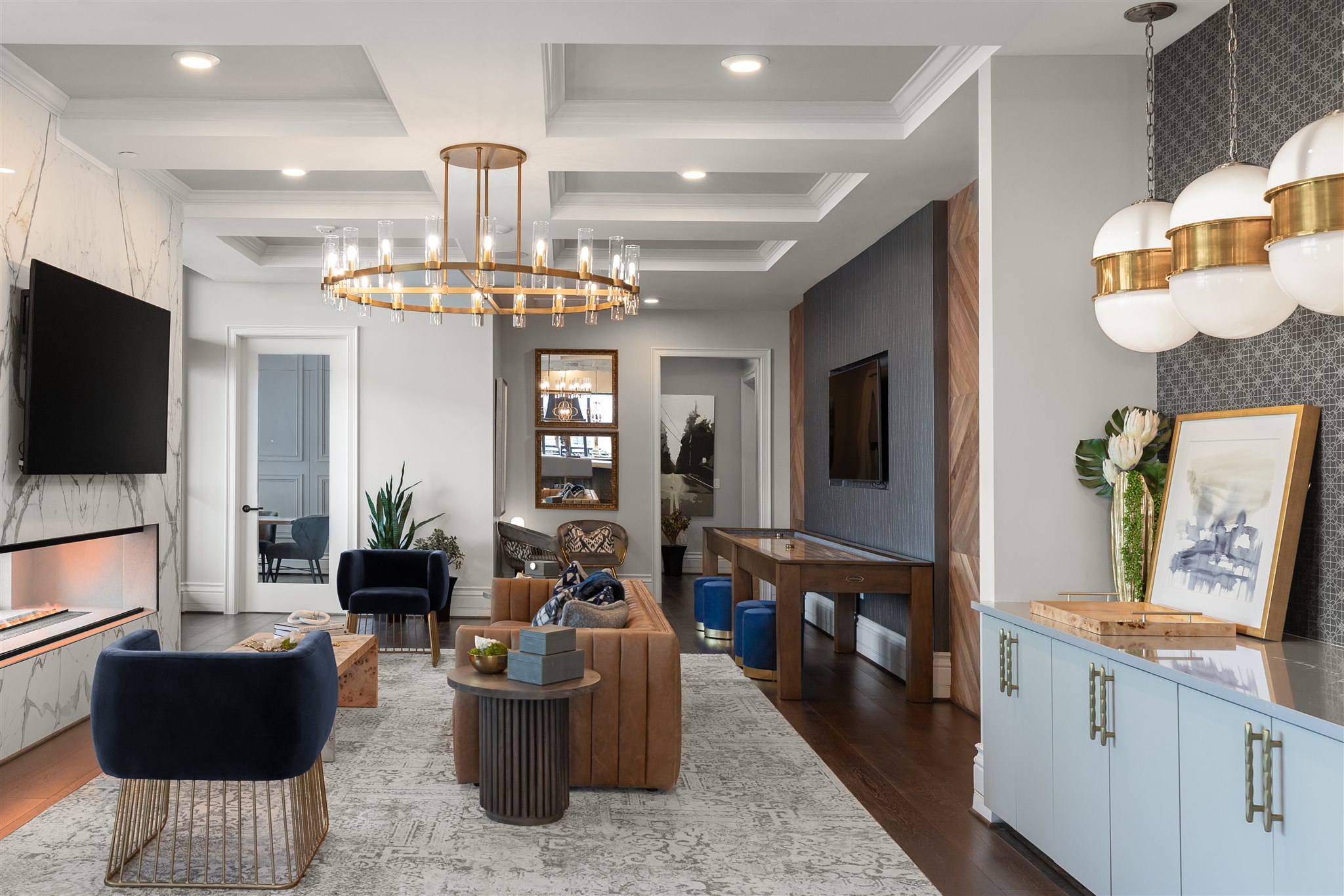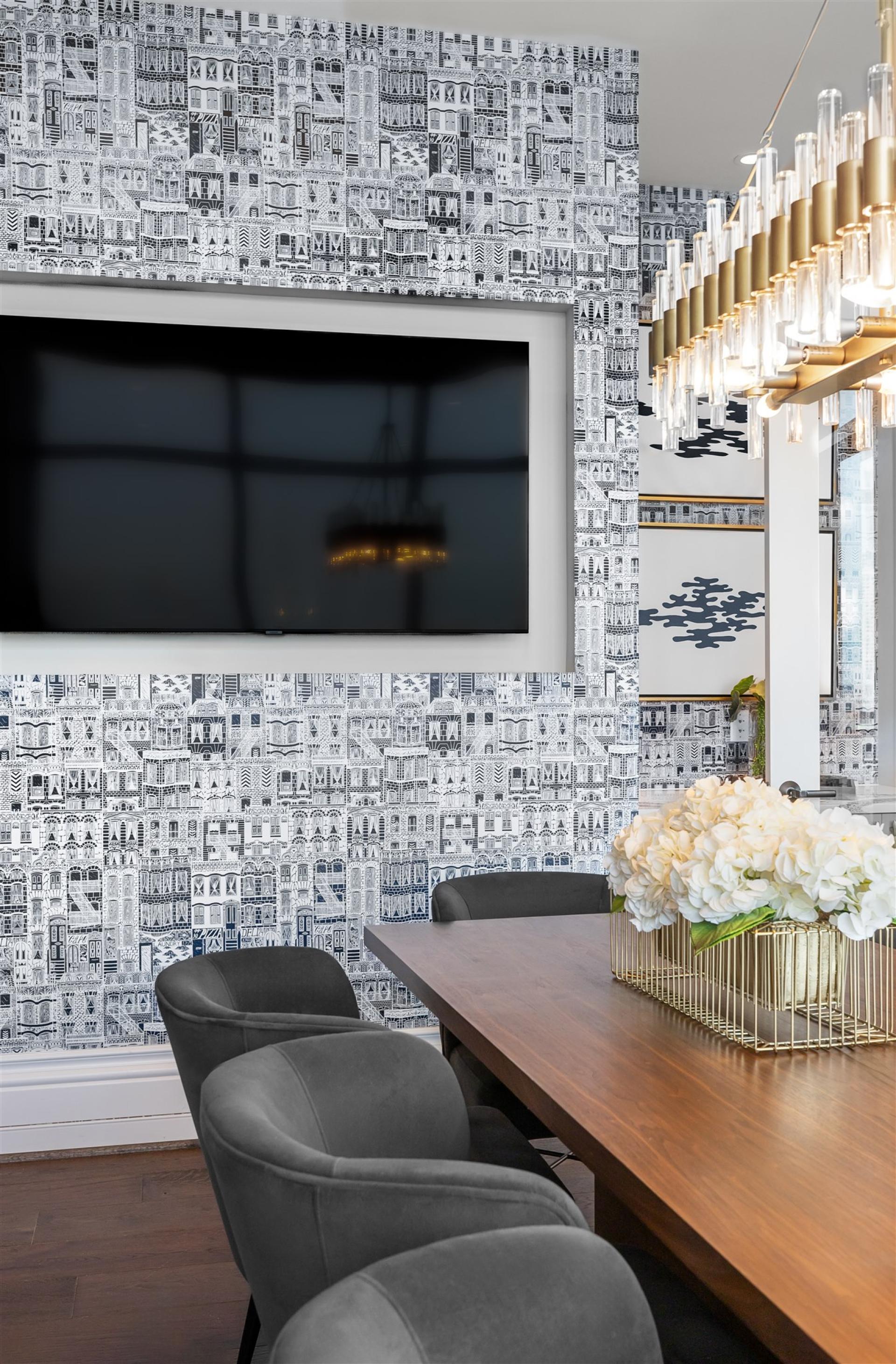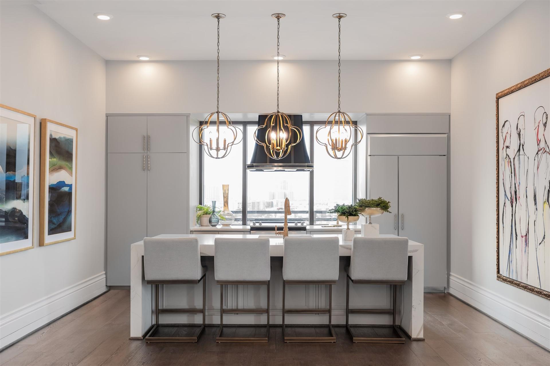 Pearl Rosemont is a luxury high-rise apartment community in the heart of the Houston Montrose district. Multiple levels of amenity spaces were designed to make residents feel as though they are living in a single-family home. The amenities feature a “den” area with a library, a dining and gathering place, a top-of-the-line fitness center, and a covered aqua lounge adjacent to the extraordinary pool and outdoor space. The penthouse level sky lounge is meant for hosting lively get-togethers or private dining parties with soaring views of Houston. The offices were carefully designed to maintain the residential feel while providing a functional working space. The property leasing agents’ desk combines beauty and practicality with a substantial, book matched slab built-in desk highlighted by crystal chandeliers. The property concierge greets potential residents from a custom desk meticulously designed to mimic an antique bombe chest. No spectacular detail was missed, from rich hardwood floors with marble inlay patterns to replicate, to stunning lighting that highlights each space, to custom-designed wallcoverings. The feel of high-end residential luxury is reinforced with antique mirror or marble and brass backsplash tiles, book matched counters and fireplace surrounds and carefully curated artwork and furniture. Pearl Rosemont embodies timeless and elegant high-rise living.
