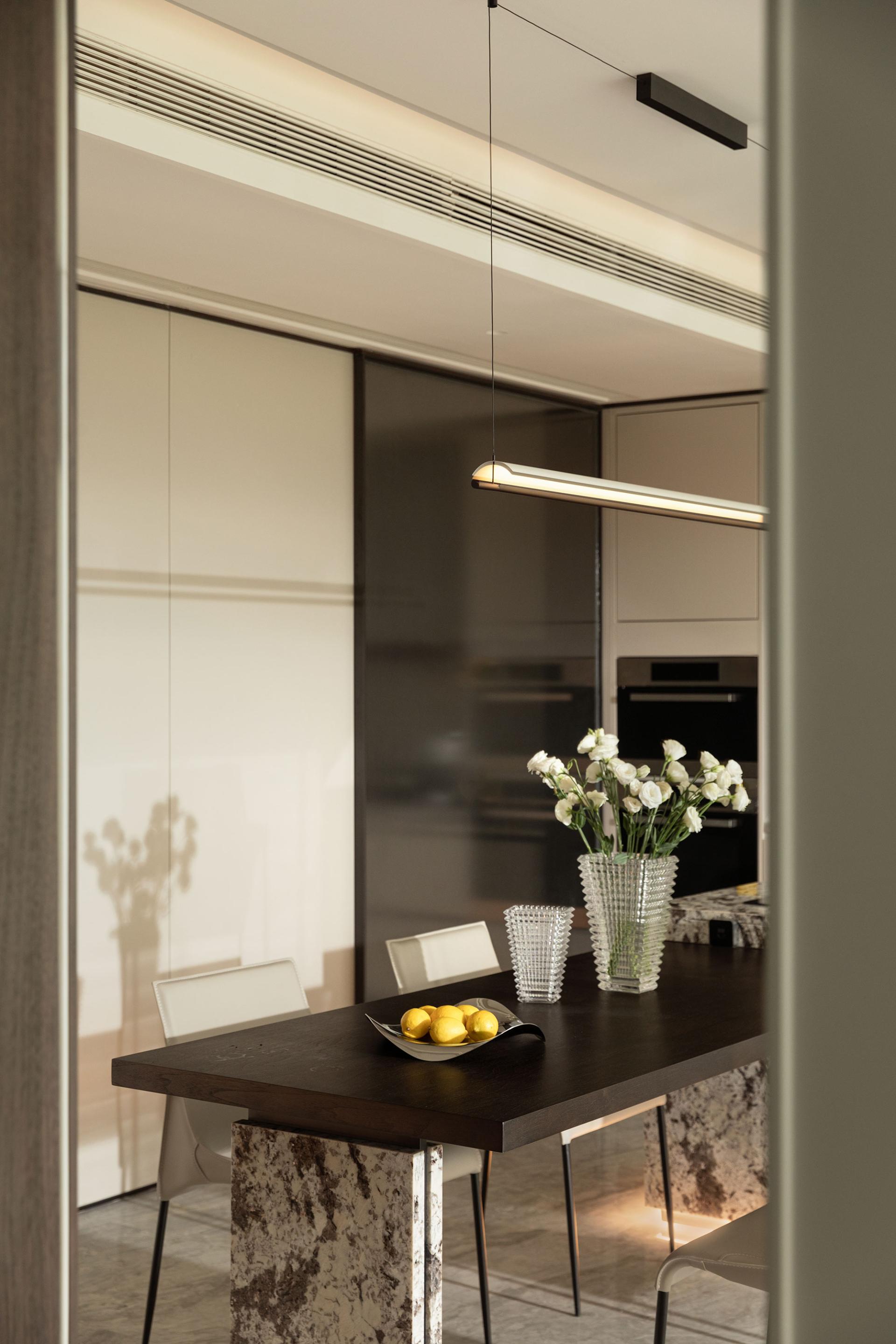 Inspired by the cultural history and natural landscapes of Huzhou, the designer created a modern luxury urban residence that immerses itself in the essence of green poetry. This design bridges the connection between daily life and spiritual depth, resulting in a space that feels both profound and timeless. The vision is to craft a modern lifestyle where luxury is subtle yet artistic, blending hidden elegance with understated opulence.