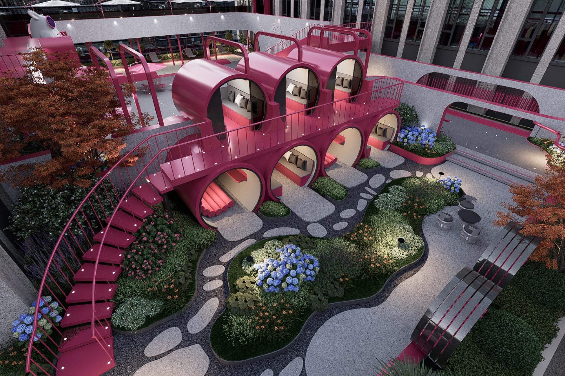 There is a "quiet" sculpture as the image of our workers, the owner of this spiritual garden. Around "quietness", we have designed a series of special spaces (luck, social, fitness, leisure, healing). Here, you can briefly escape from the troubles of work, break through the shackles, or emo meditation, or pray for wealth, or vent your emotions to your heart's content...