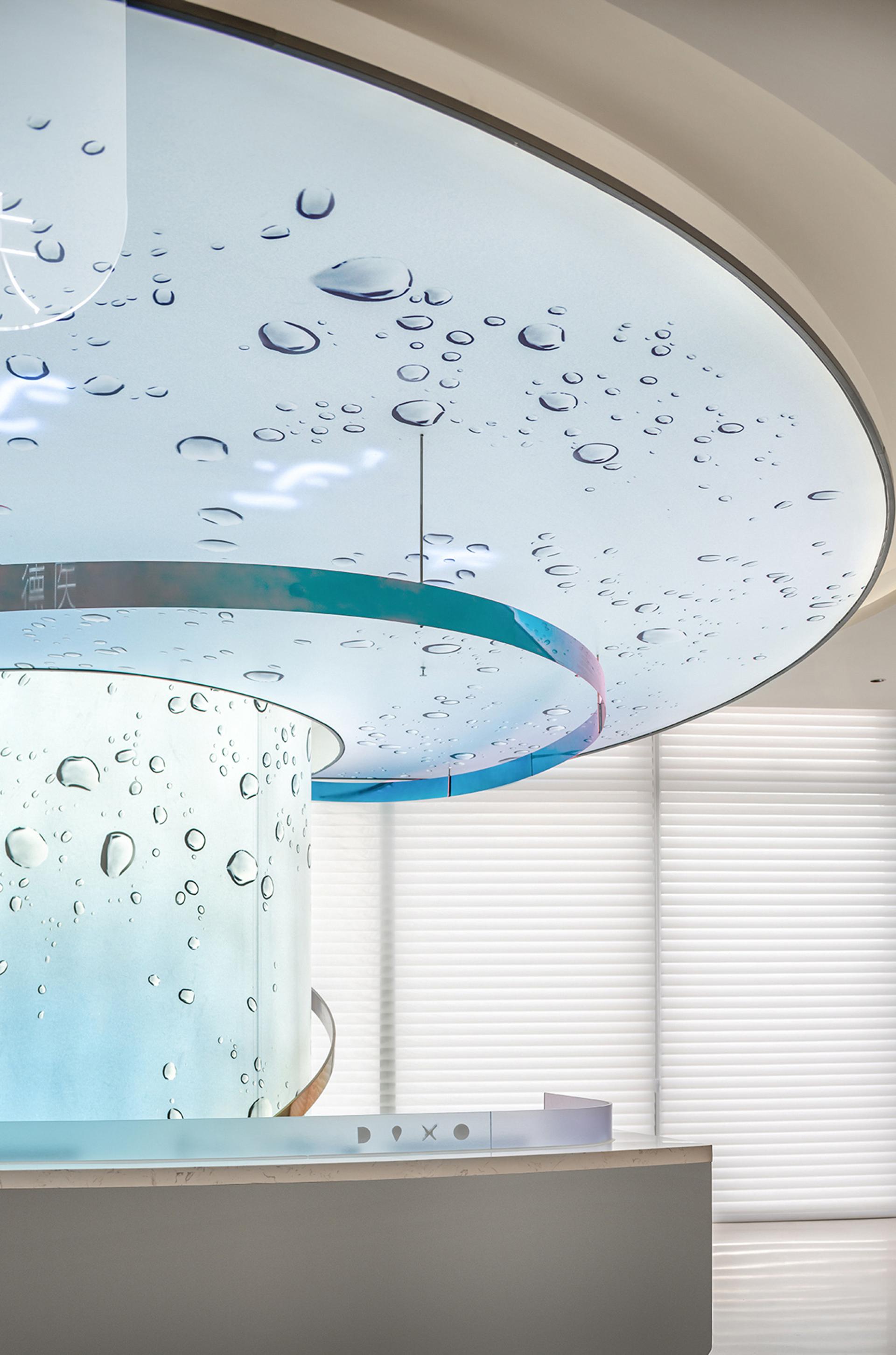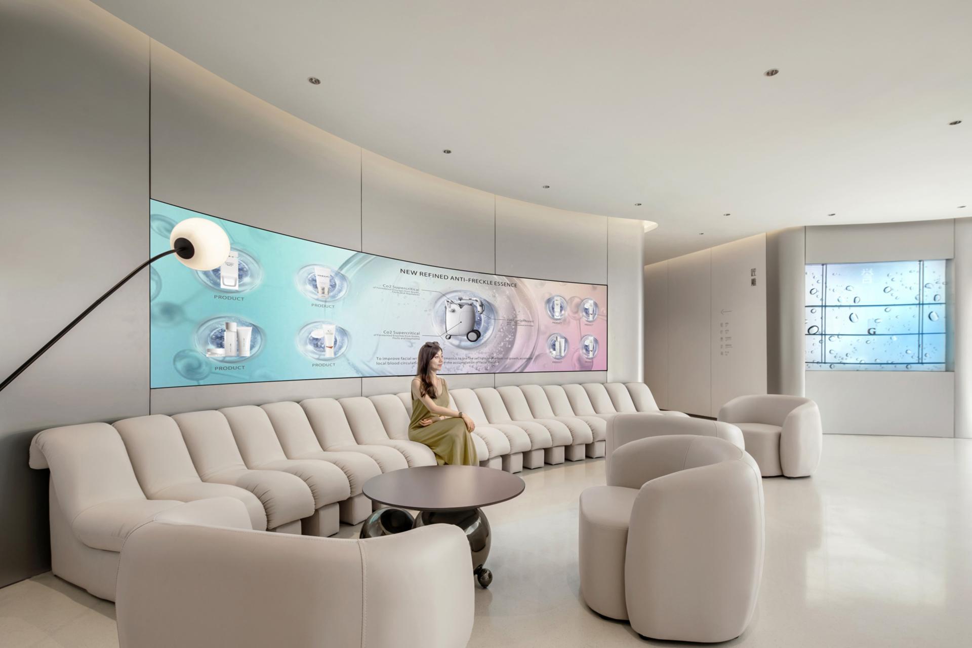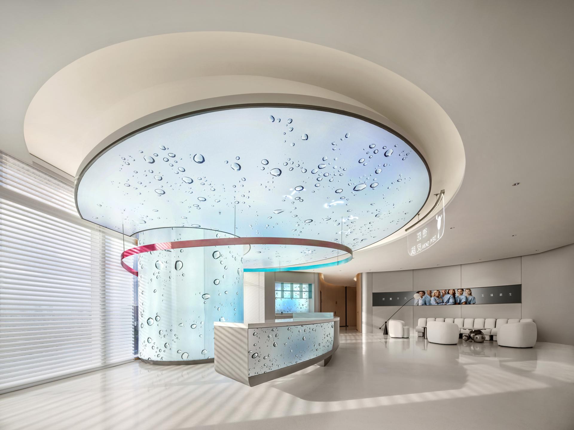 The first visual anchor of the space image, the art installation captures the dynamic resonance of water and light, the activation and regeneration of cells and collagen, and the spiral gesture of upward growth, which is pure, soft, and colorful, integrating and interpreting the theme of “New Life”.