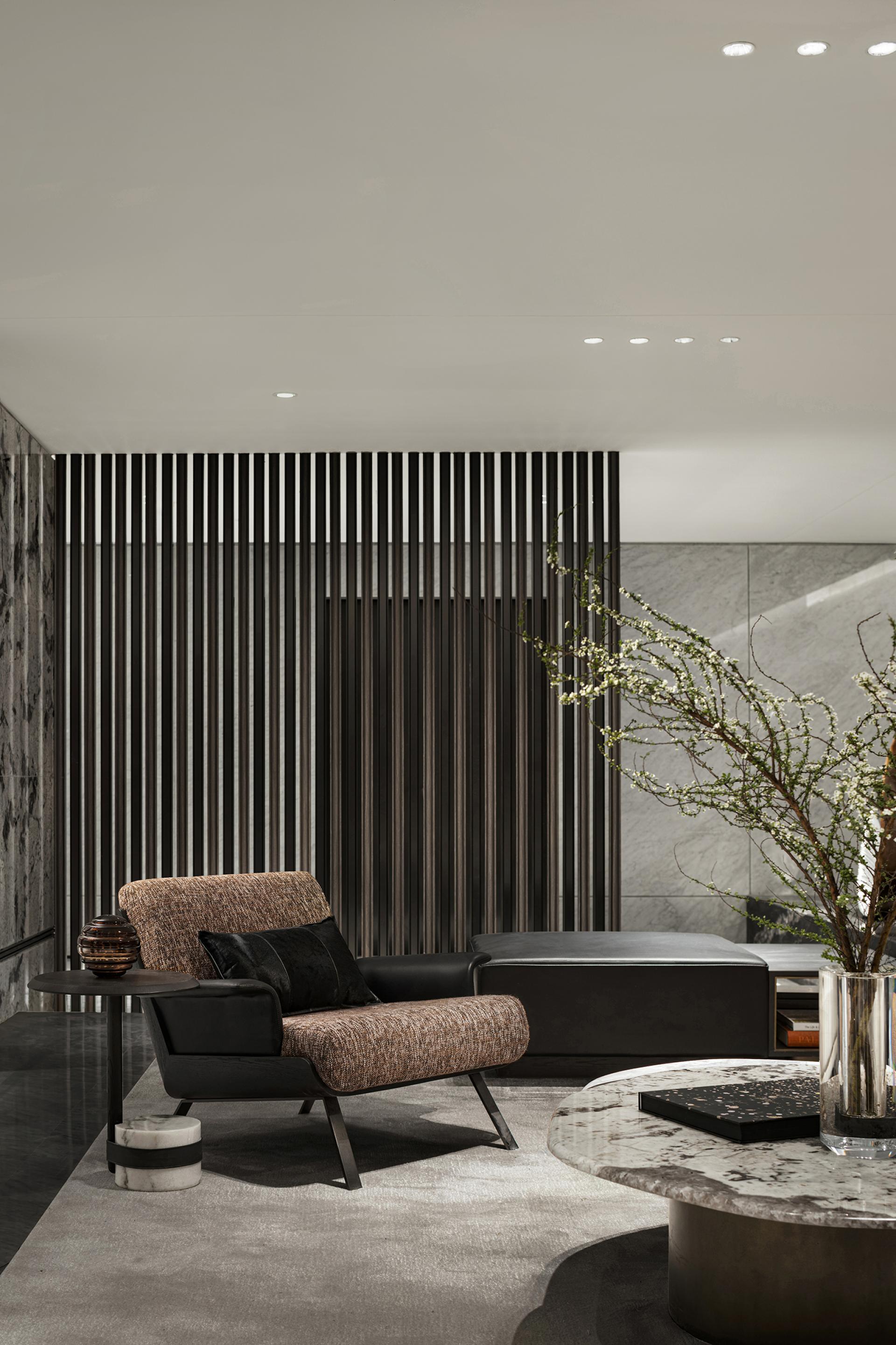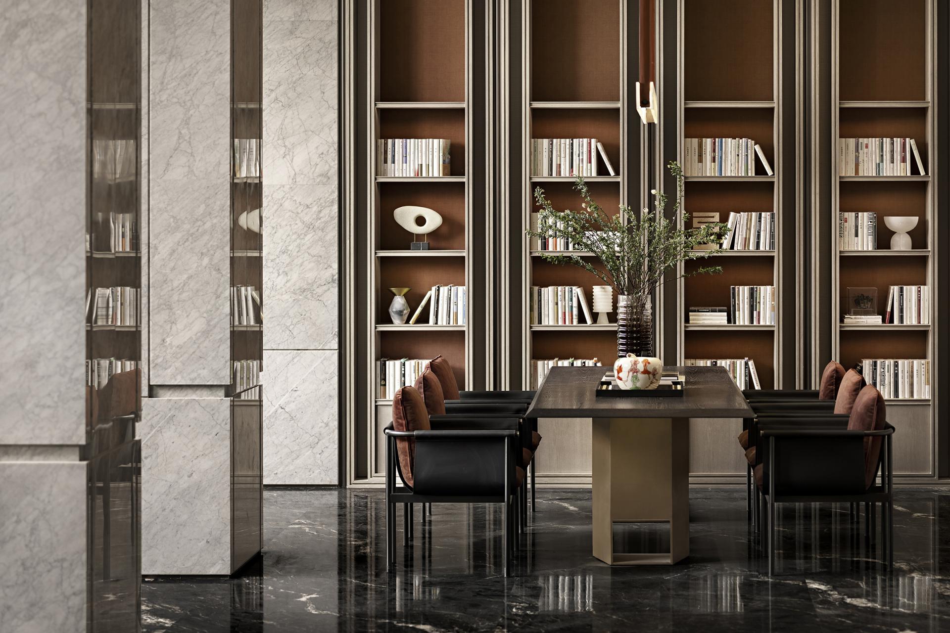 The design inspiration for this project comes from the consideration of the harmonious coexistence between urban modernization and the natural environment of the project location. Nanshan District is not only a hub for high-tech development but also closely connected to the sea and mountains, offering abundant natural resources. This balance between the city and nature allowed the designer to incorporate modern minimalist geometric lines to convey a sense of urban technology. At the same time, the use of luxurious natural stone materials and warm tones brings out the comfort and tranquility of nature. This creates a living environment where residents can enjoy the dynamic energy of the city while also experiencing a peaceful retreat. In the design of this project, the designer sought to seamlessly blend nature with modern technology to create a truly distinctive spatial experience. By using abundant natural materials such as stone and wood, the design enhances warmth and texture, while incorporating modern metallic details and clean geometric lines. This combination creates a strong atmosphere, balanced with the sophistication and technological aura of an urban setting. This design not only reflects the unique "urban oasis" character of Nanshan District but also offers residents a living environment that balances warmth and avant-garde style, providing a space full of charm and character. The fast-paced urban lifestyle of Shenzhen has prompted the designer to consider both functionality and spatial layout in this project. The public areas are not just passageways or recreational zones for residents; they are also spaces for socializing and connection. Therefore, the design blends functionality with aesthetic appeal by incorporating relaxation and reading areas, and an open-plan layout to enhance social interaction and engagement. This approach creates a balanced atmosphere of both interaction and comfort. Unlike the typical single-purpose spaces found in the market, the public areas of Phase II of Runxi Place place greater emphasis on community and social experiences. Thoughtful layout design, ergonomic furniture, and inviting spaces encourage residents to relax, converse, and enjoy social activities.