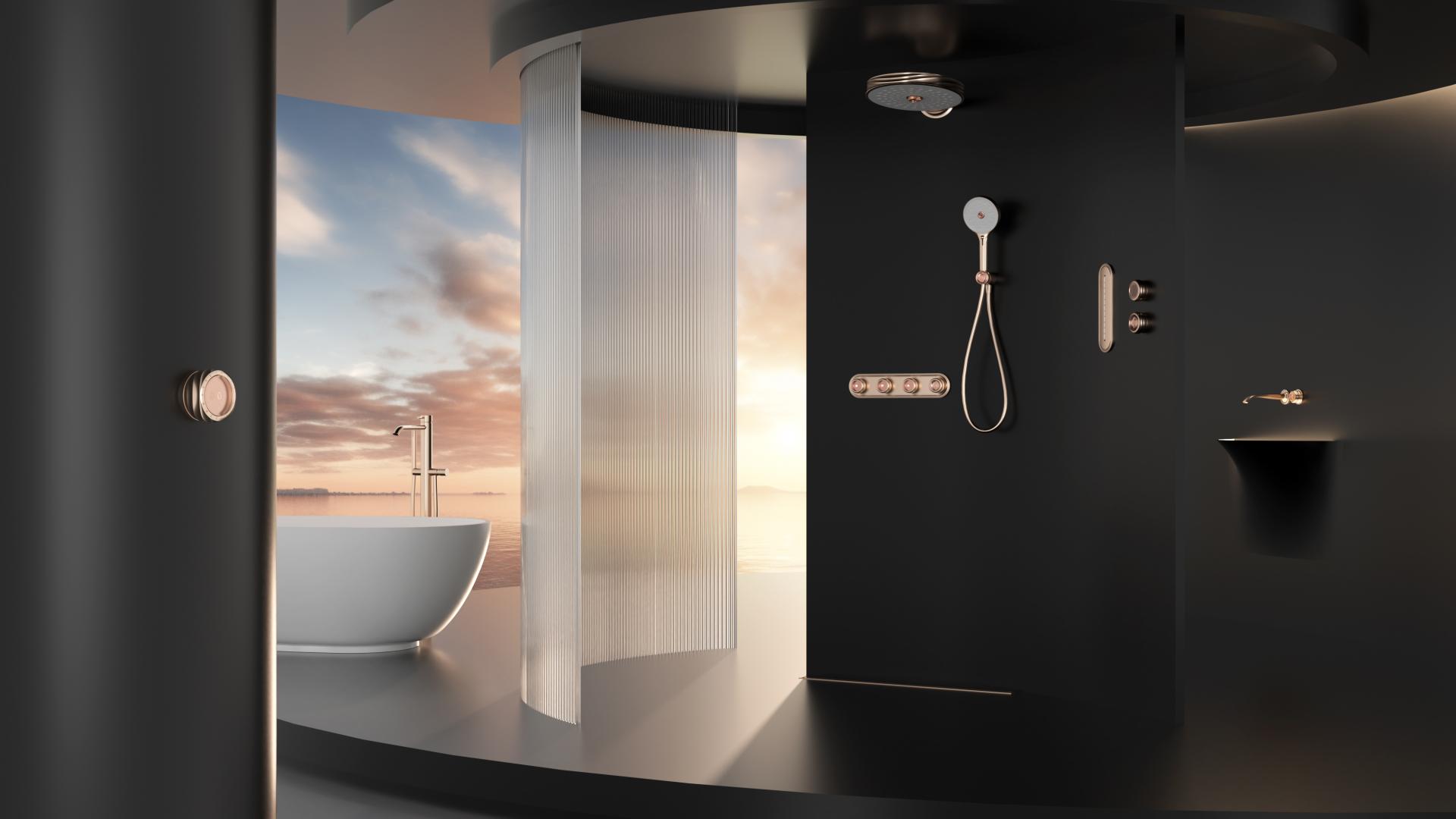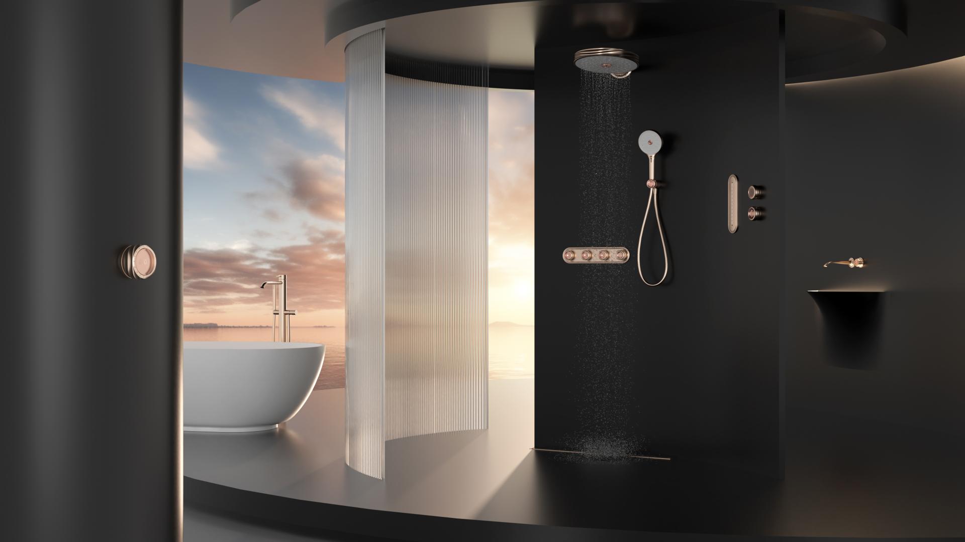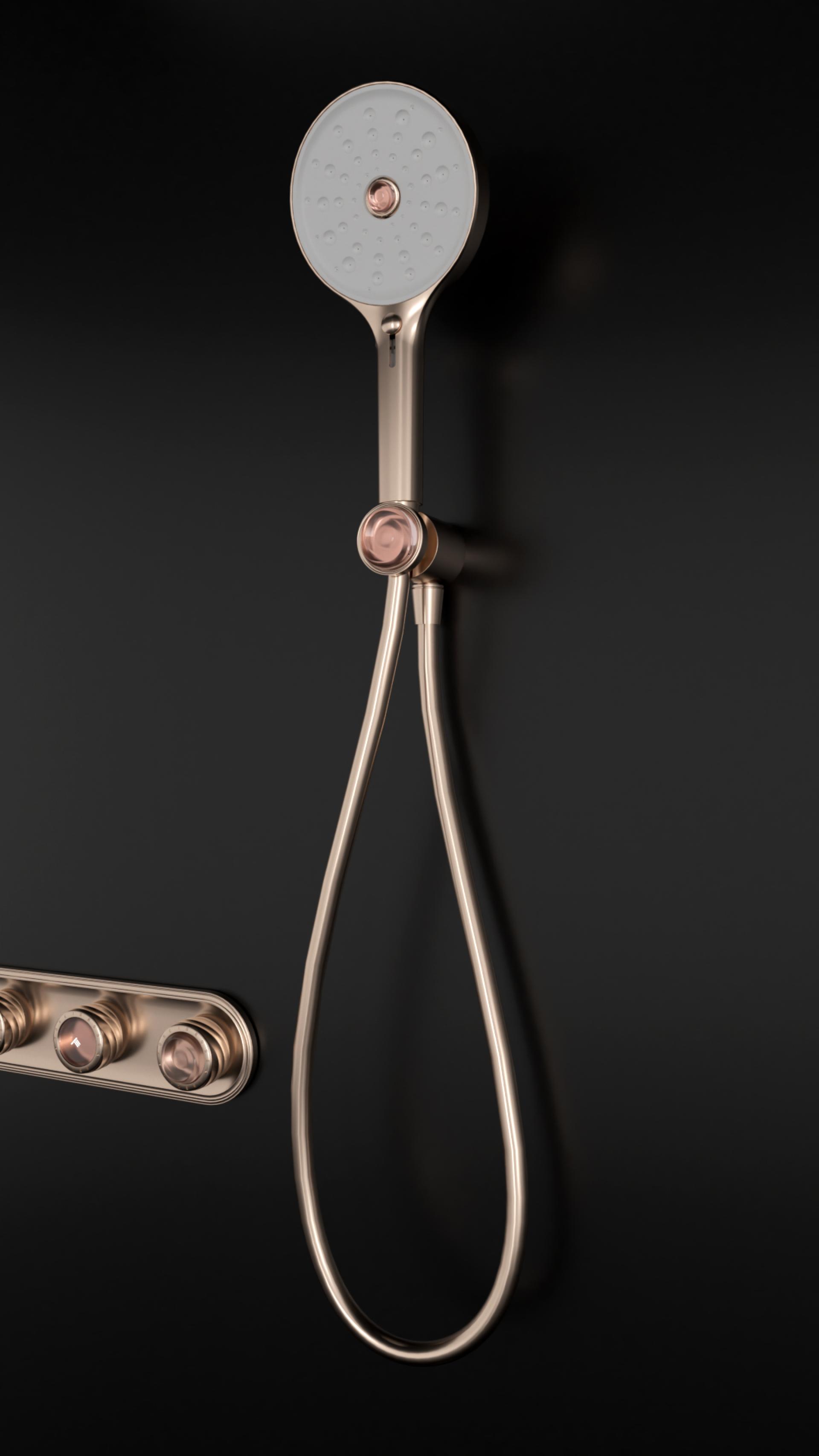 Rose Series is a shower set that combines fashion aesthetics with intelligent functionality. Drawing inspiration from roses, it incorporates distinctive rose elements in showerhead buttons, face cover, and faucet switch handle, creating free-form spiral curves similar to the graceful lines of rose petals. A nude pink rose-shaped crystal is set in the center to enhance the artistic appeal. This unique rose-inspired design ensures effortless operation even with hands slippery from soap or water, improving the overall experience.