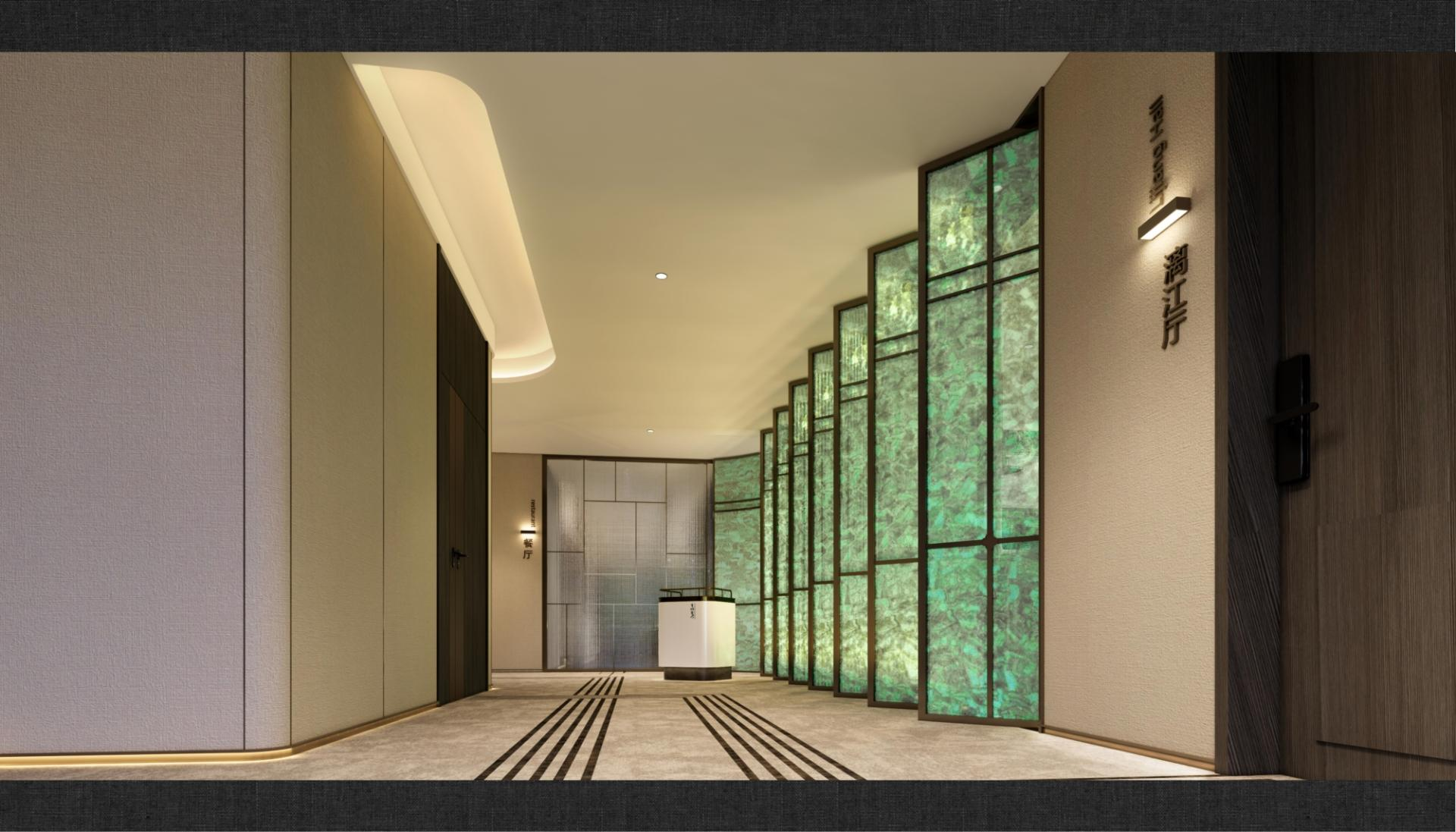 The welcome passage of the restaurant is a set of green sail leaves that make the space transparent, which symbolizes smooth sailing and is also isolated from energy saving. The focus of the restaurant is the "064Guilin Ship" buffet table escorting the aircraft and chasing the waves, surrounded by the misty and rainy scenery of GUILIN.