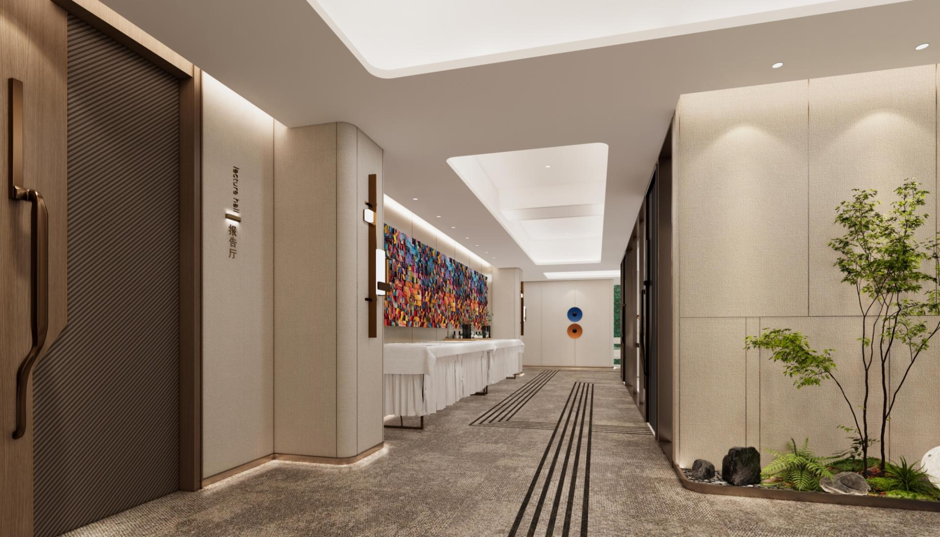 The design of the conference area adheres to simplicity and efficiency, acoustics, and the artistic conception of the landscape of GUILIN.