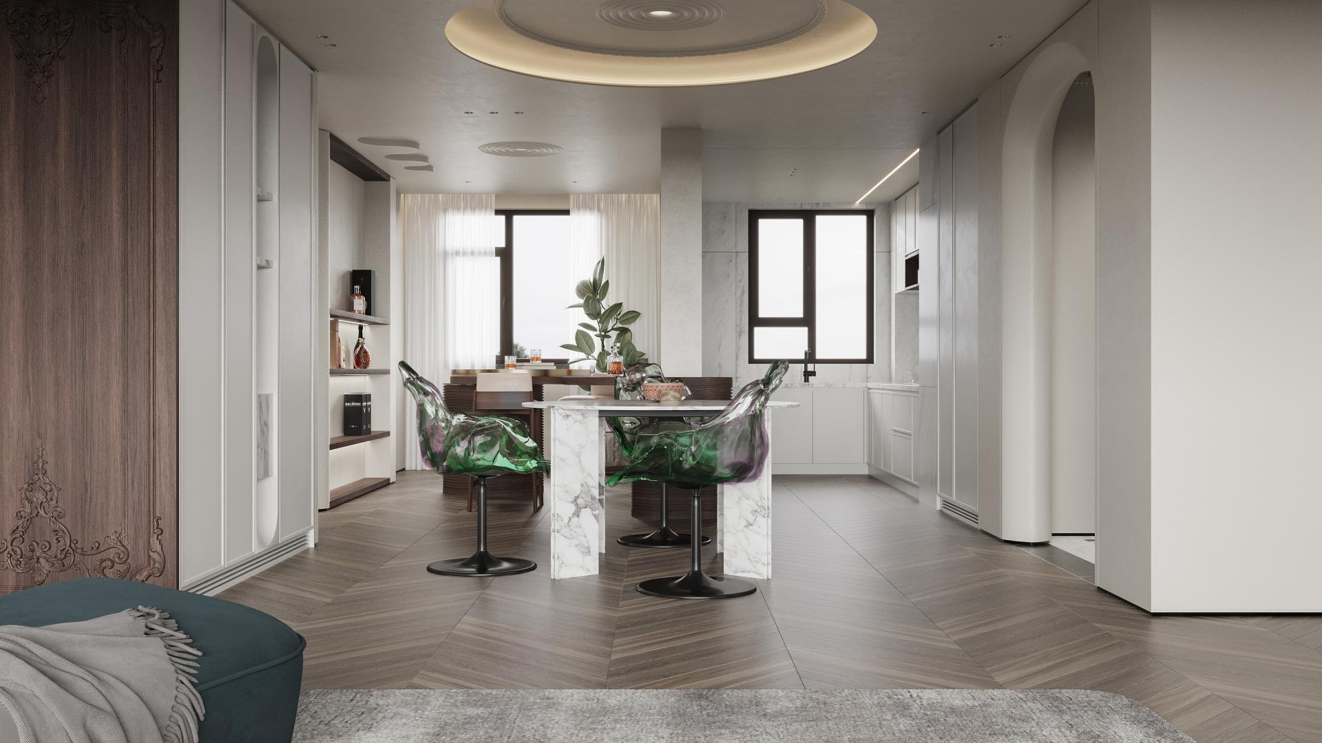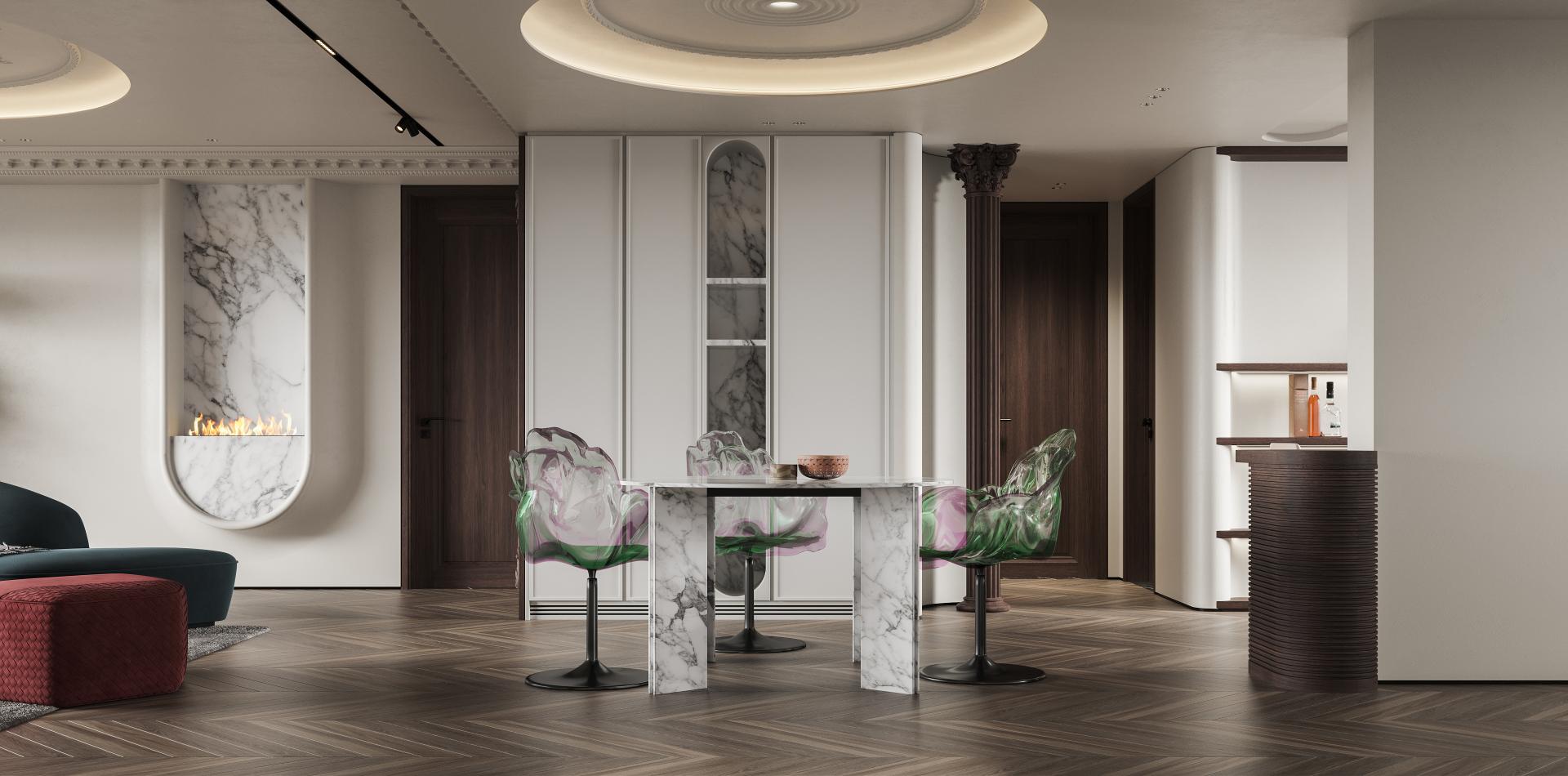 Modern minimal and French classic art intersect, forming rich spatial layers through the expression of structure and materials, showing a unique high-end taste.