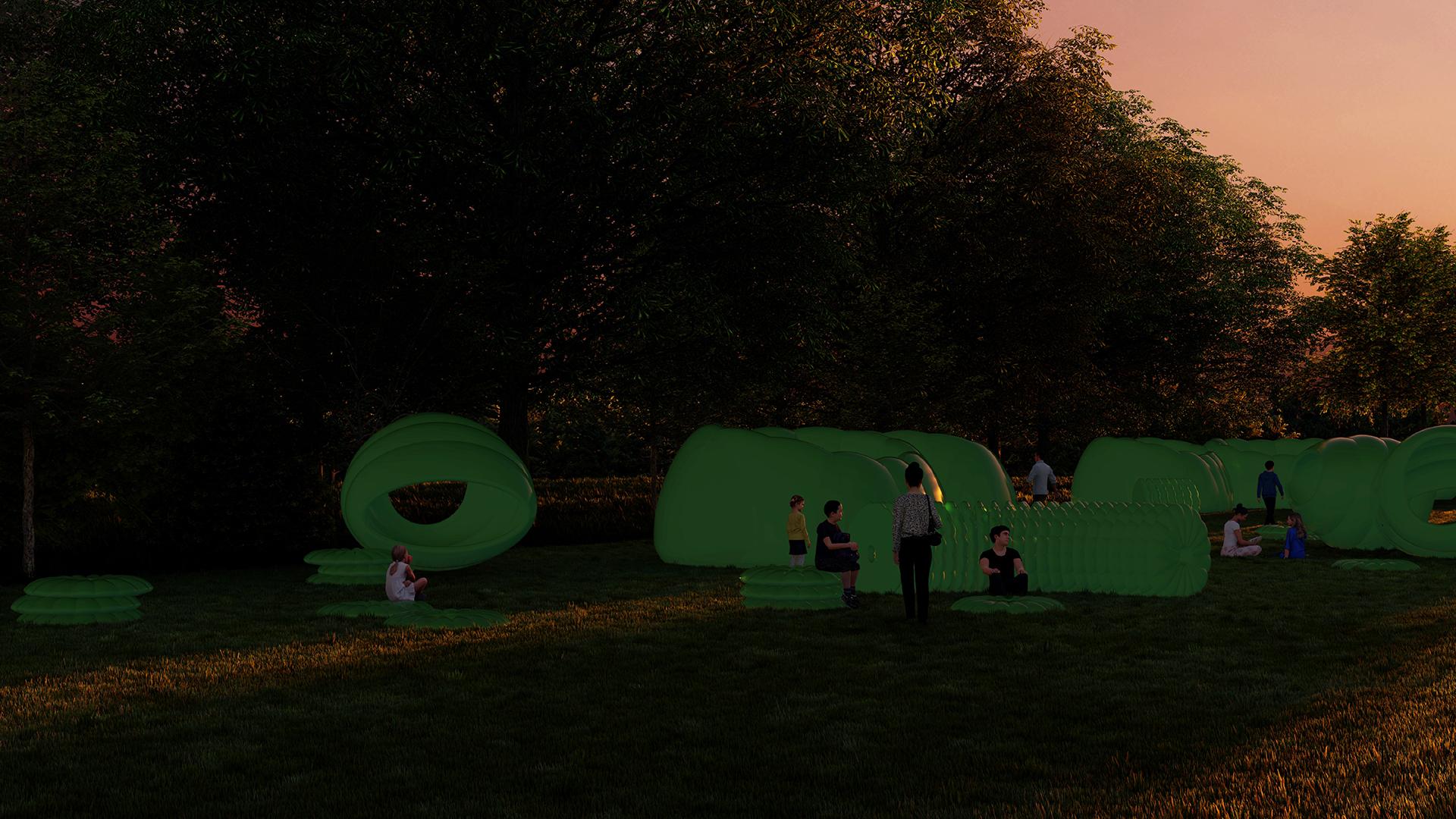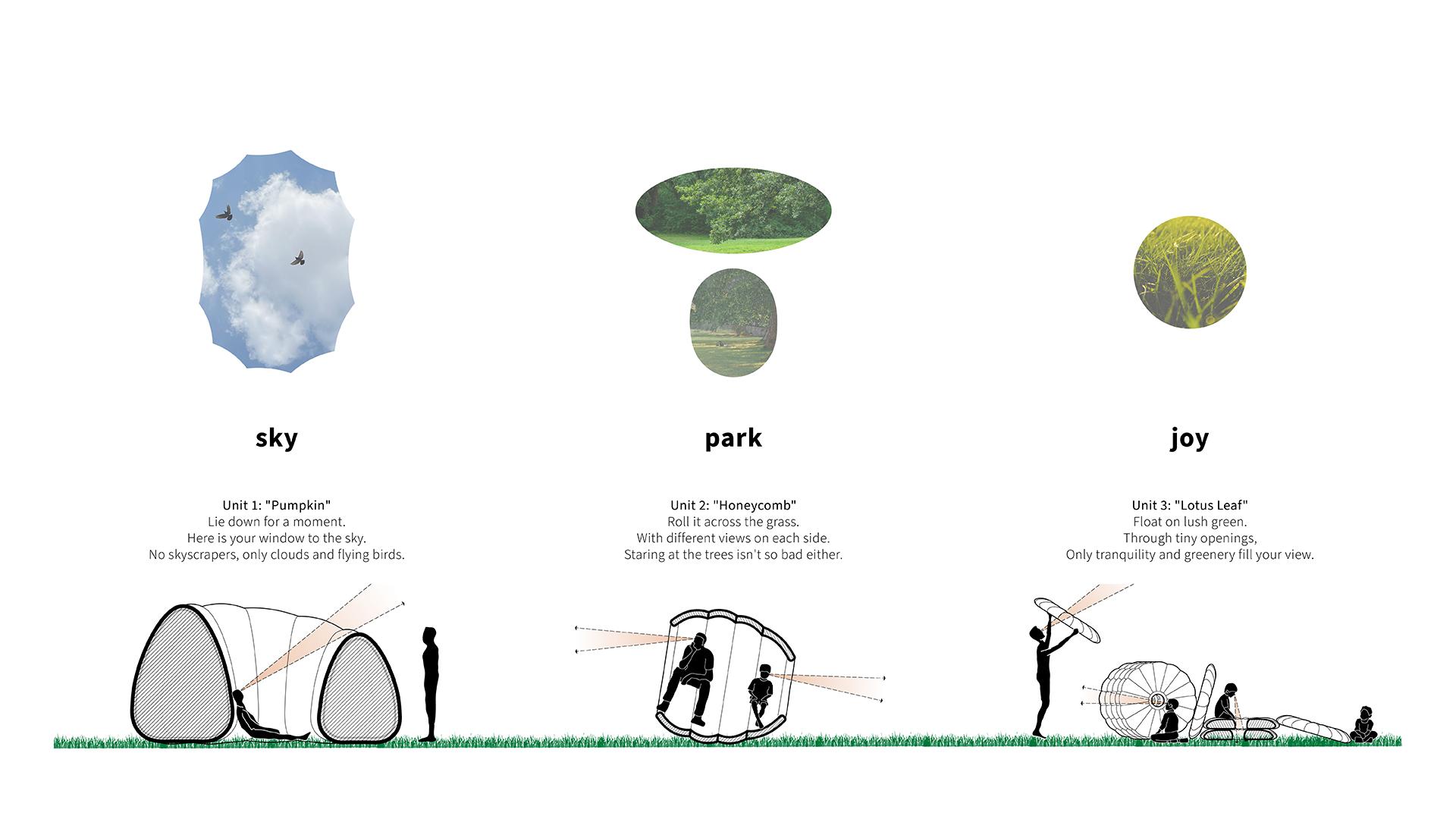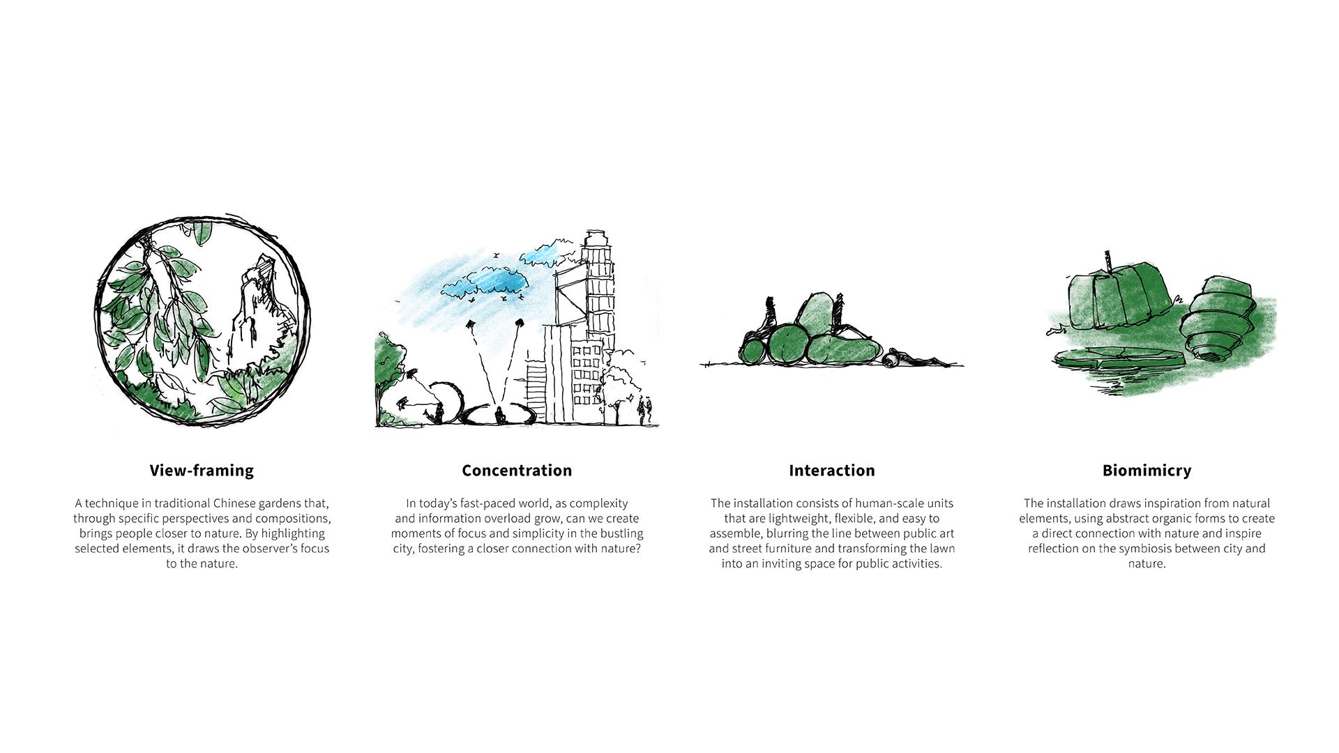 DIFFERENT LENS is an interactive installation designed to draw attention to the surrounding natural environment. With soft, lightweight forms, it floats above the iconic lawns of Fuxin Park, inviting visitors into their own personal bubbles. Here, they can momentarily disconnect from the fast pace of daily life, focusing purely on the simplicity of nature. While ancient Chinese wisdom critiqued narrow perspectives, in today’s world of information overload, these whimsical bubbles serve as a gentle window to guide one’s attention back to nature, creating moments of unique connection.