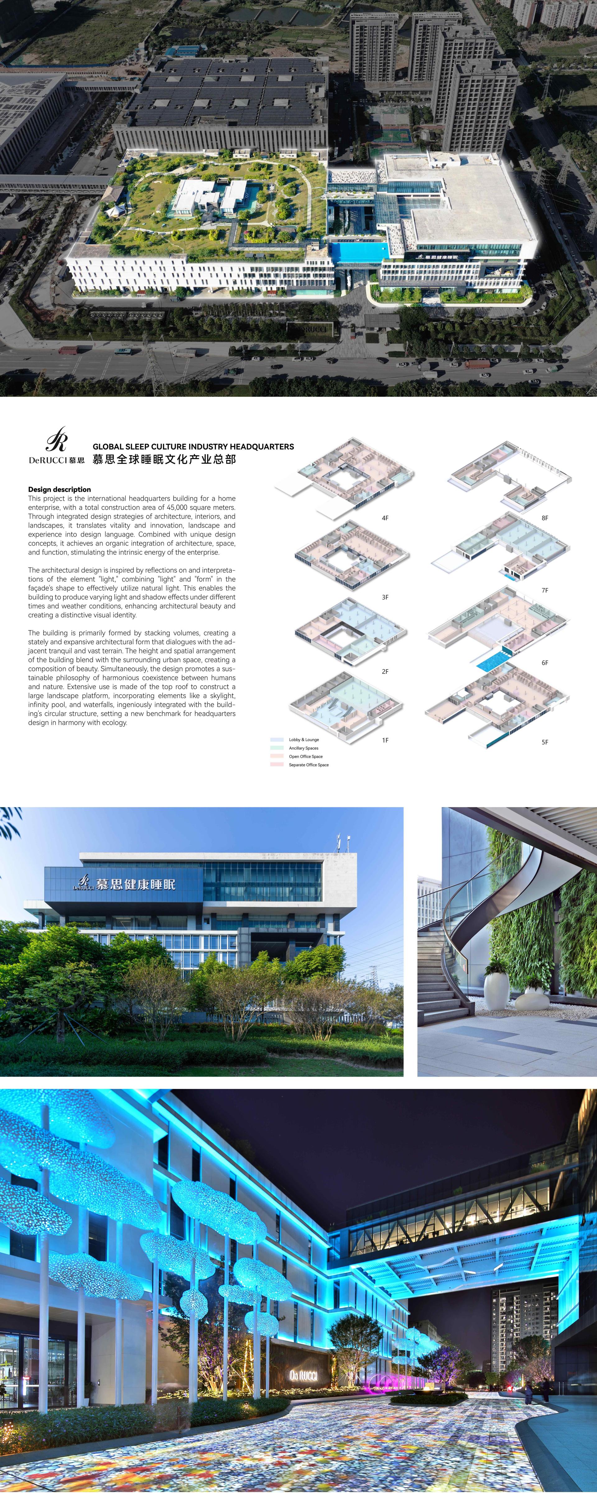 This project is the international headquarters building for a home enterprise, with a total construction area of 45,000 square meters. Through integrated design strategies of architecture, interiors, and landscapes, it translates vitality and innovation, landscape and experience into design language. Combined with unique design concepts, it achieves an organic integration of architecture, space, and function, stimulating the intrinsic energy of the enterprise.