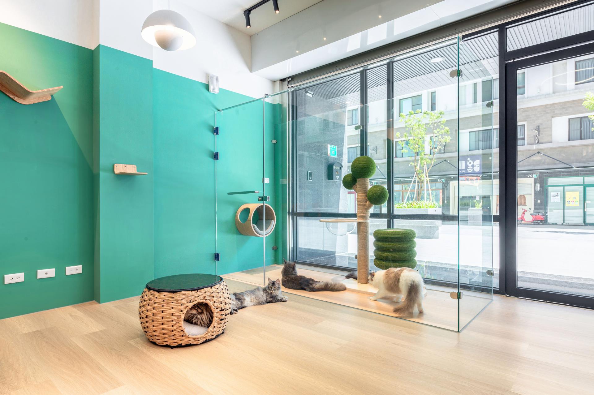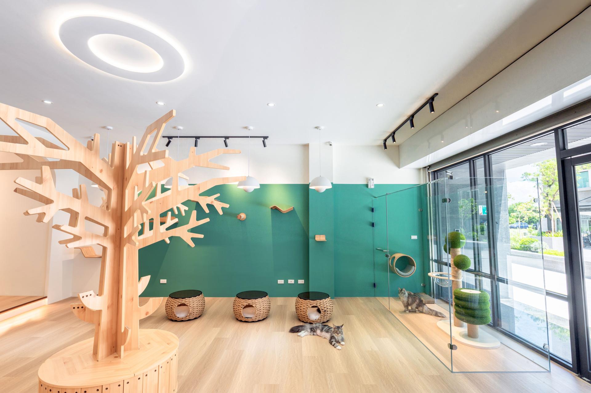 Amid the vibrant avenues of the Tainan Science Park, a captivating burst of greenery beckons, drawing in passersby to discover the tranquil escape of Meow Me Café. Upon entering, guests are welcomed into an urban sanctuary, where the gentle interplay of warm wooden textures and serene green hues evokes a refined, natural elegance. Sunlight streams through large French doors, gently glowing upon lounging cats who bask in its embrace. Customers sip rich coffee, delighting in the soft sensation of fur beneath their fingertips, savoring the calming rhythm of each stroke. This hidden retreat offers a serene respite, harmonizing with the bustling world outside while standing as a peaceful enclave within the city.
