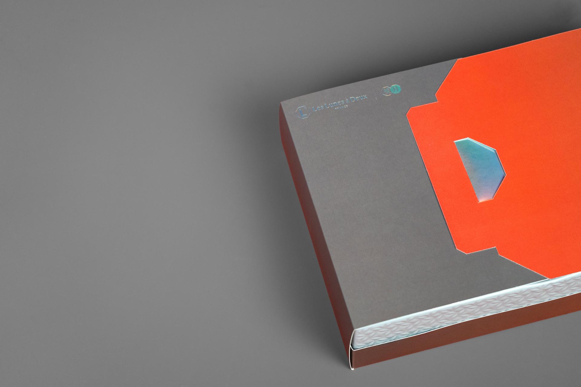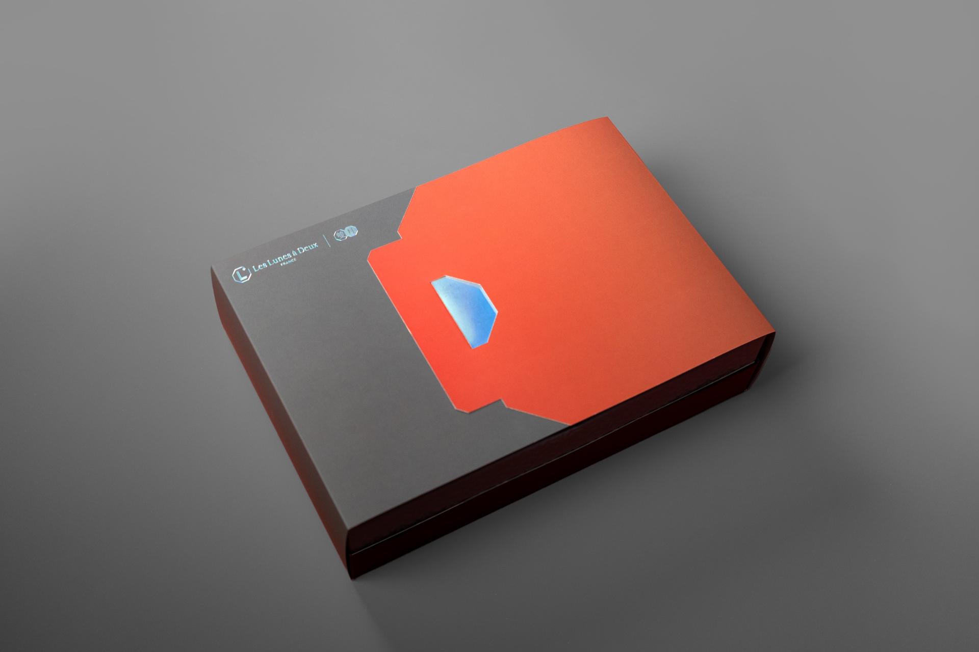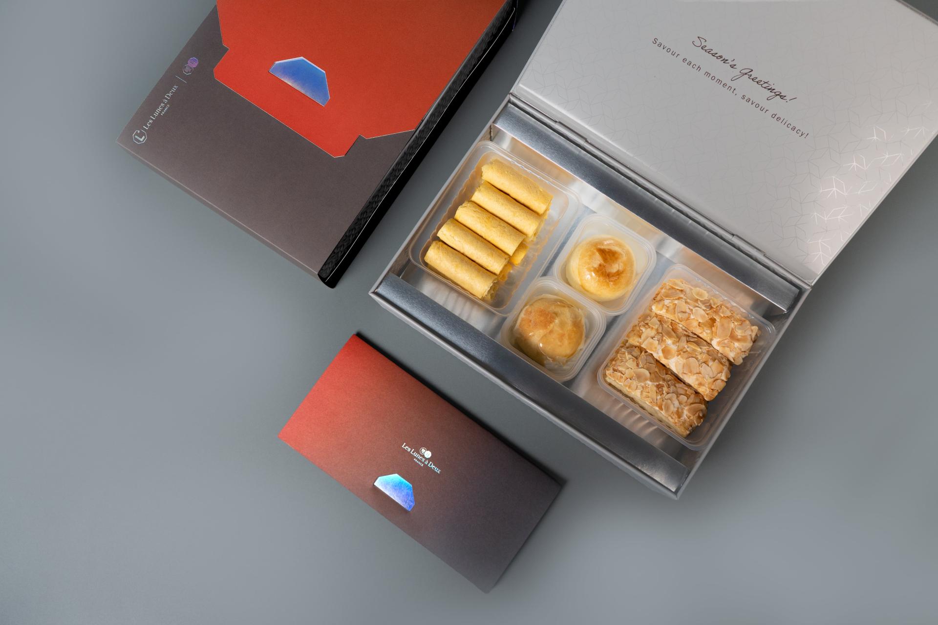 The adoption of hot-stamping foil for the interior simply symbolises “hologram” as part of the branding. The foil film gives a glossy finish and a holographic effect same as the half hexagon. Overall, the box sleeve is a big film which can be wrapped resembling a belt closure and the box packaging is executed in a sleek, modern and minimalistic construction. CNY Deluxe Gift Box is an embodiment of LLD’s fine pastries with a modern twist.