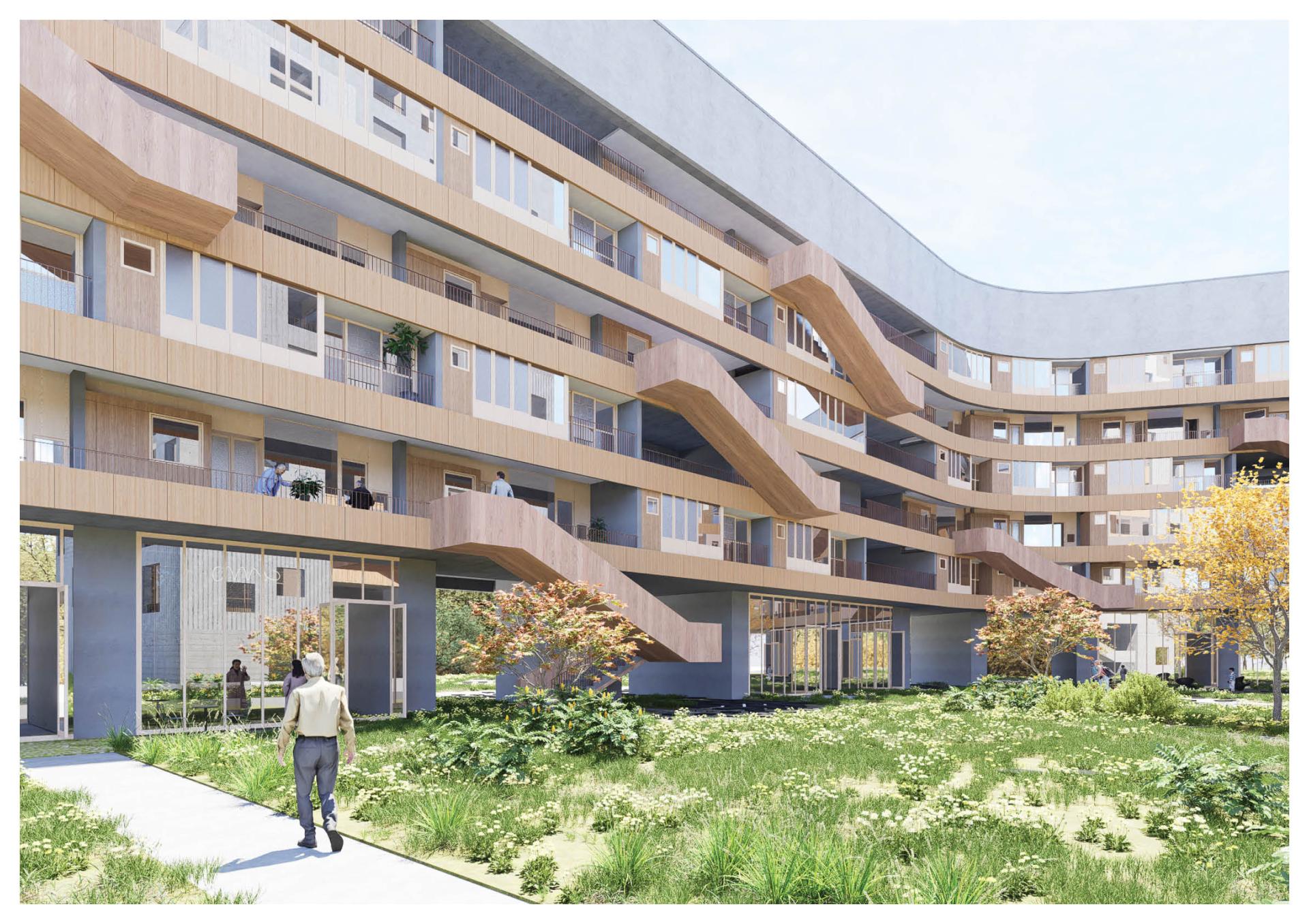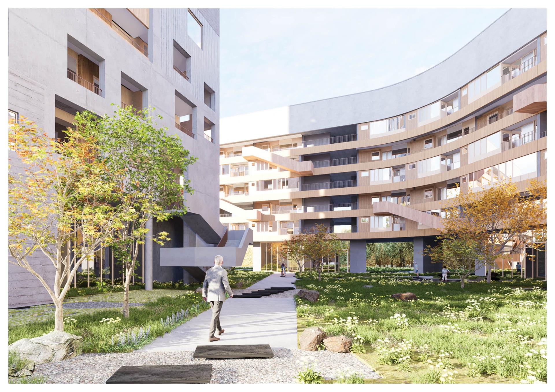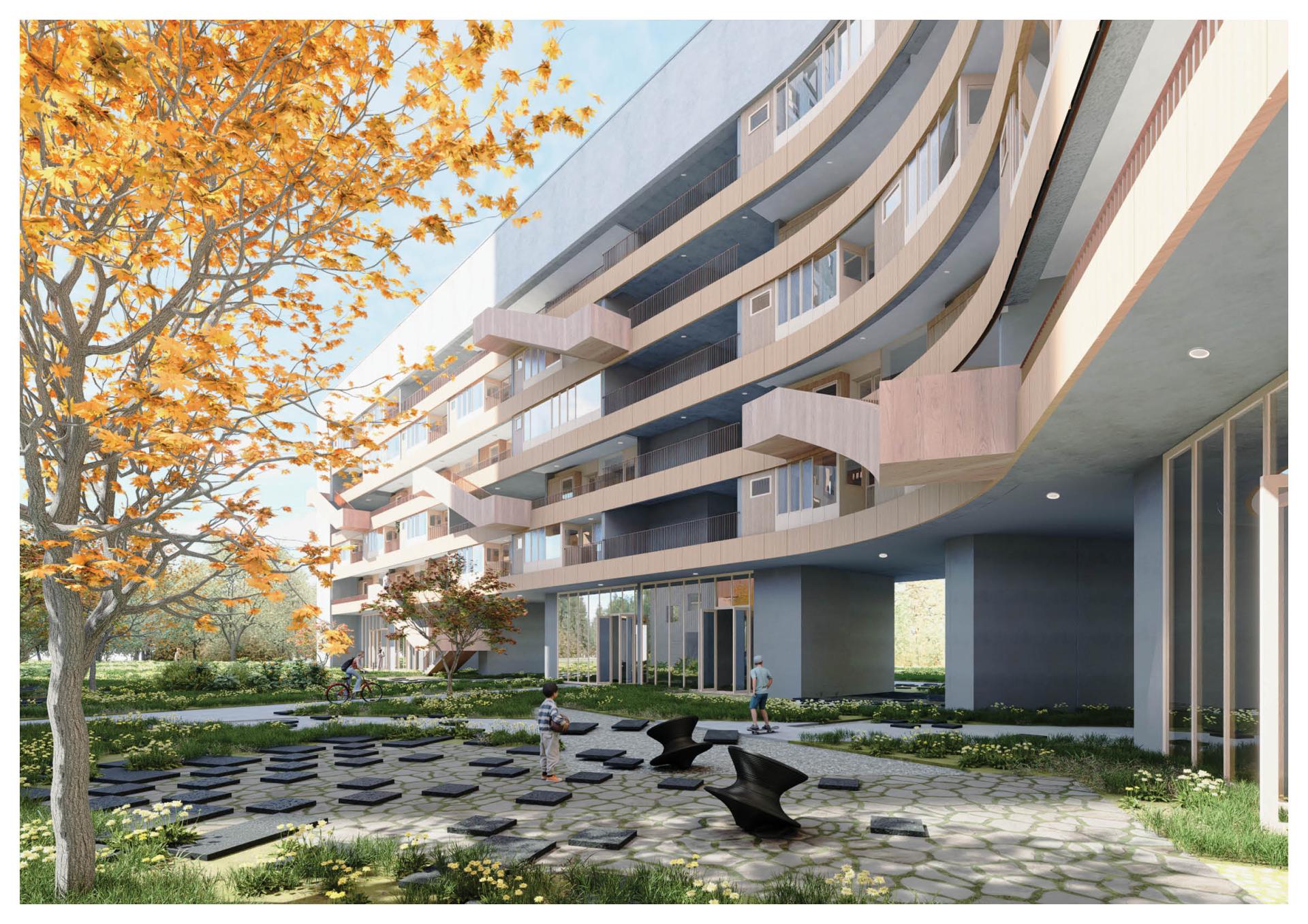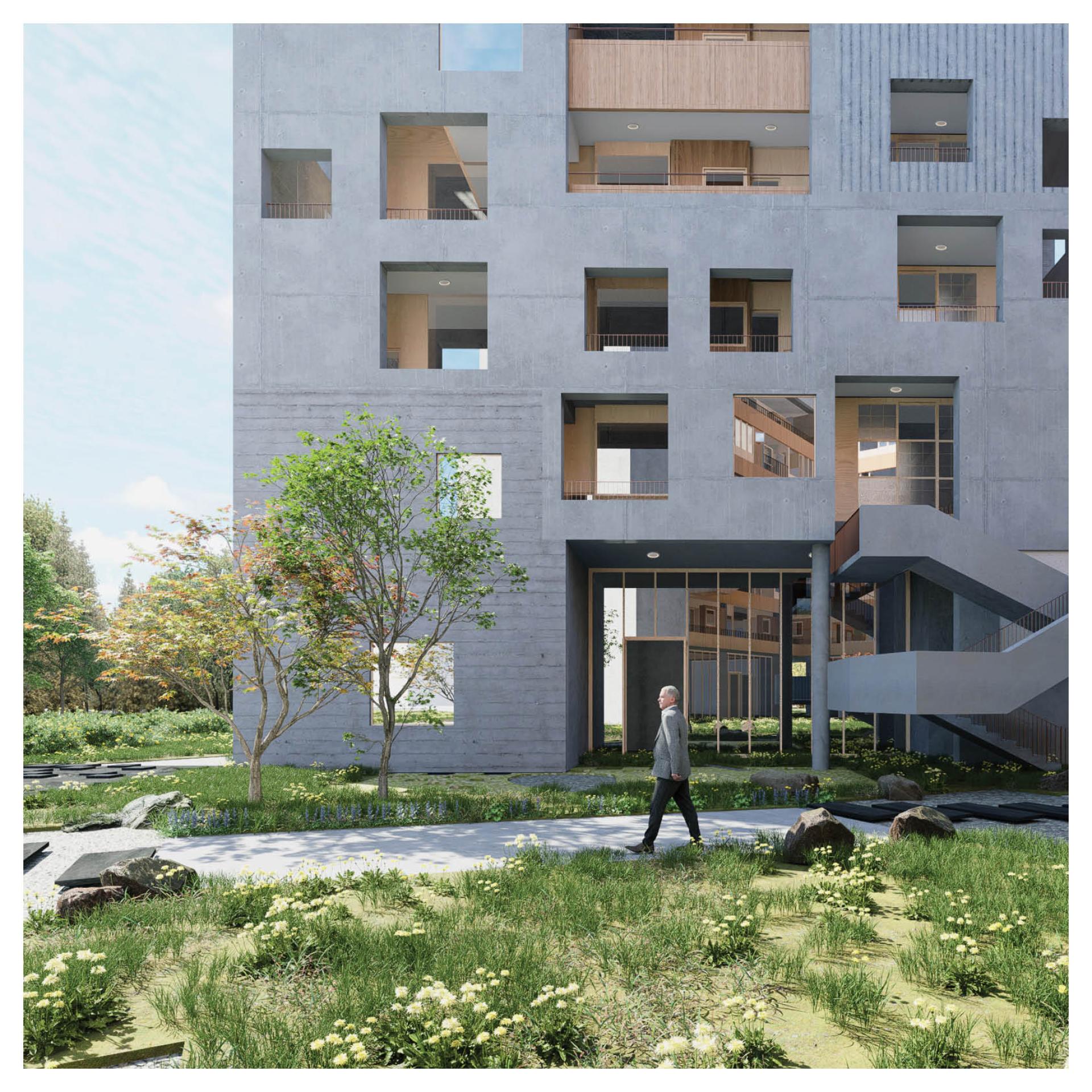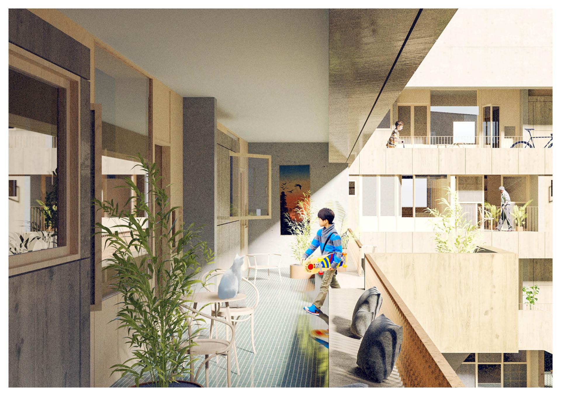 The project centers on transitional spaces, redefined as semi-public and semi-private zones, to enrich community interaction while preserving personal privacy. Drawing from traditional tatami rooms and Japanese garden principles, the design emphasizes spatial gradients and subtle boundaries. Key features include dual spiral circulations—one within an enlarged central core and another wrapping the perimeter—ensuring accessibility, connectivity, and opportunities for interaction.