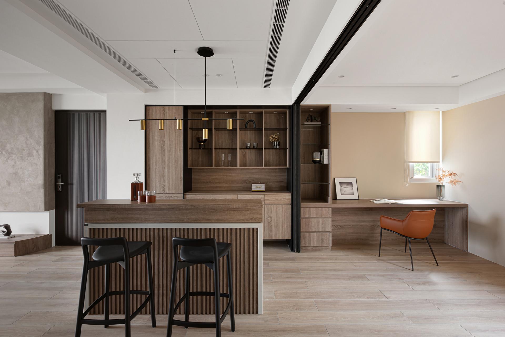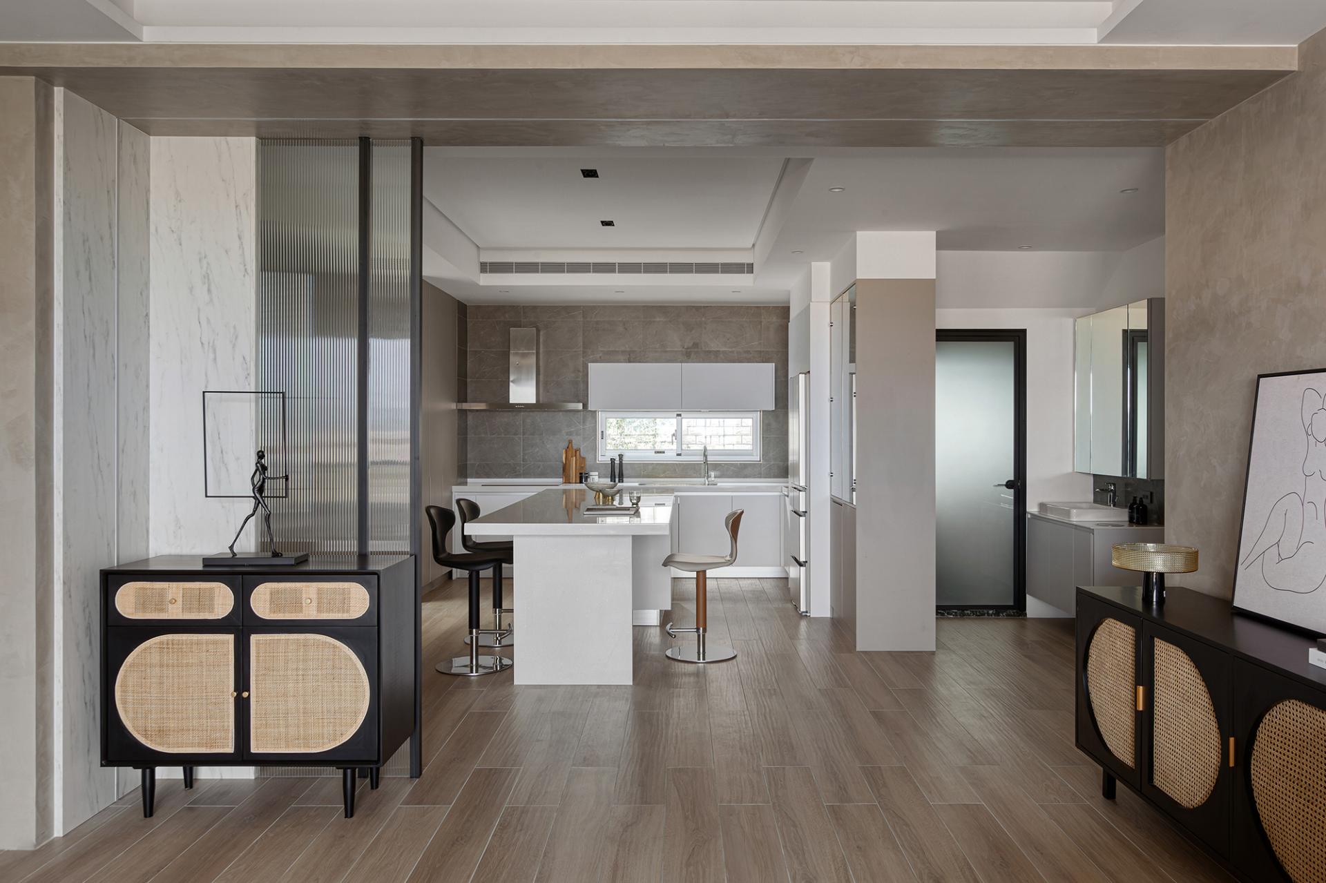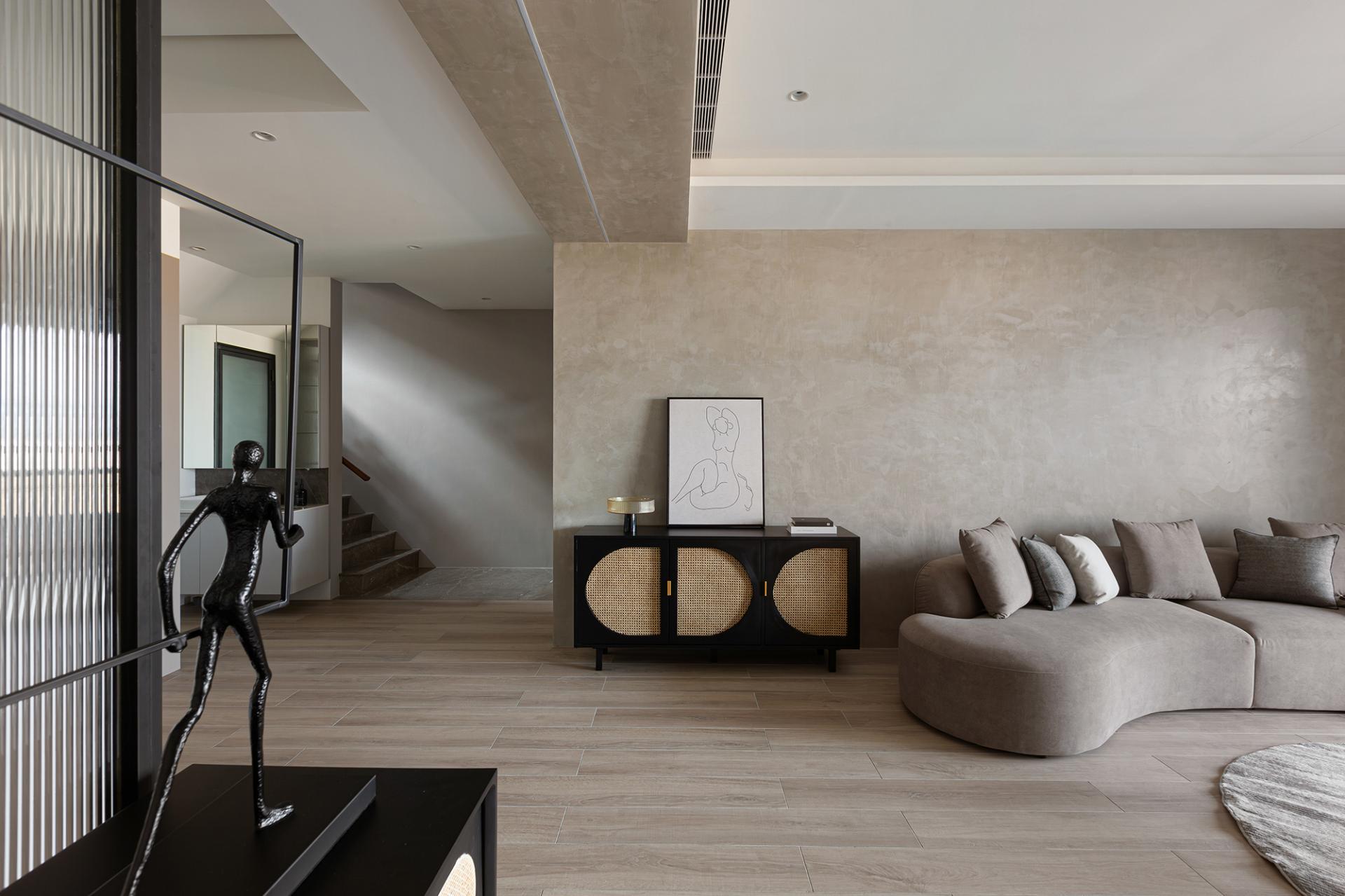 Entering the interior space, one will notice that this innovative project transforms traditional spatial concepts, welcoming one into an atmosphere filled with openness and warmth. The public area is exquisitely crafted with an open layout that not only amplifies the sense of space but also promotes a fluid movement for residents. The design embraces a minimalist philosophy, highlighting the beauty of emptiness and allowing gazes to roam freely. A thoughtfully chosen palette of natural hues—soft whites, gentle grays, warm beiges, and rich wood tones—works in harmony with the abundant natural light that fills the room. This selection cultivates a modern yet artistic ambience that is both inviting and sophisticated.