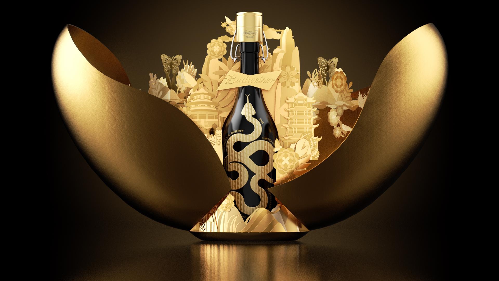The Budweiser Brewmaster Reserve 2025 Limited Edition Snake Year design celebrates Chinese culture while delivering a premium and artistic beer-drinking experience. This exclusive set includes a delicately designed golden egg, two crafted beer glasses, and a bottle featuring intricate snake patterns surrounded by paper art, symbolizing prosperity and renewal. The design harmonizes tradition and modernity, creating a unique experience that is both visually and functionally impactful. Its standout feature is the gold egg reveal mechanism, symbolizing celebration, making the unboxing experience memorable.