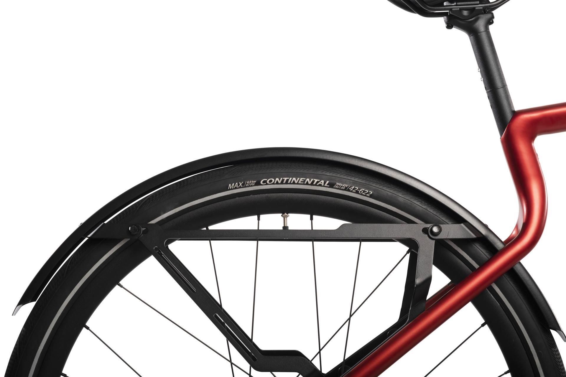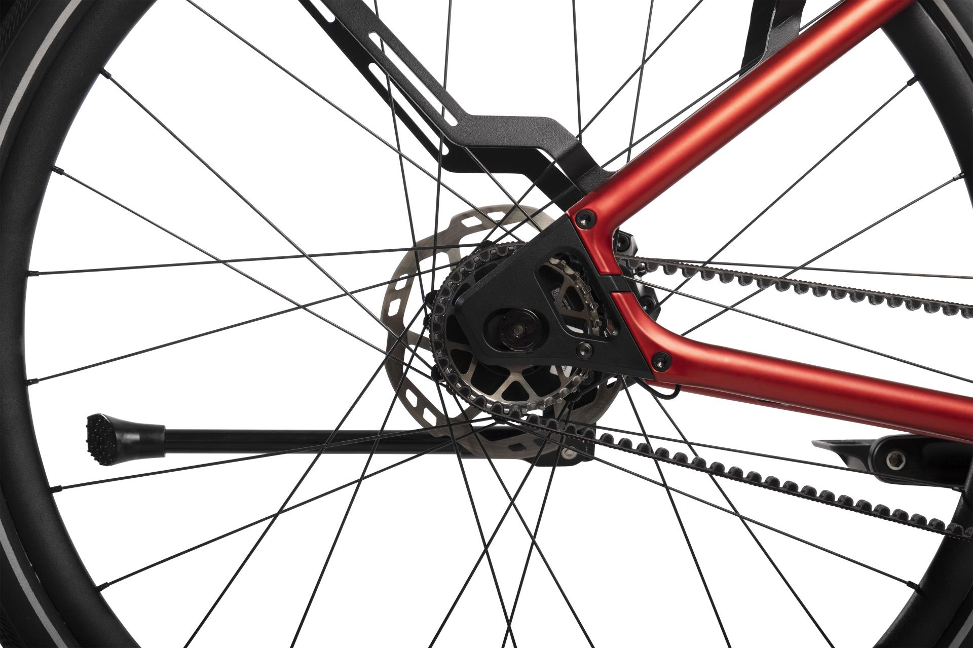 A standout feature of the STADTFUCHS is its elastic rear suspension, ensuring a smooth and responsive ride, even on challenging urban surfaces like cobblestones or potholes. The suspension adapts to various terrains, providing comfort and control in any situation. The bike’s modular platform allows riders to personalize it with accessories, integrating smart technologies such as GPS, adaptive lighting, and real-time performance monitoring for a customized riding experience that combines style and practicality.
