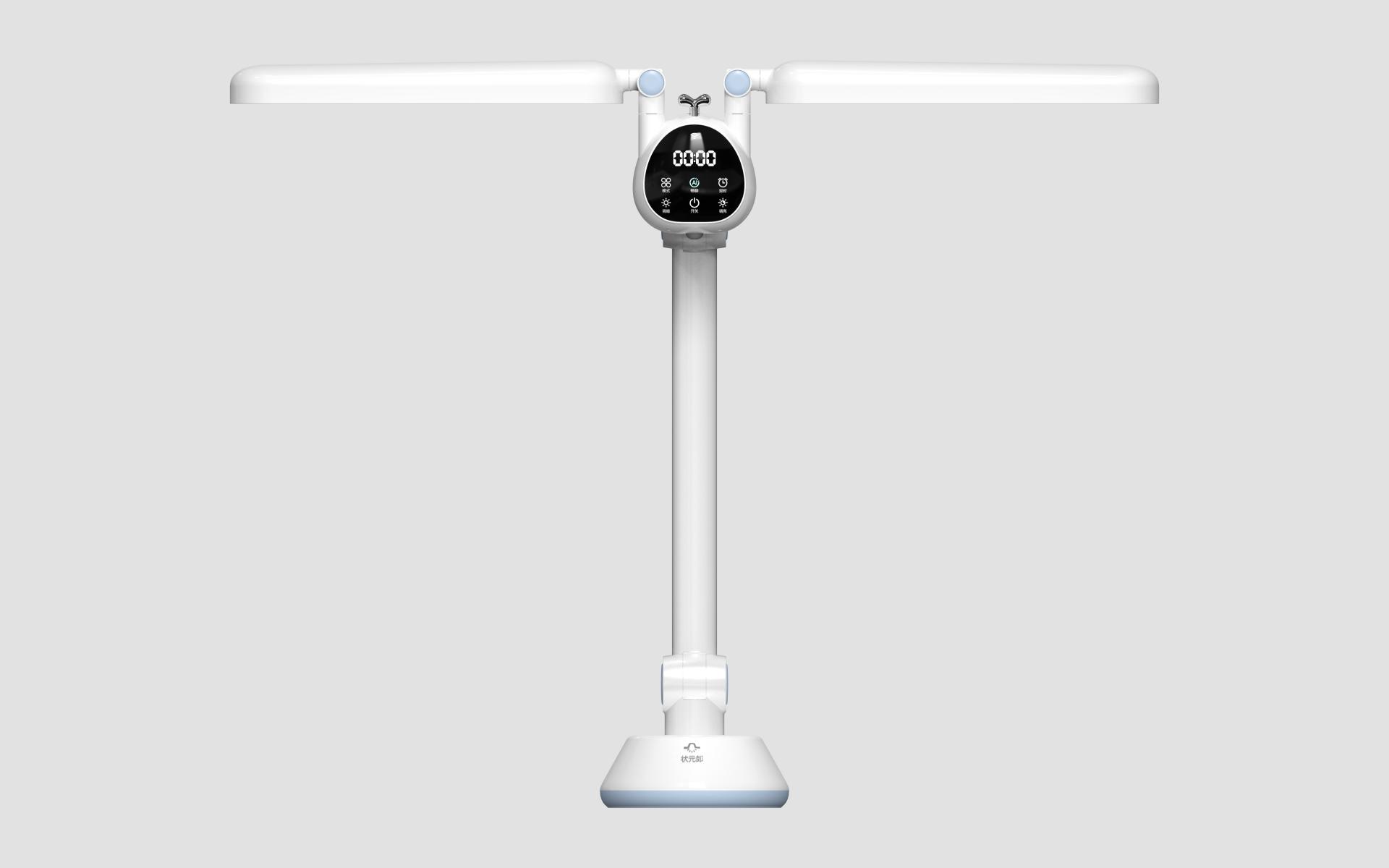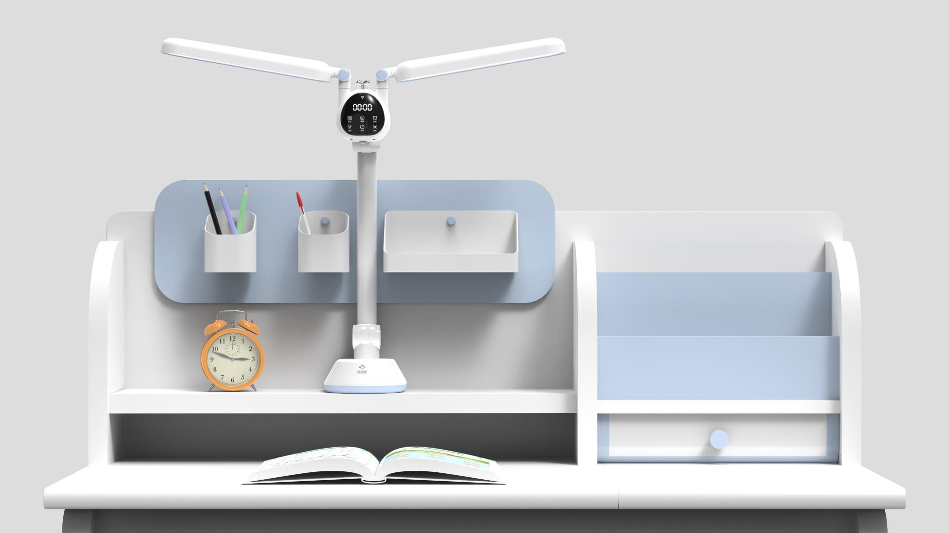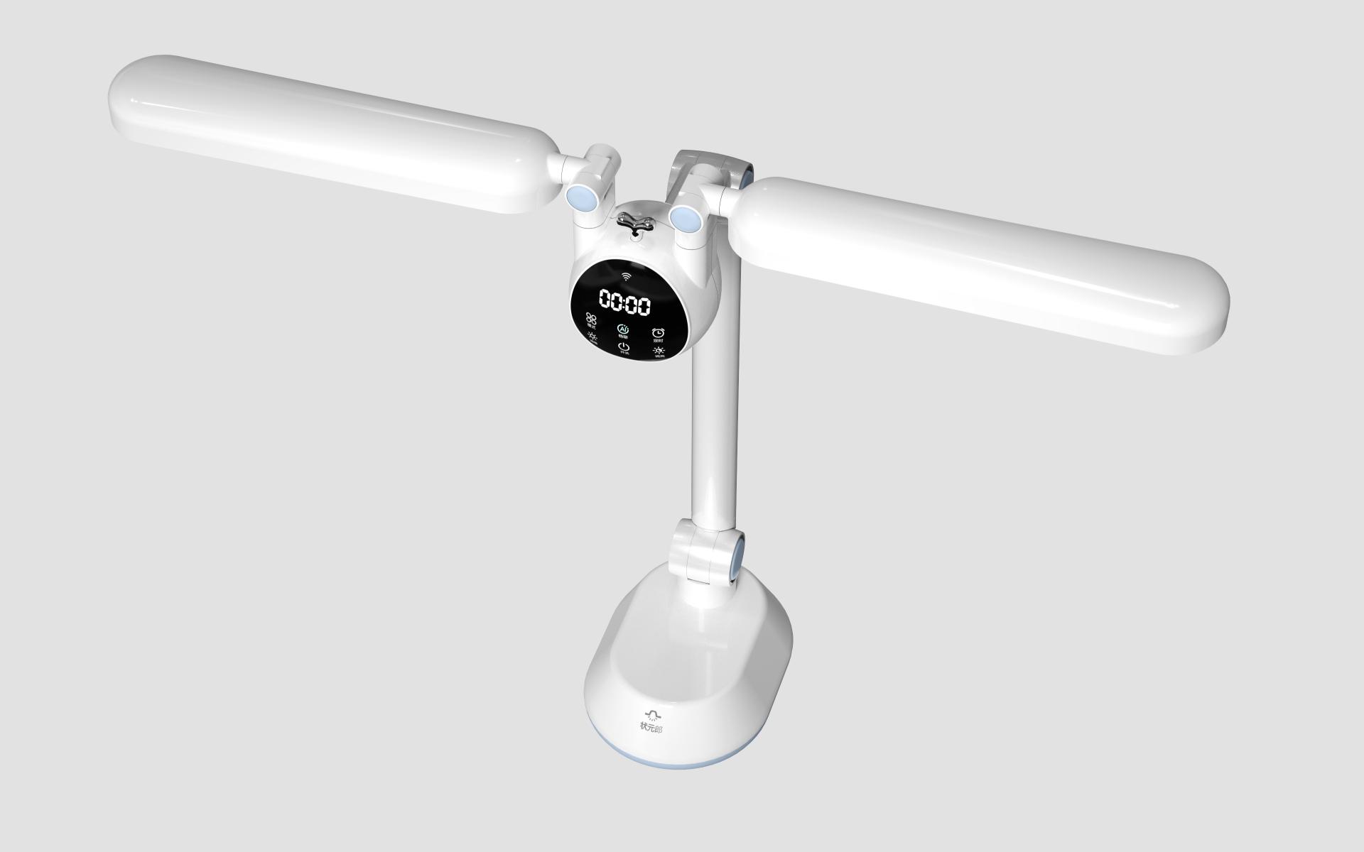 In order to solve the problem of narrow and uneven light distribution of ordinary table lamps, we designed this wide-lighting, partitioned, dual-lamp-head smart learning table lamp to provide children with a more comfortable, uniform and bright lighting environment.