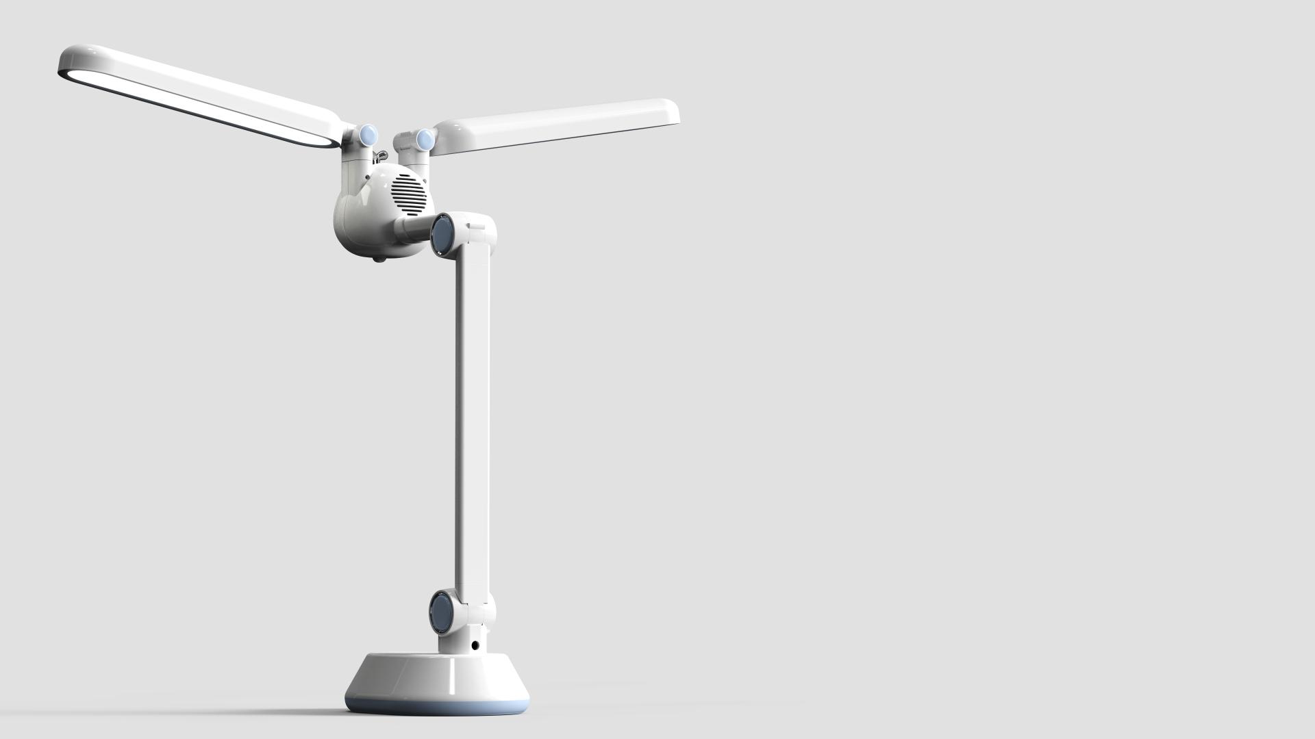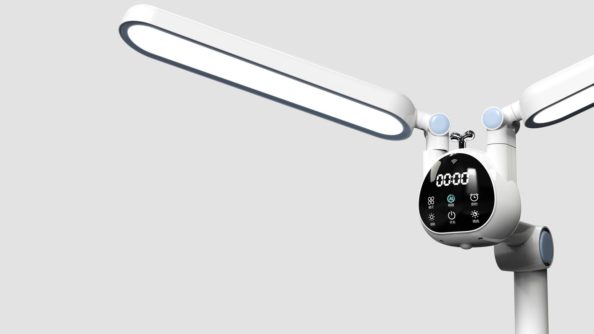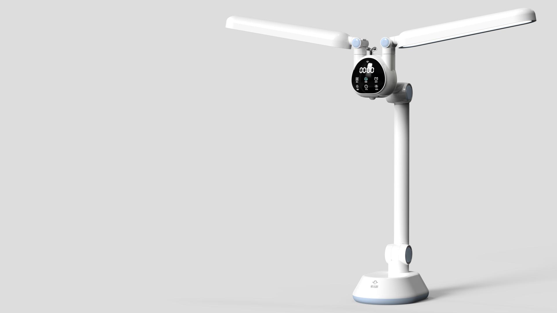 In order to solve the problem of narrow and uneven light distribution of ordinary table lamps, we designed this wide-lighting, partitioned, dual-lamp-head smart learning table lamp to provide children with a more comfortable, uniform and bright lighting environment.