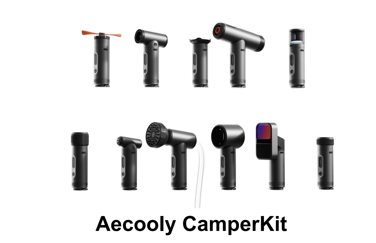 Aecooly CamperKit is a modular outdoor tool designed to meet diverse needs during outdoor activities. The core module provides power and control, with 11 interchangeable modules, including a high-speed blower, handheld fan, ceiling fan, flashlight, camping light, ambient light, arc lighter, power bank, alarm, air pump, and portable rinse head. The quick-connect system allows for seamless switching between these modules, ensuring maximum functionality and convenience. This versatile design adapts to various outdoor scenarios, making it an essential all-in-one toolkit for outdoor enthusiasts.