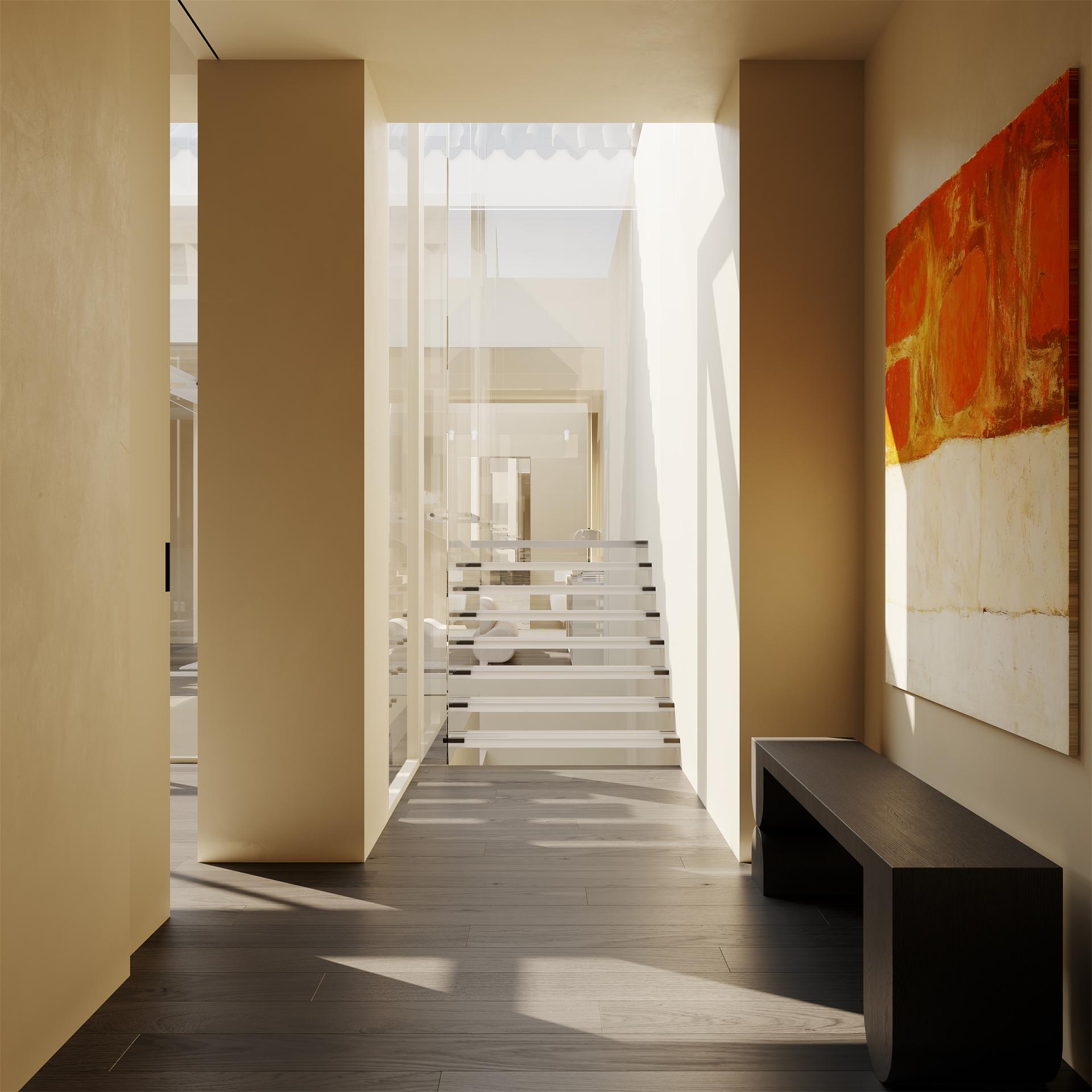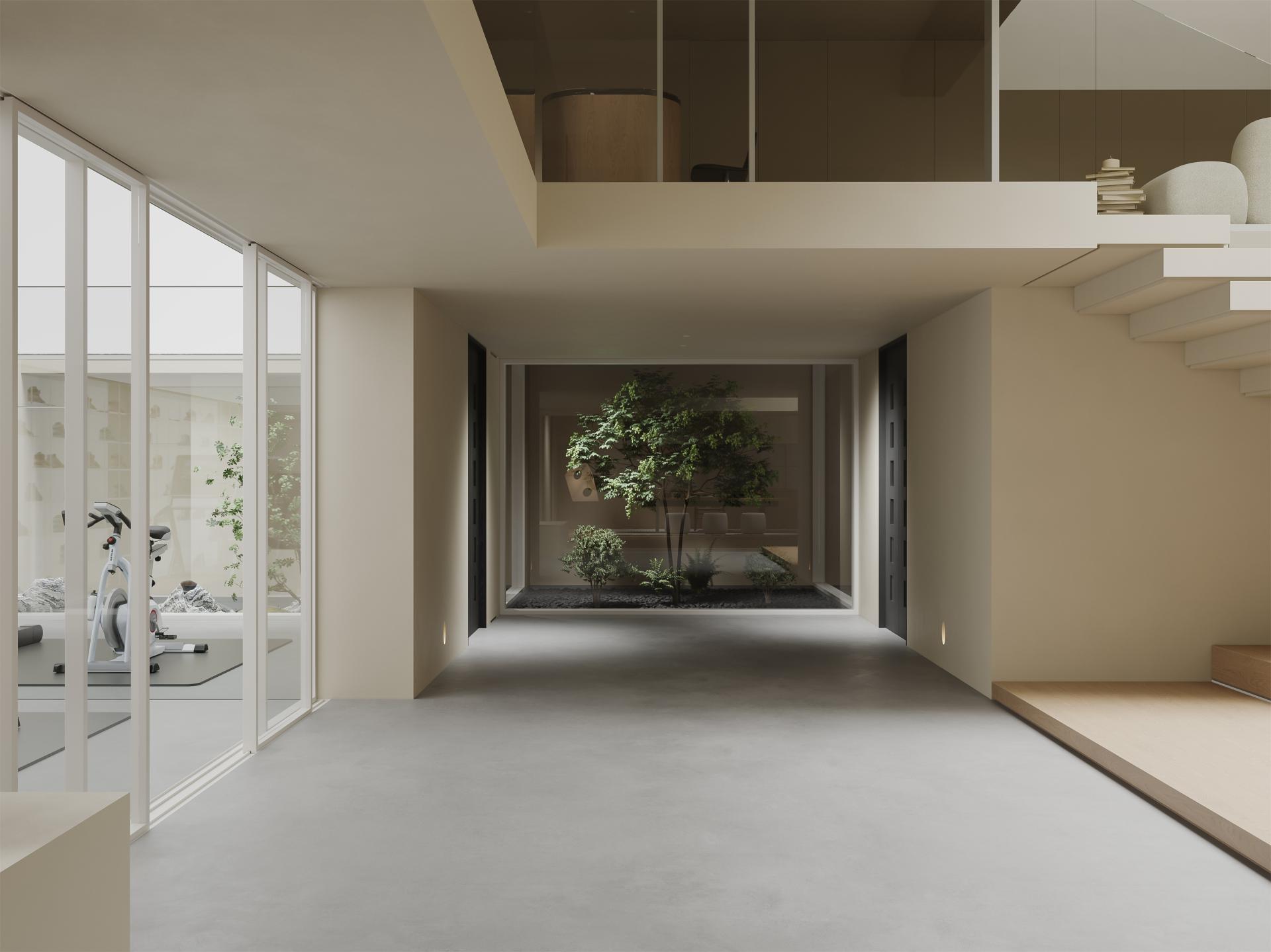 Furthermore, Luminous Quadrangle leverages clean lines and natural illumination to accentuate the functional qualities of space, embodying a resistance to ornate decoration and industrial aesthetics. The generous influx of light imbues each floor with greater spatial depth, while also crafting distinct atmospheres and settings within the interiors. Moreover, the incorporation of extensive natural materials such as wood and stone elevates the sense of naturality, complemented by the use of sustainable resources like recycled wood, eco-friendly paints, and adhesives to lessen environmental impact and carbon emissions. The four-story villa integrates open staircases, glass facades and the classic courtyard layouts, which effectively fosters natural ventilation pathways, thereby reducing reliance on air conditioning.