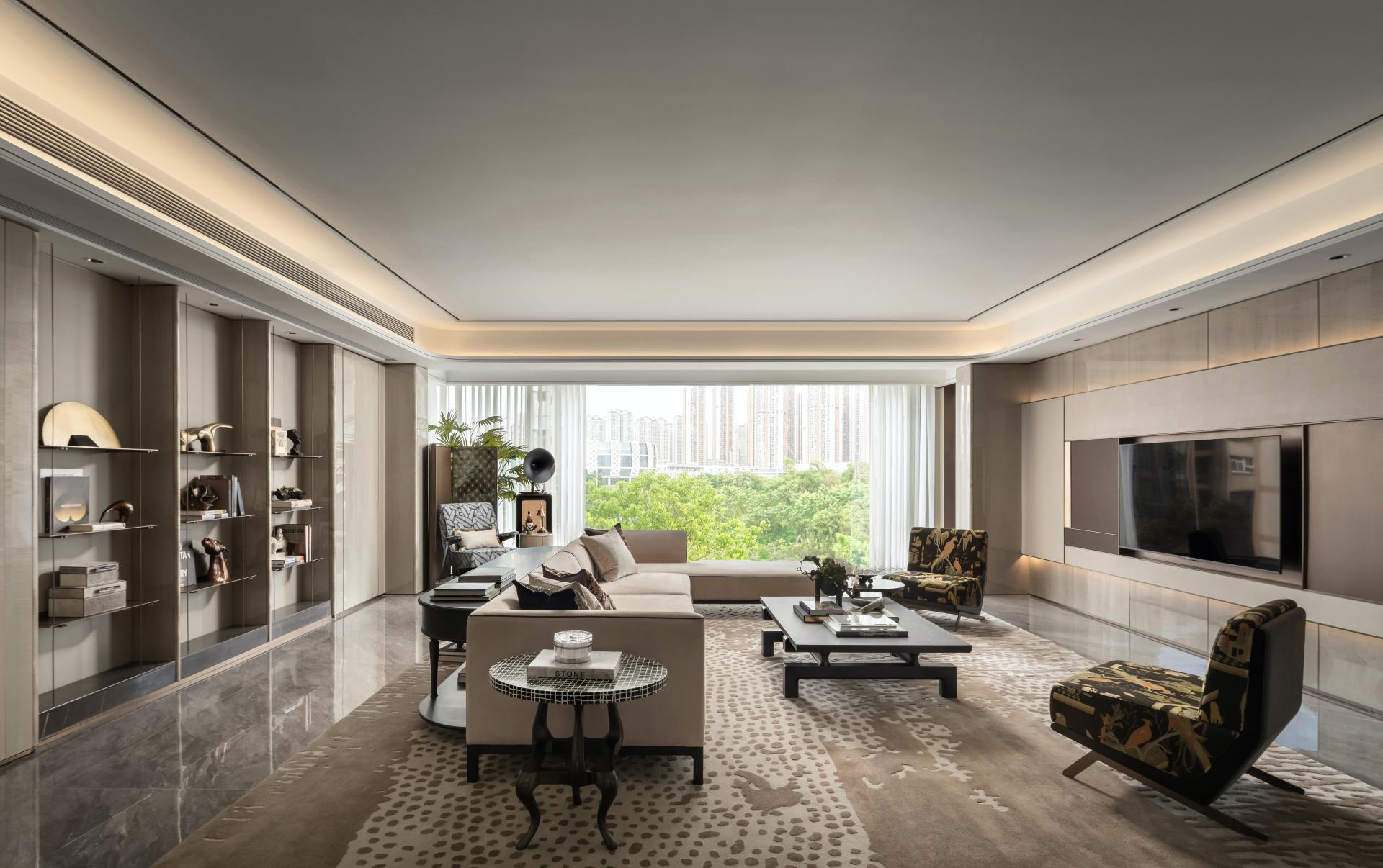 The design of this project aims to blend oriental flavor with modern luxury to create an abode where the soul resides. The living room has a borderless design that introduces natural light, and the soft furnishings are revitalized by light and shadow, intertwining antiquity and modernity. The dining room is decorated with the project's local specialty, Xinhui Fire Painting Fans, adding to the cultural heritage. The bedroom is simple and comfortable, with warm coloring and vintage lighting complementing each other to create a warm and calm atmosphere. The study is freely laid out with a fresh breeze and quiet enclosure. The overall space adopts soft colors and delicate details, and greenery and sunshine are intertwined to show an elegant lifestyle. Each design is a tribute to nature and culture, isolating the hustle and bustle of the city and leaving behind a sense of peace and tranquility, allowing residents to find their inner belongings in the midst of the bustle of the city.
