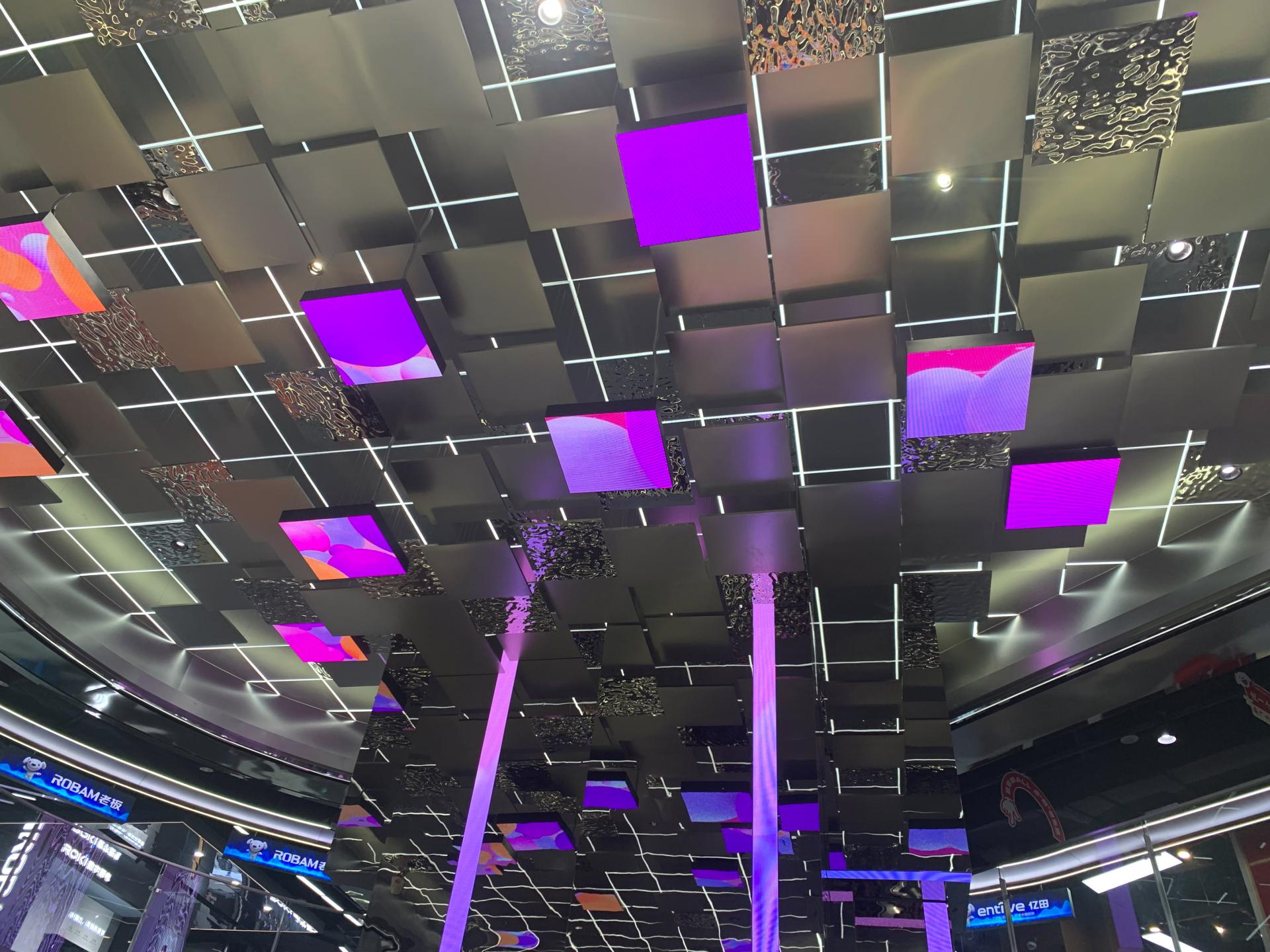 The project is located in Guangzhou City, China, Haizhu District, Industrial Avenue North, No. 110, Guangzhou Jingdong MALL shopping mall, which is a very creative intelligent lifting LED screen, consists of 11 pieces of up and down movement of the LED screen composition, 11 screens, which also includes 4 pieces of 90 ° corner of the LED screen, the screen's movement of the track for the 12m up and down range of movement, can be independently controlled by each movement of the LED screen units The movement of the screen track is 12m up and down, and each movement LED screen unit can be controlled independently to move any position on the track. In the mechanical device structure, our main movement structure materials are made of aviation aluminum profiles; mechanical device control, using PLC braking control + logic control nodules control mode, with the screen anti-collision, anti-deorbit, intelligent correction and other functions, is the whole set of devices more stable and reliable; in the display of video content, we are in the production of video to fully take into account the screen's movement In terms of video content display, we give full consideration to the movement of the screen in the video production, the screen picture and the screen position with the movement of the display, so that visitors feel more vivid and interesting.