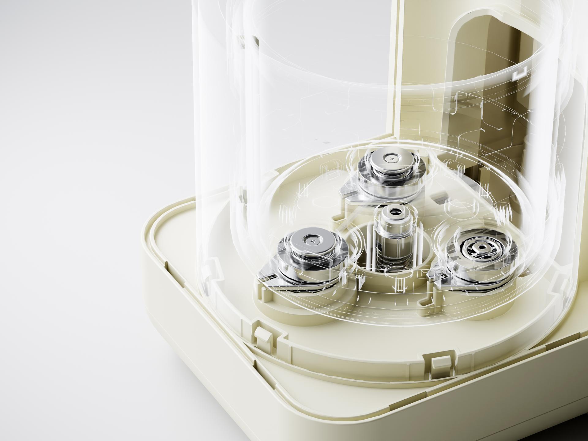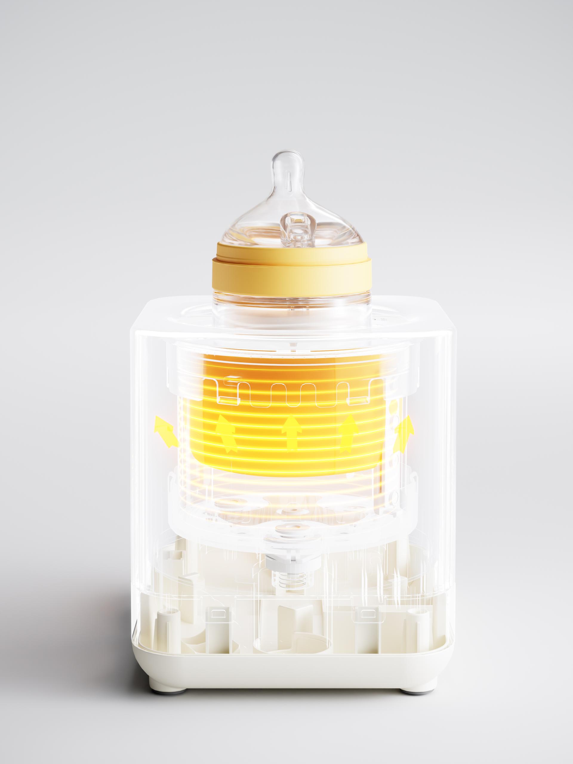 Its innovative Double-S bi-directional eccentric rotating technology leverages centrifugal force to rapidly mix milk, moving it from the horizontal plane to the bottle walls. This process ensures even dispersion and thorough dissolution, offering a smooth, bubble-free mixture that's gentle on a baby's digestion. The 85mm deep chamber with an advanced airbag system fits seamlessly around the bottle, providing 360° hot air coverage for uniform warming with minimal heat loss. Moreover, multiple precision temperature sensors work in tandem with advanced chips, maintaining accuracy within ±0.5°C to keep each feed at just the right temperature for little ones.