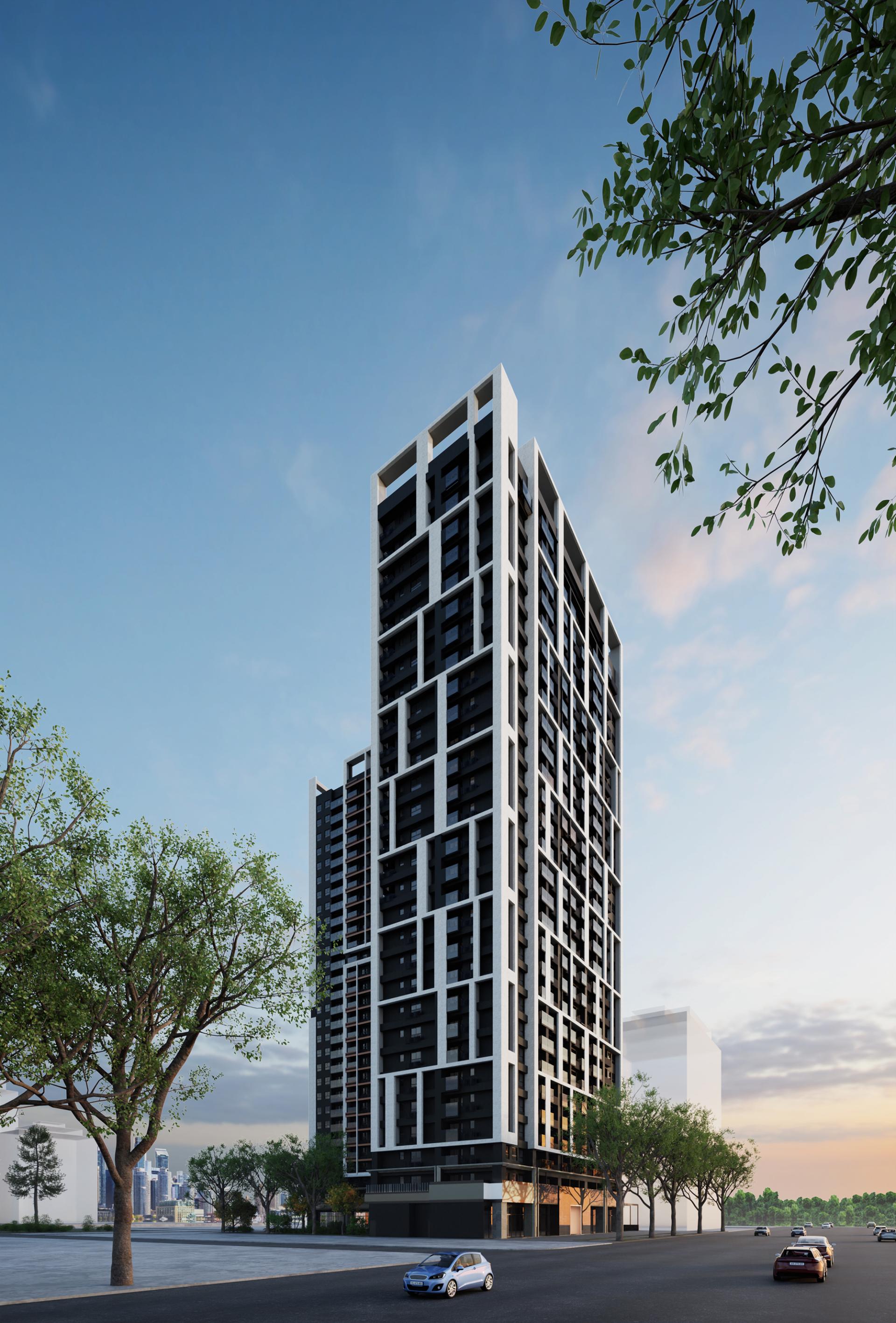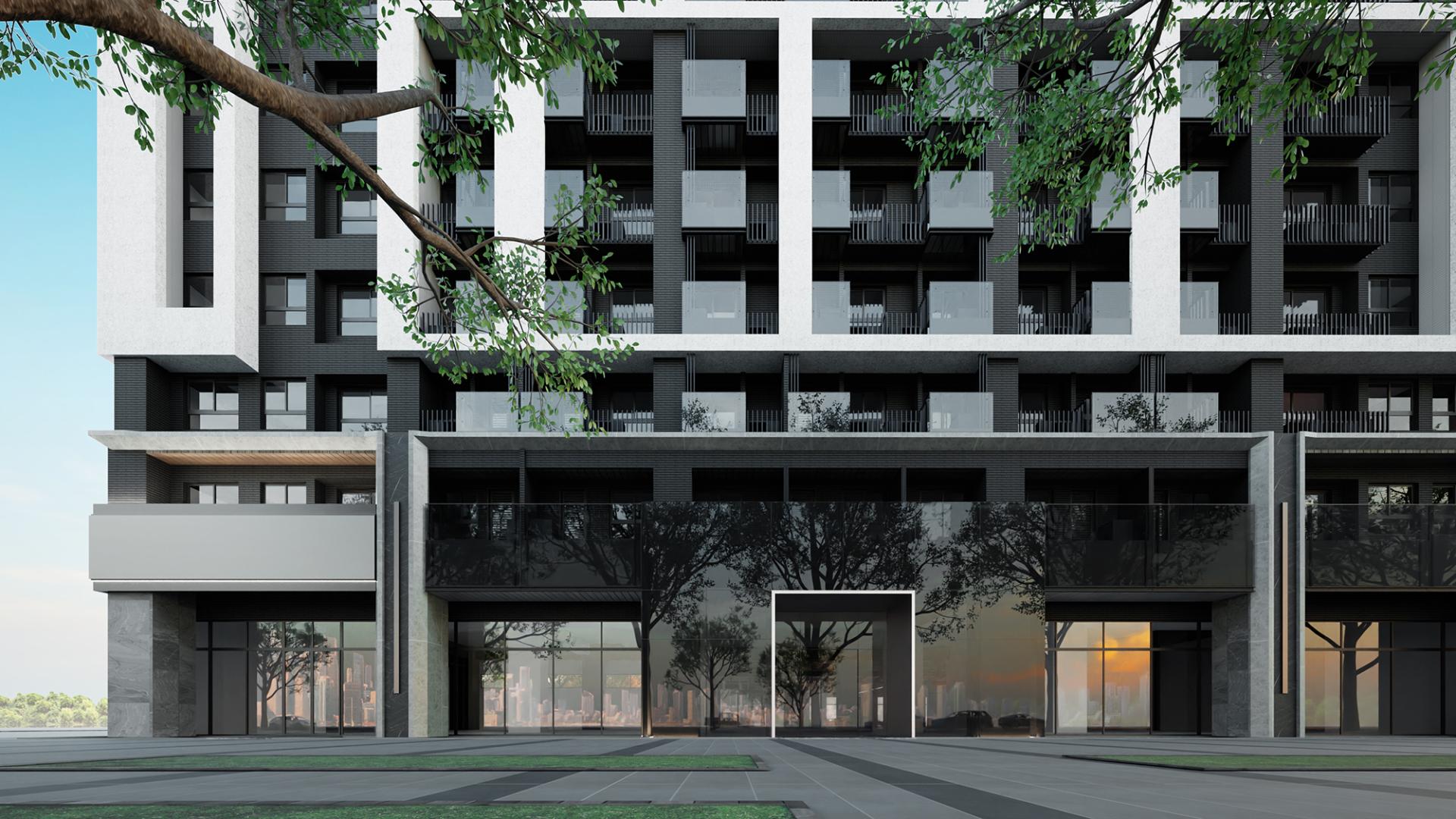 This project focuses on the sophisticated design of a building facade, integrating two distinct yet interconnected structures: a commercial building and a residential tower. Recognizing the contrasting functions of these two entities, the designer skillfully crafted unique facade shapes that complement their individual purposes. Due to the L-shaped configuration of the building's footprint, the designer chose to apply distinct facade treatments only to the street-facing elevations, ensuring that each structure stands out in its own right. Conversely, the facades that face the atrium exhibit a cohesive design, strategically uniting the two buildings and preventing visual discord. At the heart of the design lies the atrium, an open and inviting space that seamlessly connects the buildings to the lush greenery of the adjacent park. This intentional design fosters a harmonious relationship between the built environment and nature, emphasizing a vision of symbiosis among architecture, the surrounding landscape, and the community it serves. By integrating these elements, the project aspires to create not only a visually striking presence but also a vibrant environment that enhances the experience of its occupants and visitors alike.