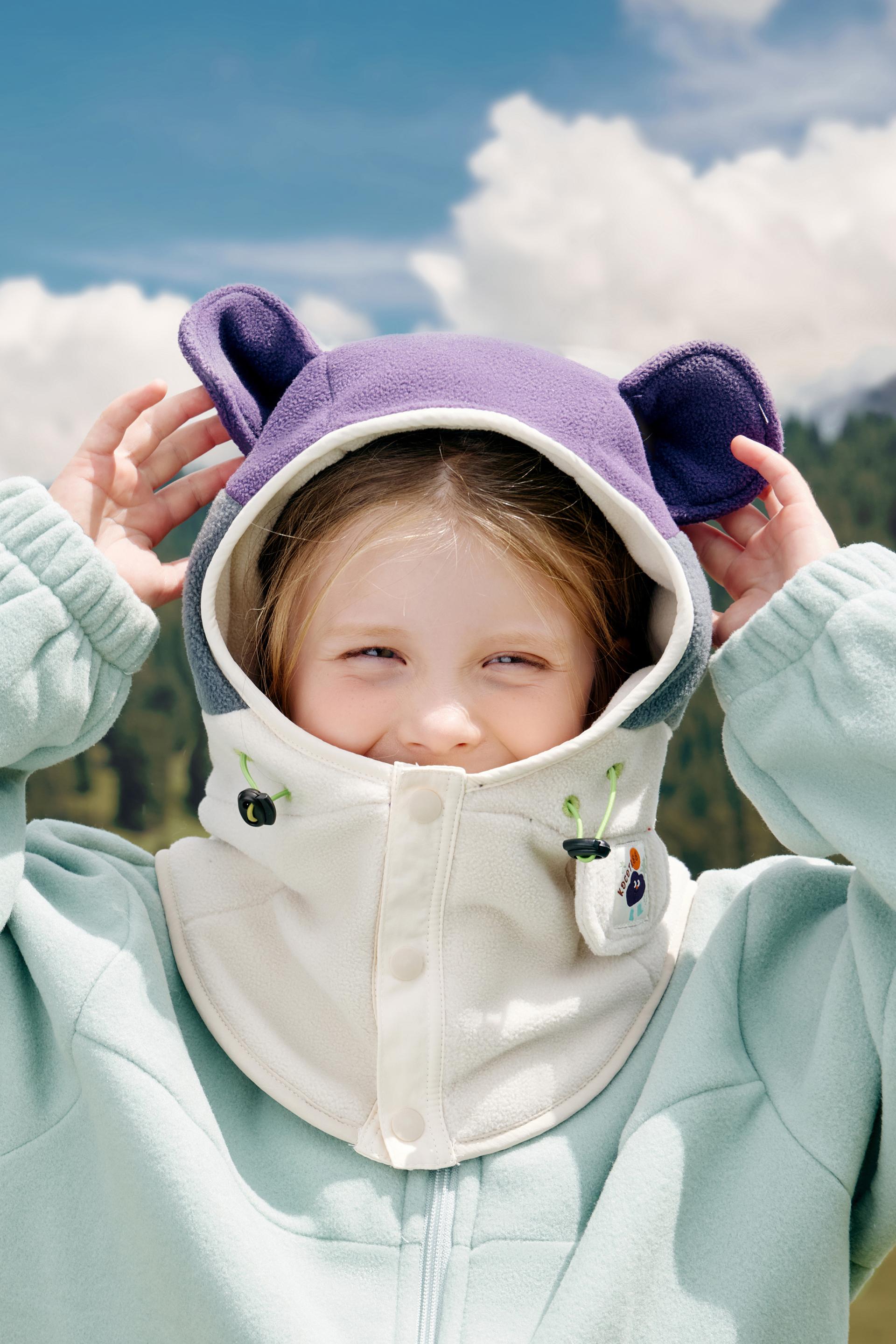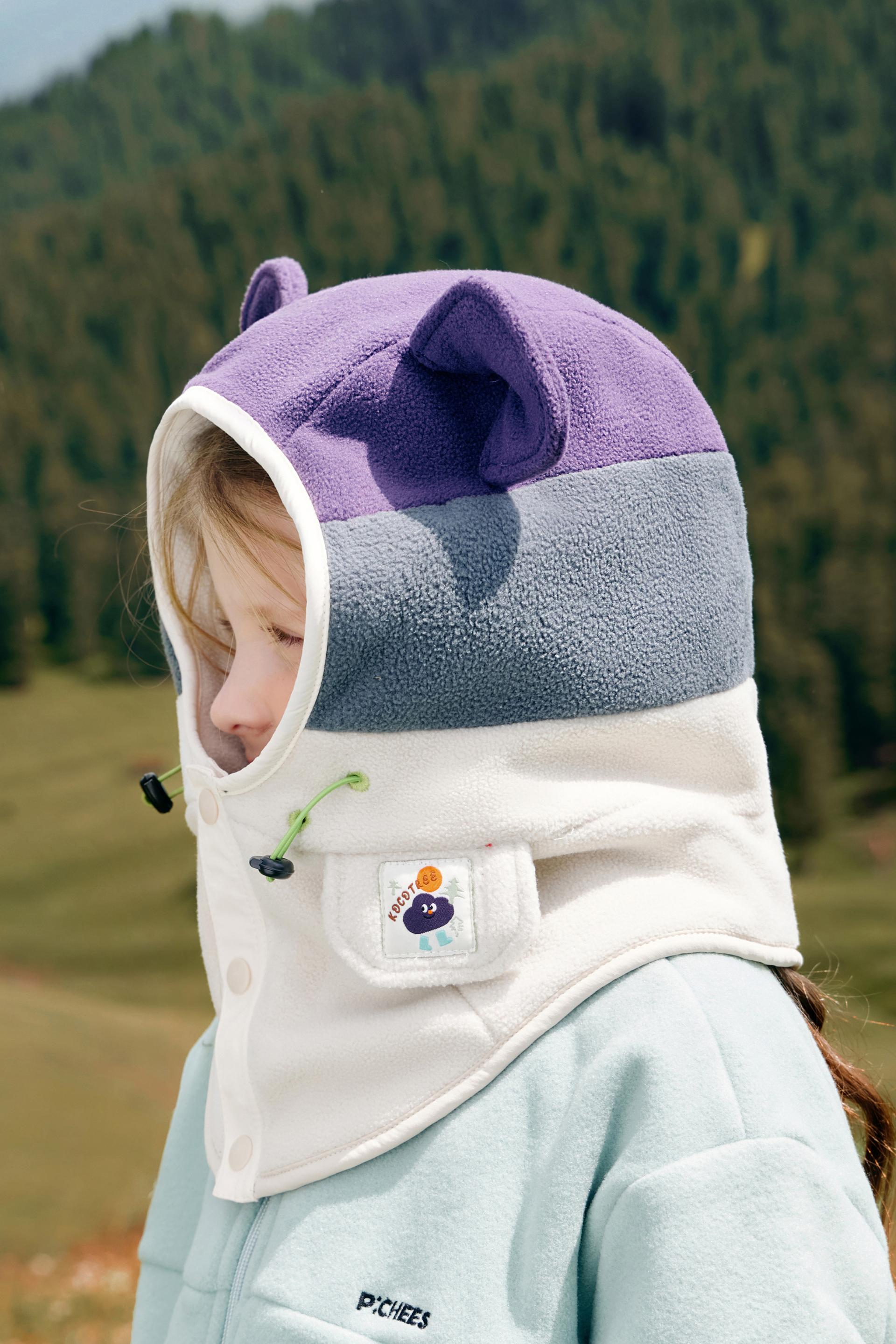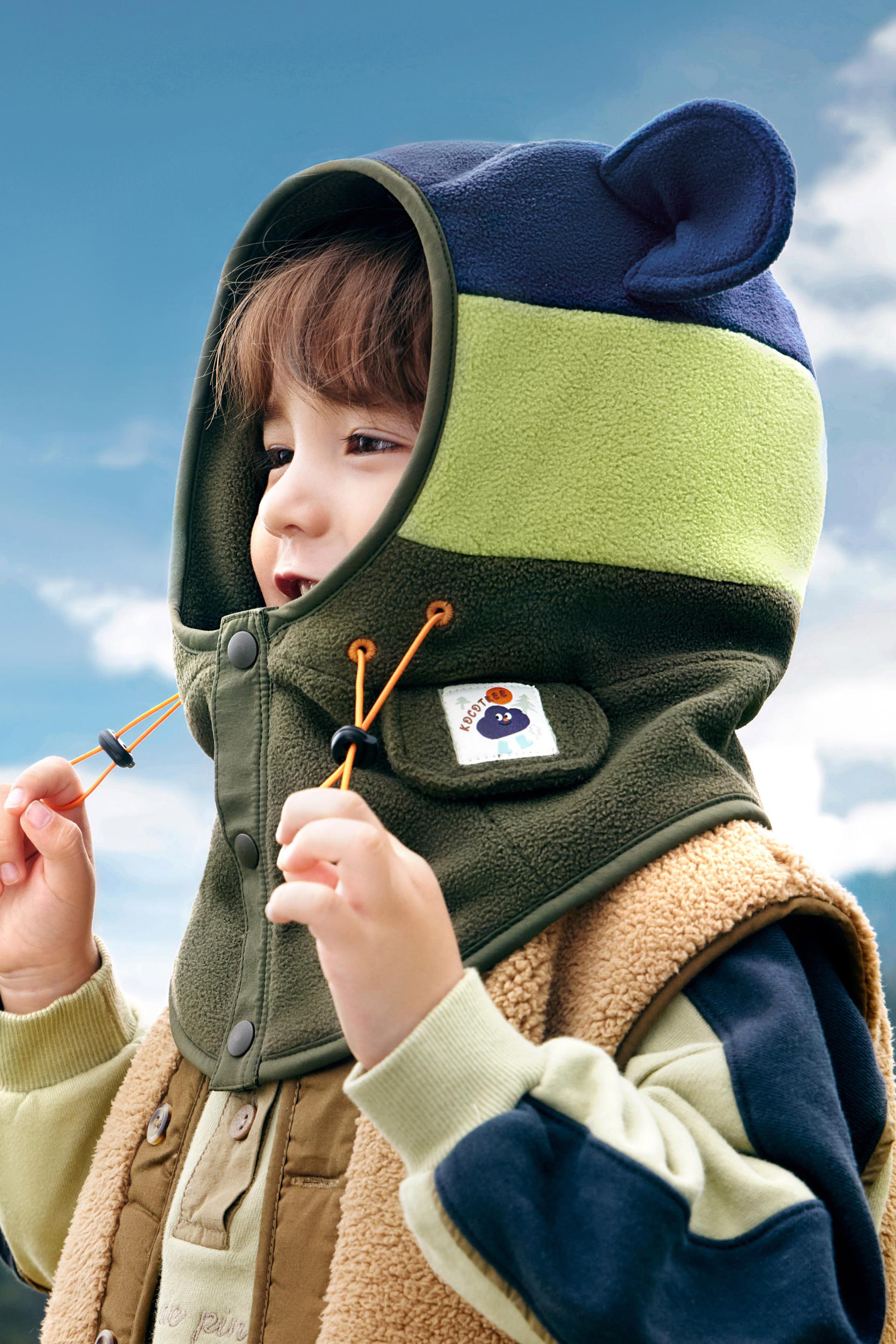 Kocotree Integrated Cap is a children's warm cap suitable for various cold conditions. It is equipped with an innovative KK raw yarn system, making the yarn self-heating, antistatic, anti-pilling, and antibacterial. The aerospace-grade aerogel is processed through heat-melted fiber storage and blended into the fabric to develop innovative KK AIR velvet that can lock in temperature, making the raw yarn self-heating. The velvet absorbs and transforms the sunlight and human body-emitted far infrared rays into thermal energy, enhancing the light thermal storage by 5.7°C and the far-infrared heating by 2.2°C to provide constant warmth for children. In addition, this cap allows for moisture absorption to heat up, converting moisture into thermal energy and improving heat generation by 1.1°C. Three layers of thermal technologies keep children warm regardless of wet-cold southern winters or dry-cold northern winters.
