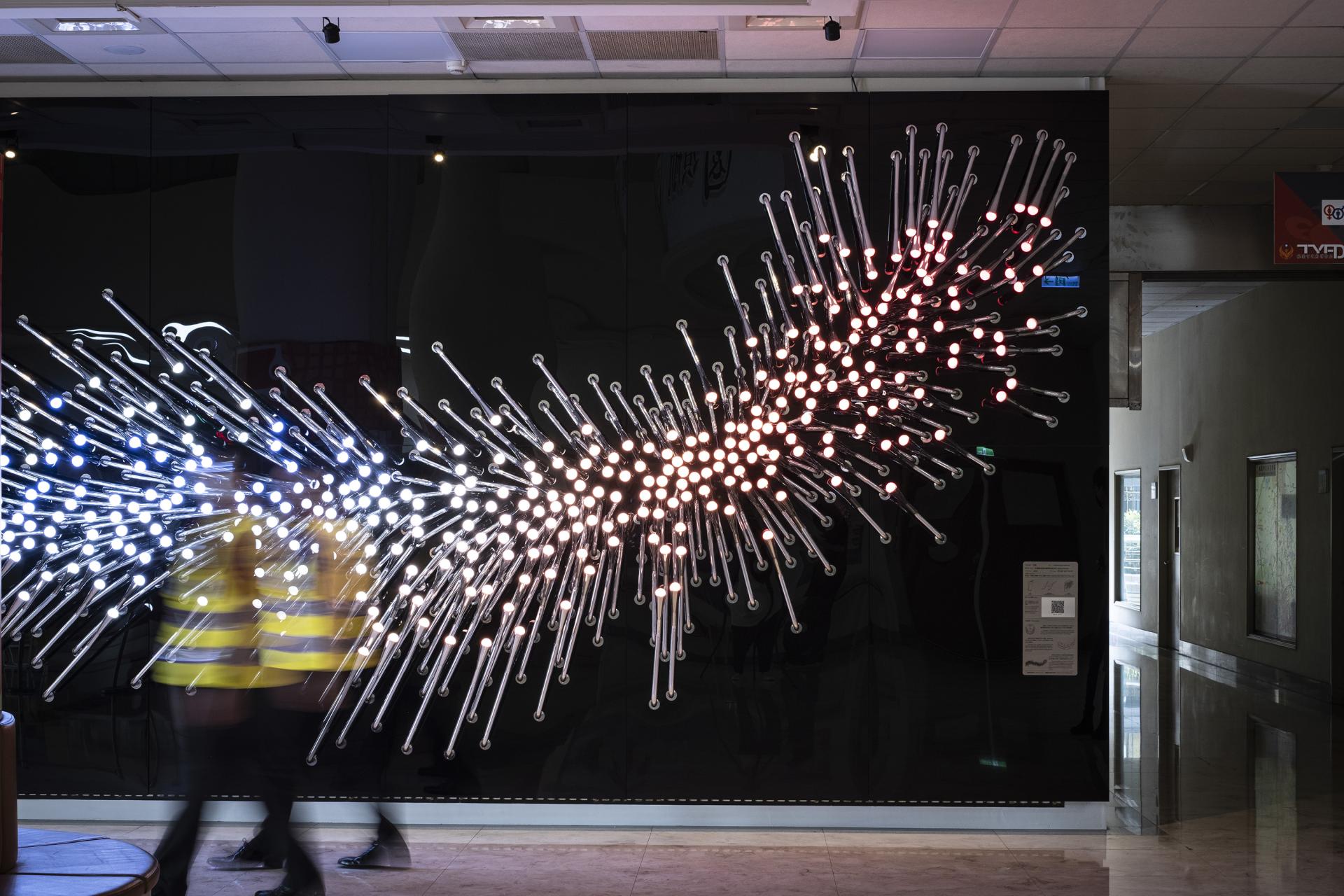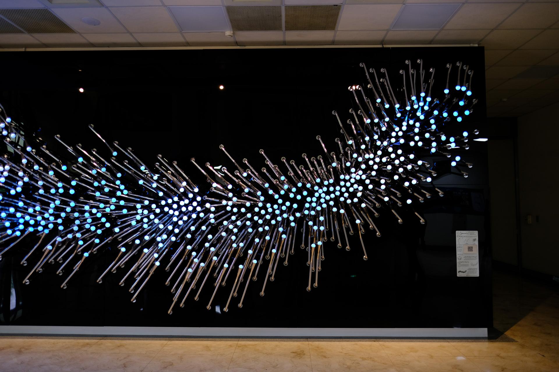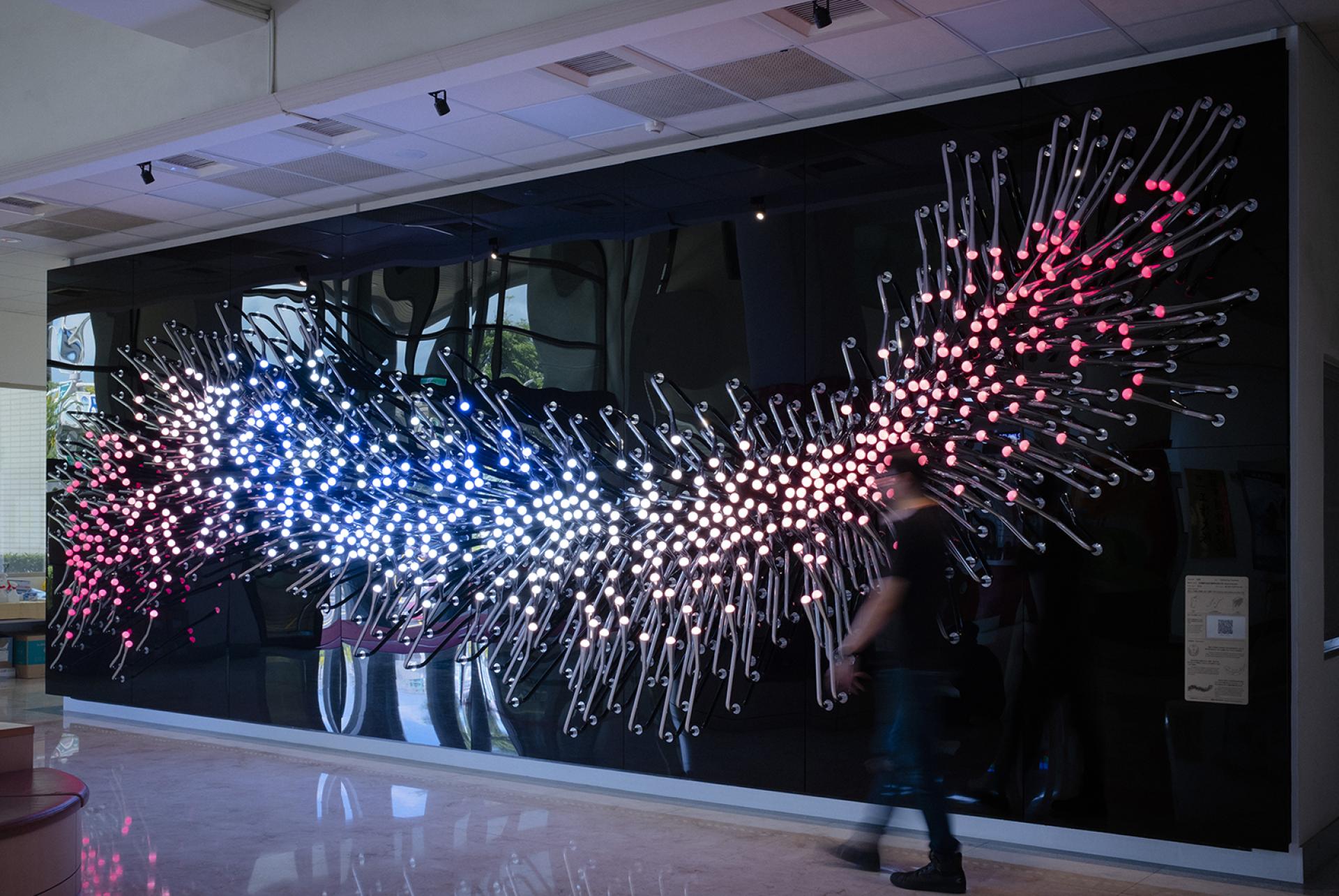 Bringing together this meaning, the piece is not only located in the lobby of a government agency but also allows the public to interact with the lighting colors and dynamics at any time by scanning a QR code with their mobile devices.