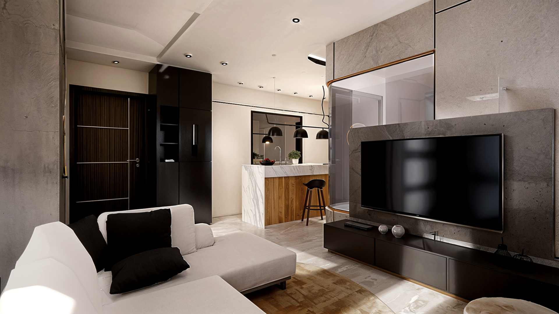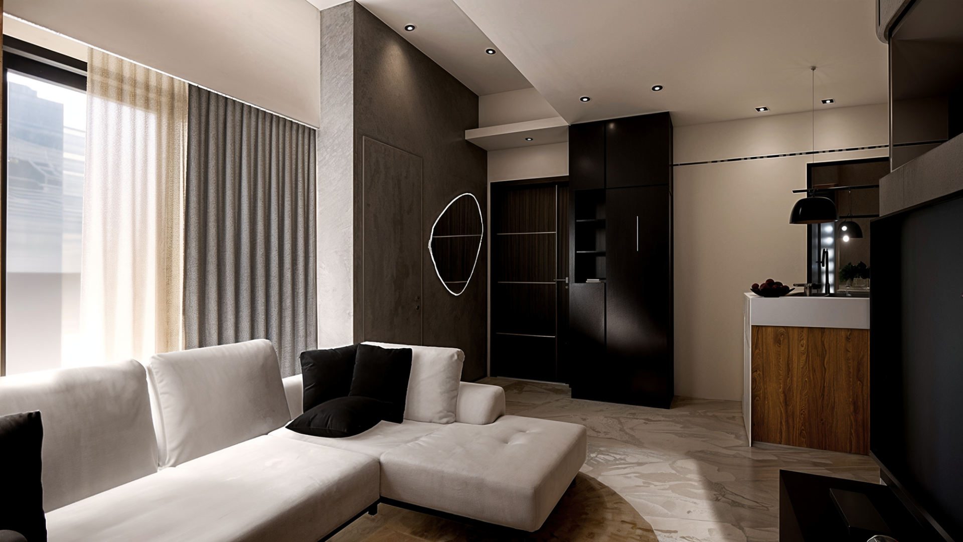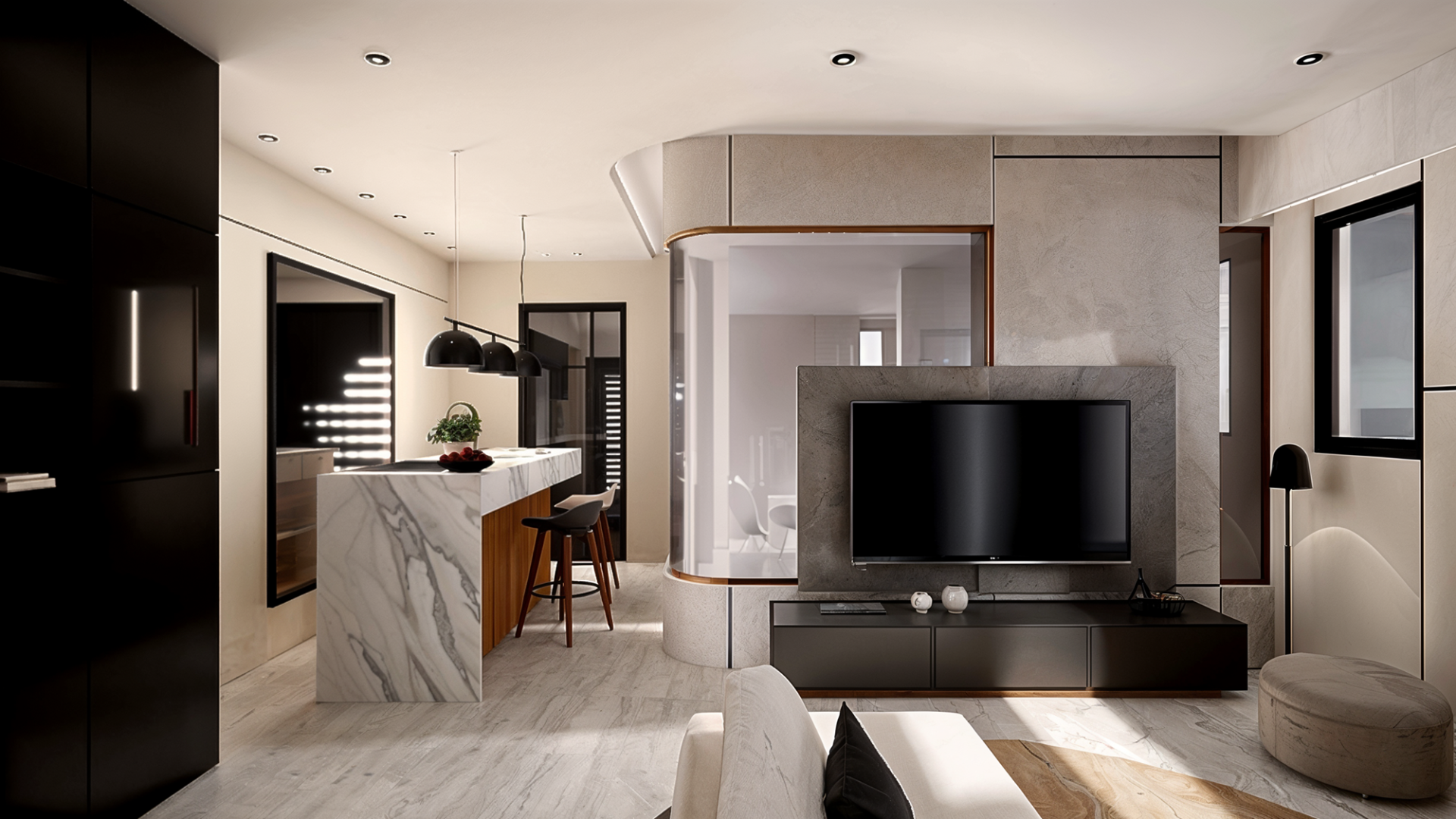 Upon entering the interior living space, one is greeted by an impressive 3.6-meter ceiling height that creates an expansive and airy atmosphere. This thoughtful design feature not only enhances the open view but establishes a clear distinction between public and private areas, promoting a harmonious flow for residents. The choice of modern materials, characterized by high transparency and reflectivity, imbues the space with an elegant and contemporary ambiance.