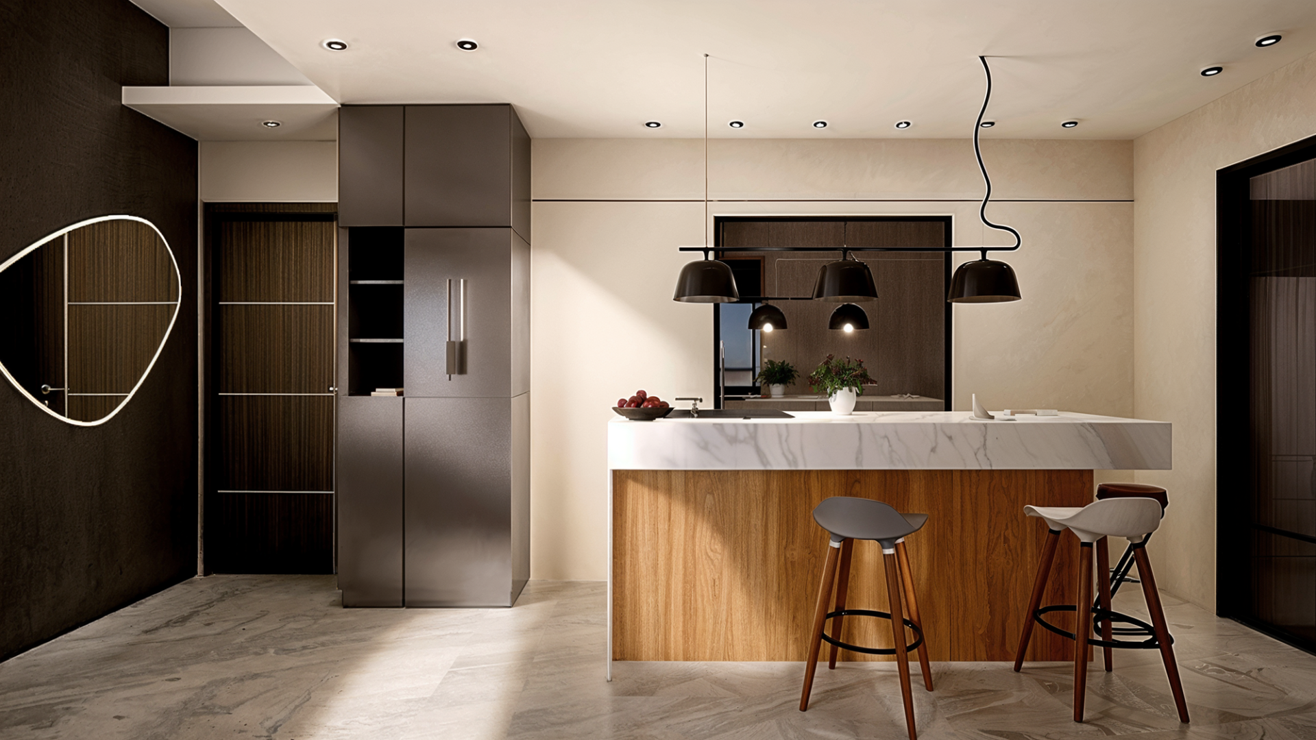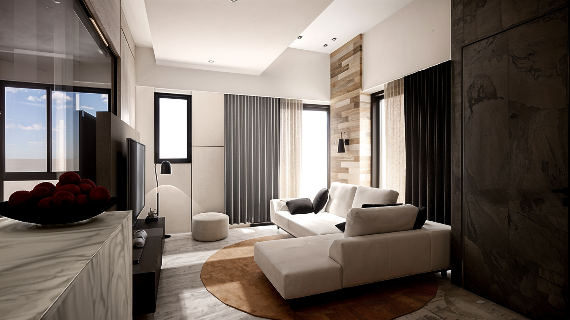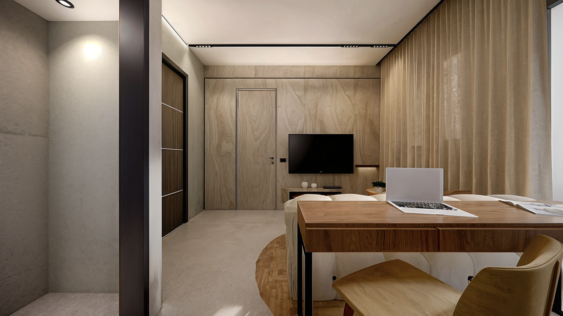 Upon entering the interior living space, one is greeted by an impressive 3.6-meter ceiling height that creates an expansive and airy atmosphere. This thoughtful design feature not only enhances the open view but establishes a clear distinction between public and private areas, promoting a harmonious flow for residents. The choice of modern materials, characterized by high transparency and reflectivity, imbues the space with an elegant and contemporary ambiance.