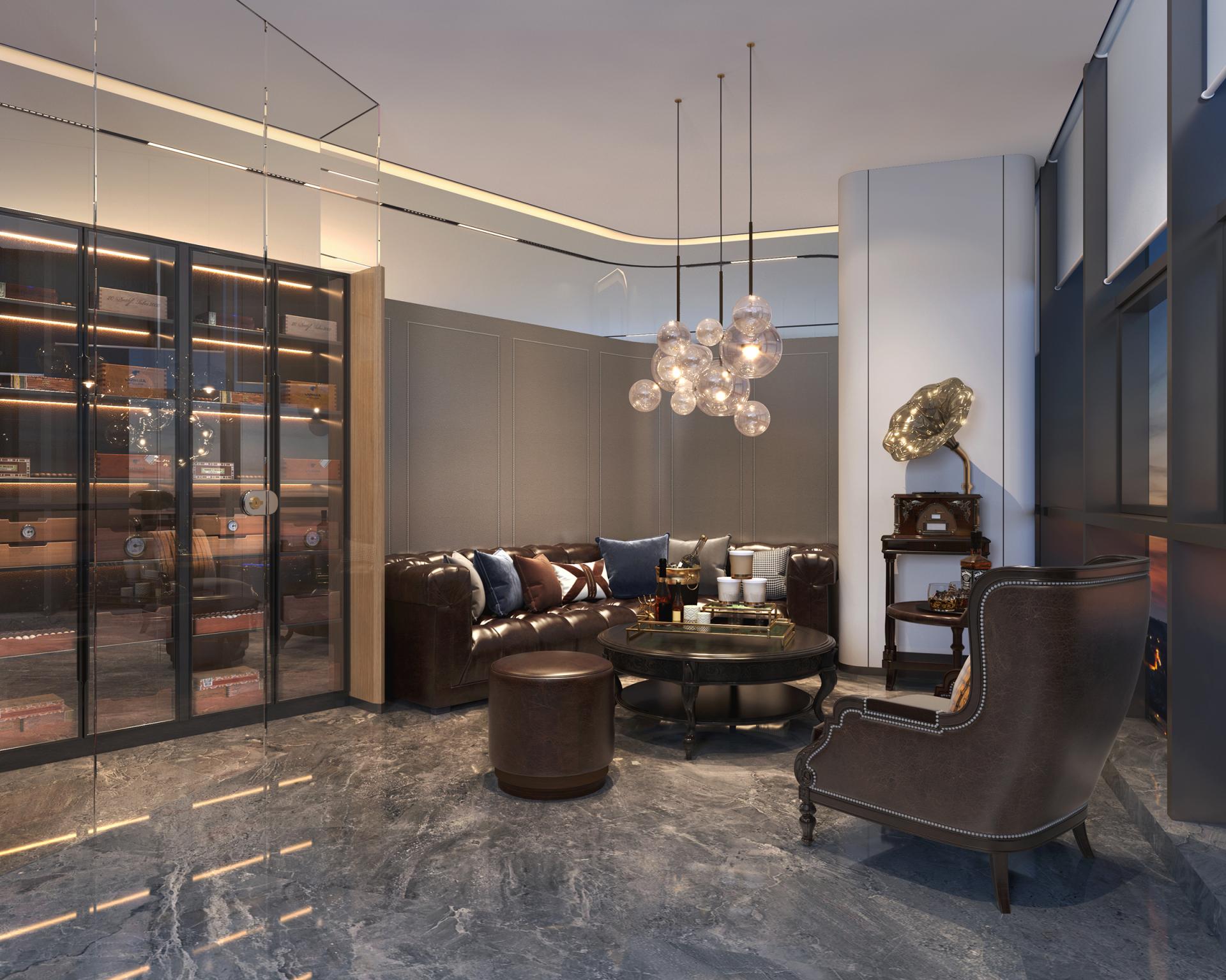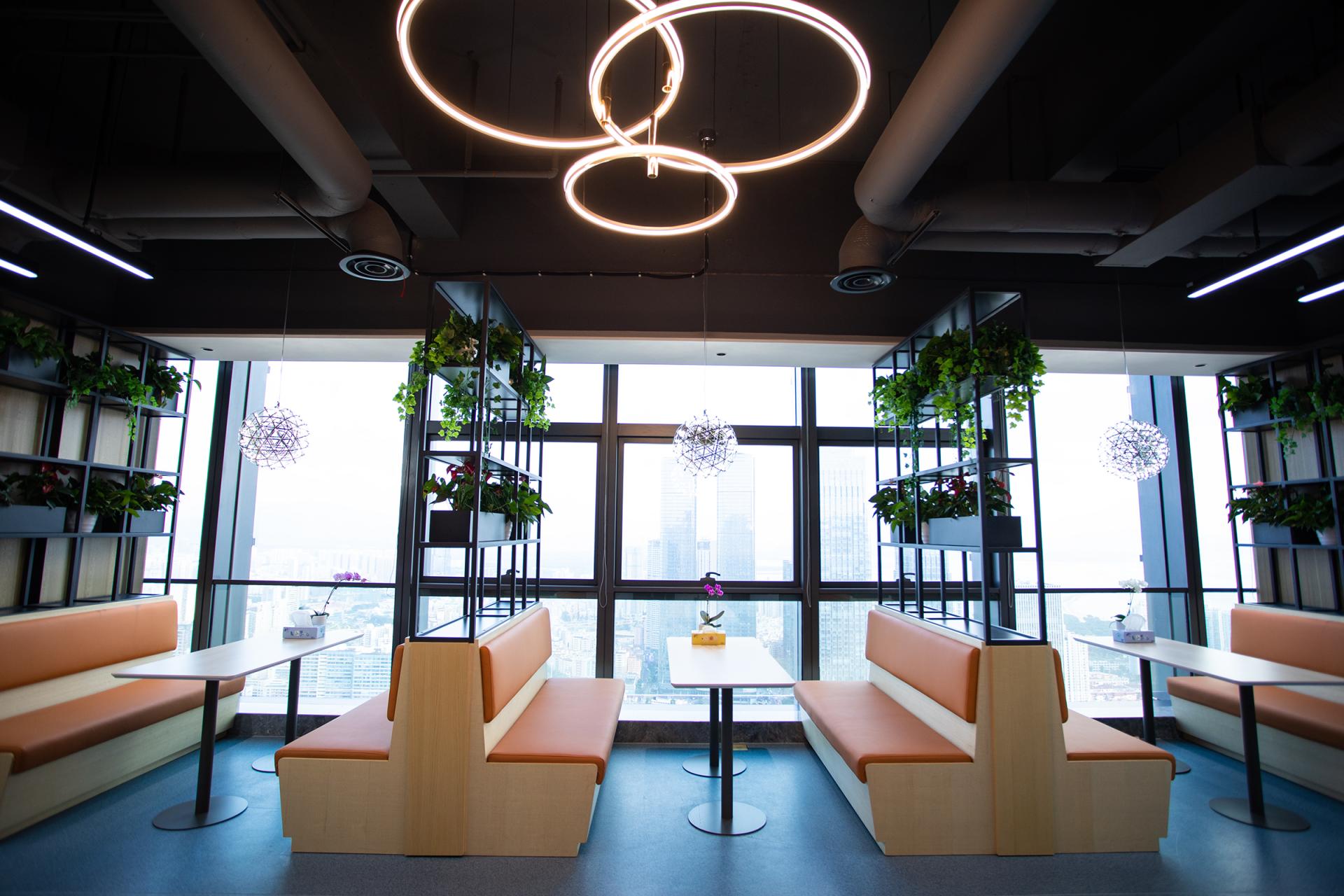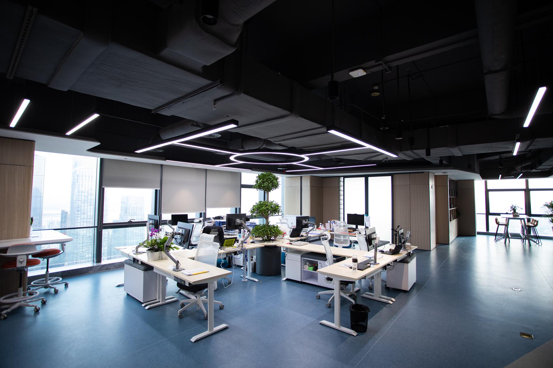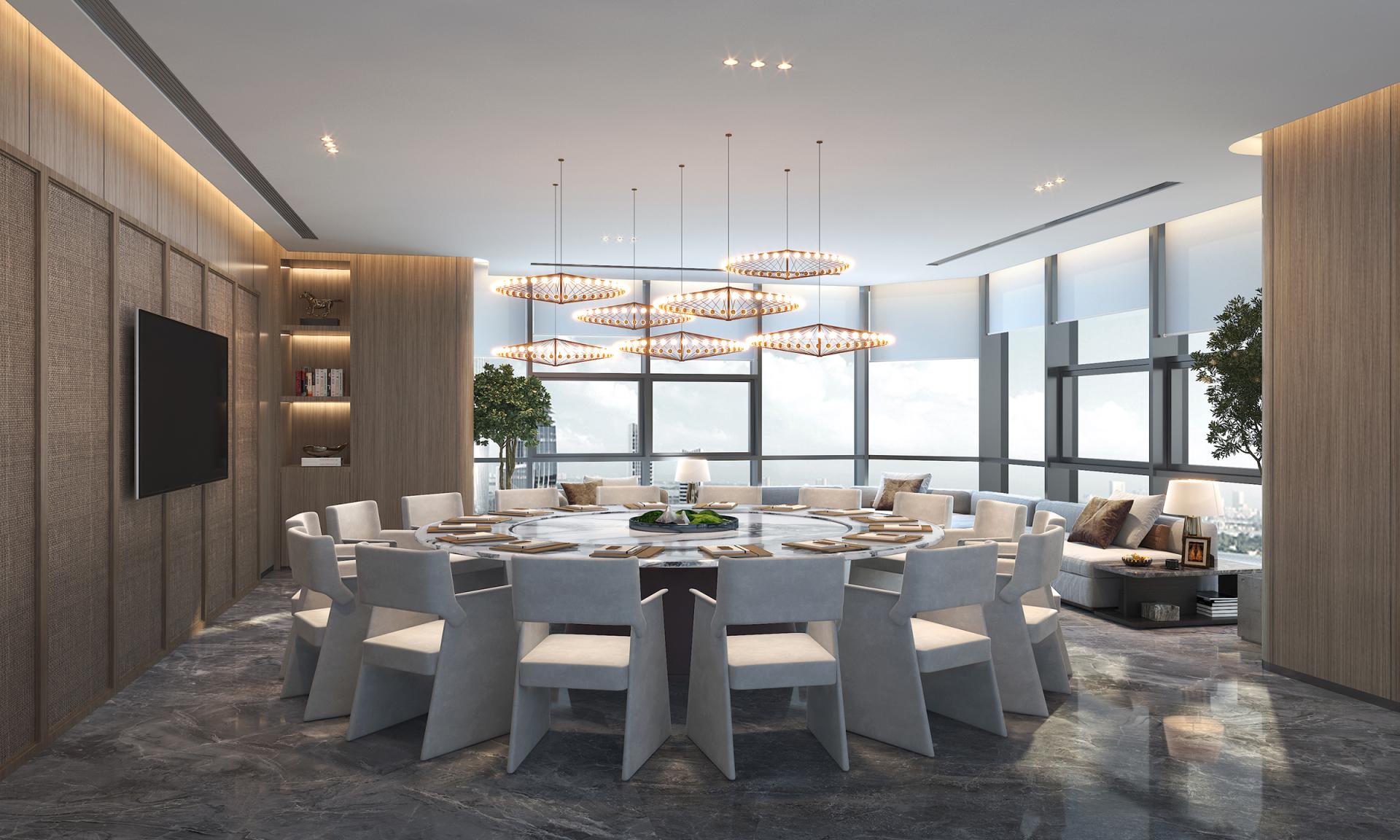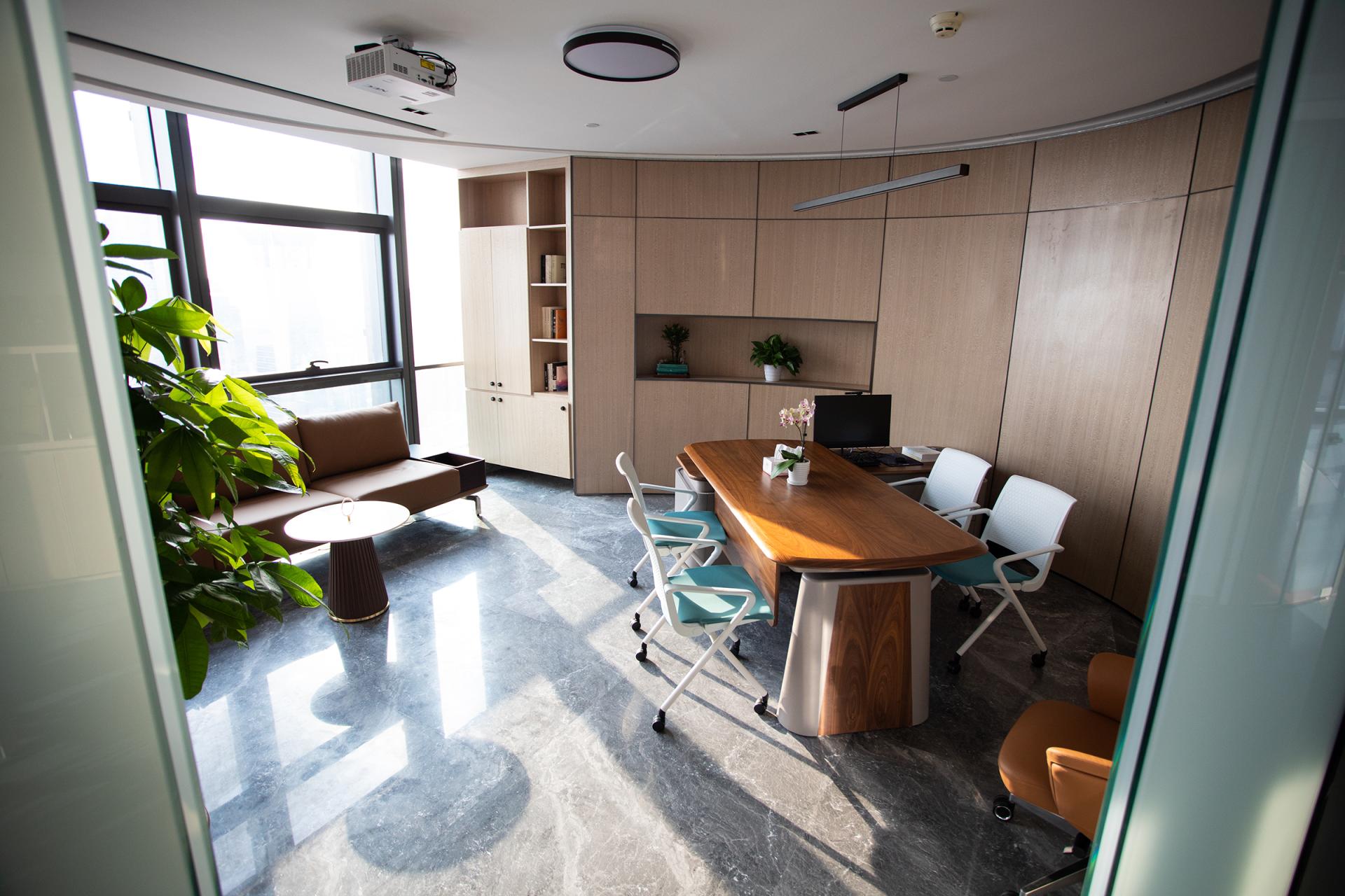 Entering the lobby, what catches the eye is a unique and stylish viewing platform for living alone. As the gold attraction of the project, the white color scheme is the main tone, paired with yellow circular seats, creating a vivid color contrast and becoming the visual focus. It is both simple and lively. The glass staircase on the right cleverly guides the line of sight through a practical and beautiful layout, not only adding transparency to the space but also making it appear more spacious. The LED display screen above the lobby, combined with a white metal expansion net, not only serves as a decorative element but also enhances the interactivity of the space. The walls and ceilings, which still maintain a white tone, complement the marble texture of the ground, creating an elegant and comfortable atmosphere. Entering the right-hand side of the lobby and arriving at the conference space, in order to ensure the smooth progress of the meeting and provide sufficient communication space for in-depth discussions, it adopts a modern and simple design style, making the space appear open and bright, creating a comfortable, soft, and fresh conference environment for users. Through carefully arranged rectangular conference tables and chairs, combined with uniquely designed carpets, the entire space environment is filled with warmth and harmony. Through these design highlights, a practical and aesthetically pleasing conference environment has been jointly created, meeting the dual needs of functionality and aesthetics in modern conferences. Adjacent to the conference room is the public office space, a highly modern office scene. In order to embody a unique modern aesthetic, the entire office adopts a simple and efficient design, using soft and bright lighting to emanate from geometric lamps hanging from the ceiling, expressing a practical facility and a focused working atmosphere, creating a space that is both conducive to employee work and can stimulate creativity. This kind of office environment undoubtedly improves employees' work efficiency and satisfaction, and is an important manifestation of the enterprise's pursuit of efficient development.