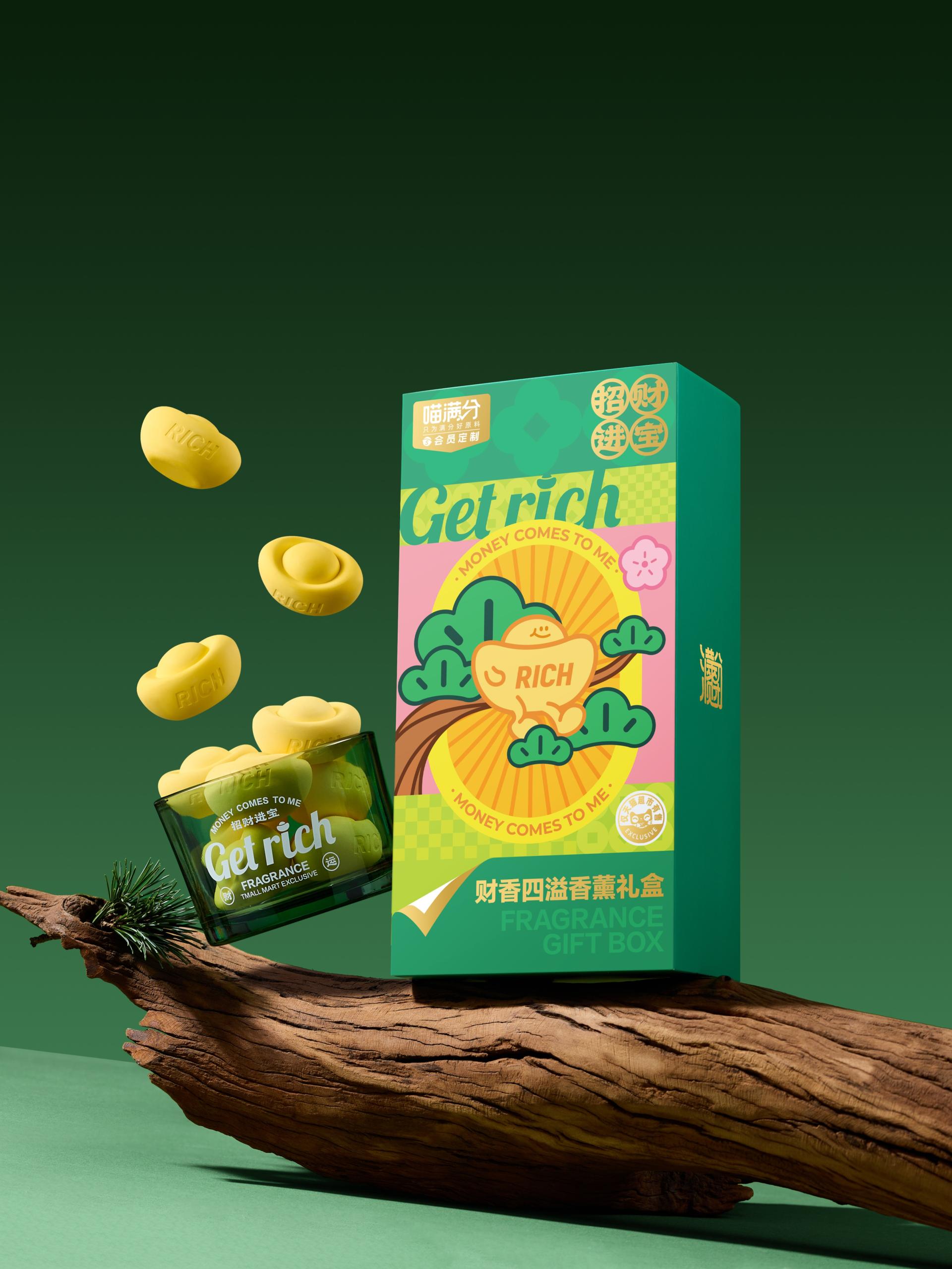 In the present climate of extensive socio-economic challenges, the demand for emotional solace and tailored experiences among individuals has intensified dramatically. In response, Miaomanfen is dedicated to moving beyond the conventional single-function of traditional aromatherapy products, aiming to deliver a superior level of emotional significance to its users. By incorporating the image of the God of Wealth from traditional Chinese culture, Miaomanfen has developed the design concept of “Overflowing Wealth”. This concept reinterprets the traditional visual representation of the God of Wealth into a new sensory experience centered on olfaction, utilizing aromatherapy as a medium to immerse users in a distinctive ambiance characterized by the scent of prosperity, thus delivering an unparalleled immersive experience.