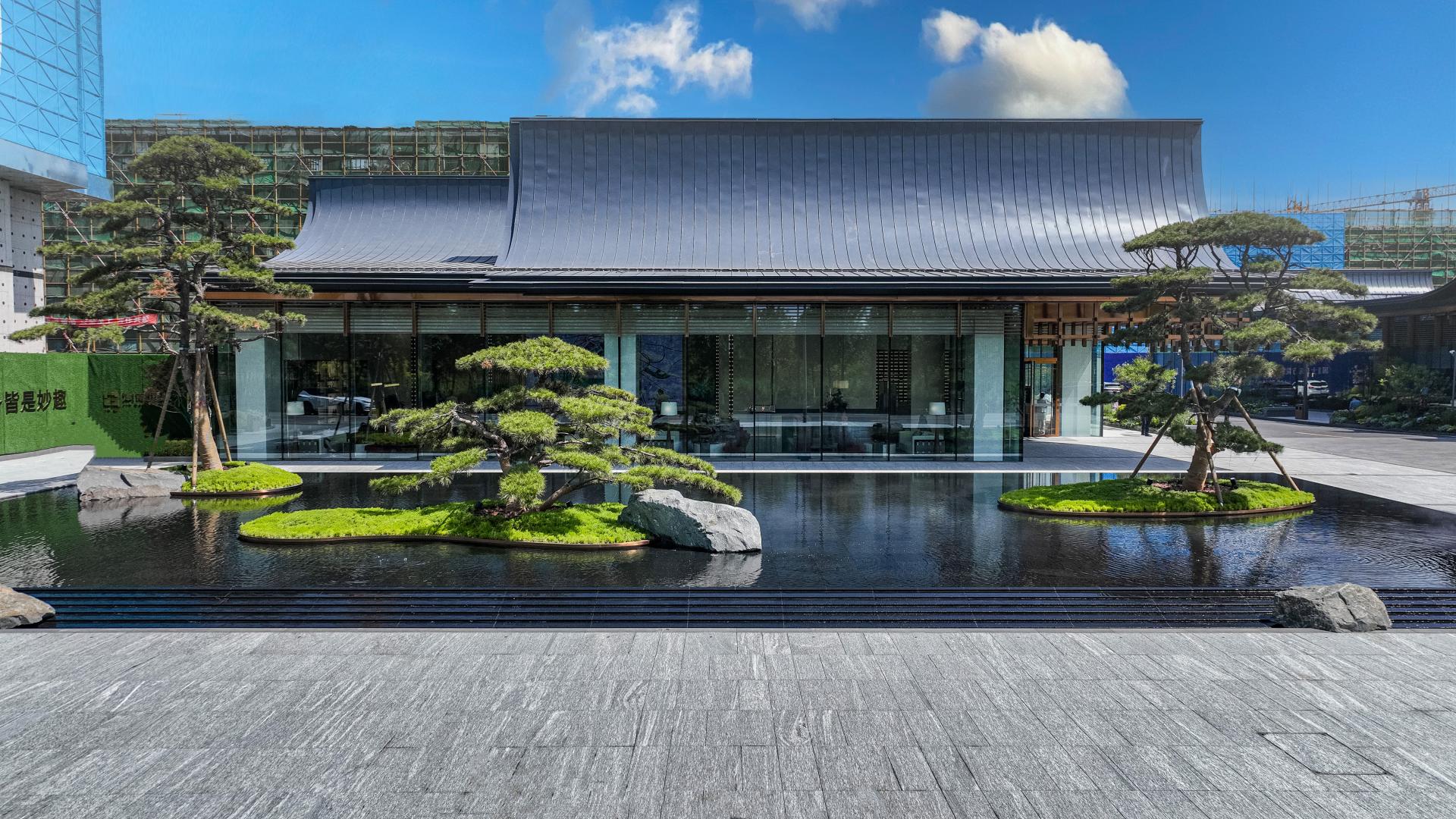 Joyous Villa is located in the center of the core residential area of Tianjin Haihe Education Park, surrounded by well-known universities such as Tianda and Nankai. Inheriting from the concept of oriental aesthetics and adhering to modernist craftsmanship, it presents a model aesthetic mansion of "National Style Song Yun, Garden Academy" for Haijiao Garden. The project creates a two-axis cross pattern with sycamore and Begrey Avenue, taking into account the central axis symmetrical aesthetics of the traditional East and the multi-dimensional needs of modern community living. The marketing center and clubhouse are symmetrically arranged, and the invent "s"-shaped roofs are like mountains and books, forming the intention of a floor platform, making the original thick wall light eaves and elegantly condensed. The main facade is a transparent floor-to-ceiling glass curtain wall, which combines modern and classic organically to form a strong visual impact. Joyous Villa takes the oriental elegant and luxury garden as the artistic conception, and prints the scenes of the literati's life, which are luxurious and elegant, presenting a scene space full of life atmosphere.