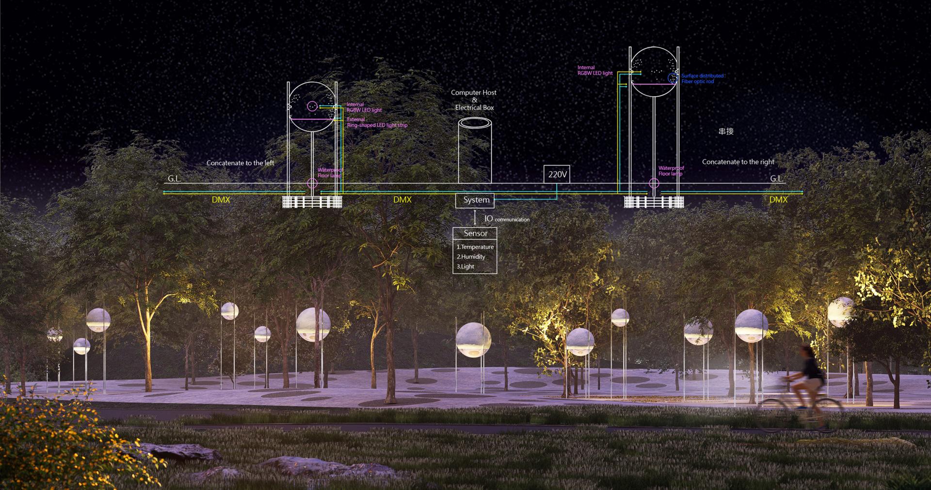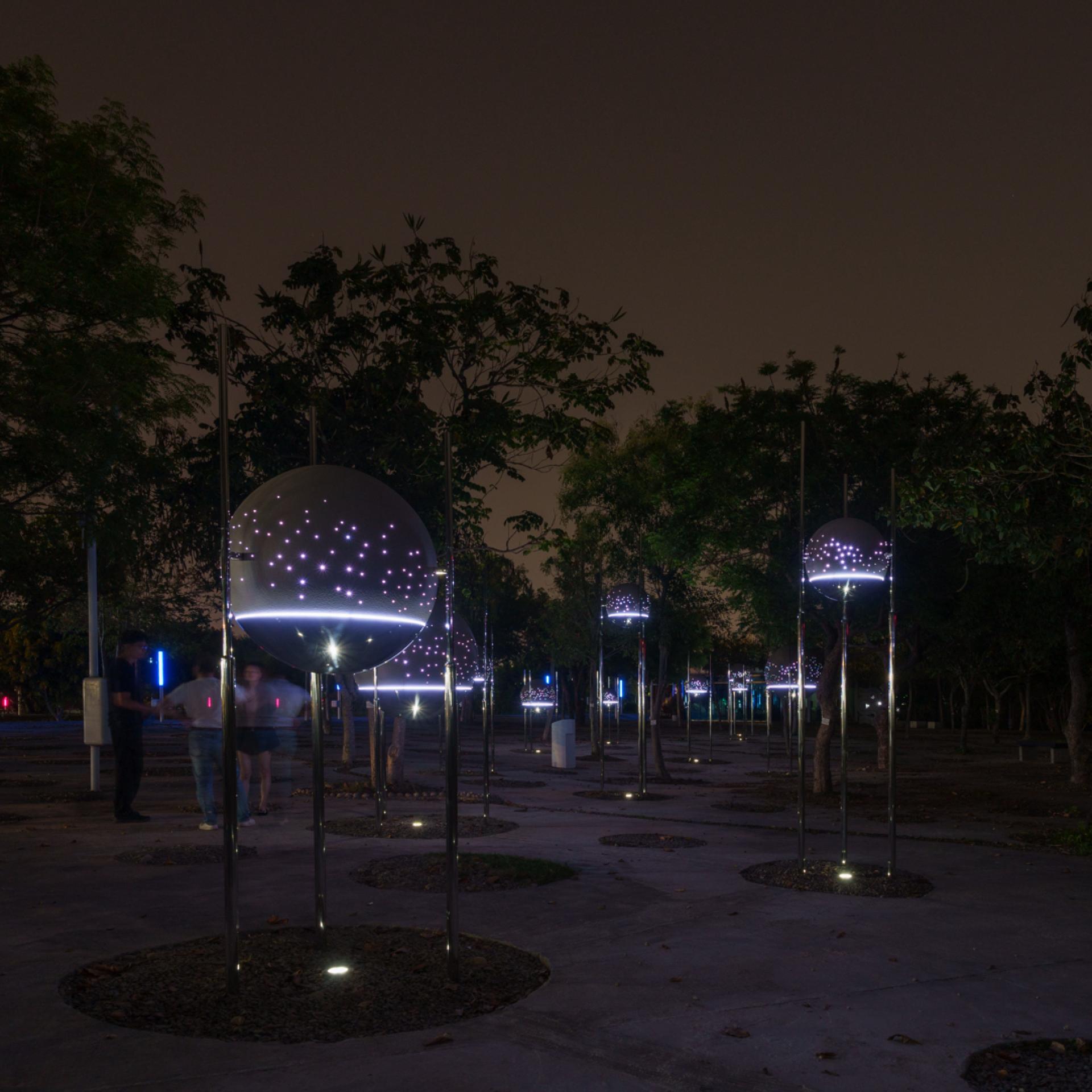 The low light is used in the device to minimize interference with the biological environment, And truly feel the nature and public art talking with you, and become the most beautiful place to wander here.
