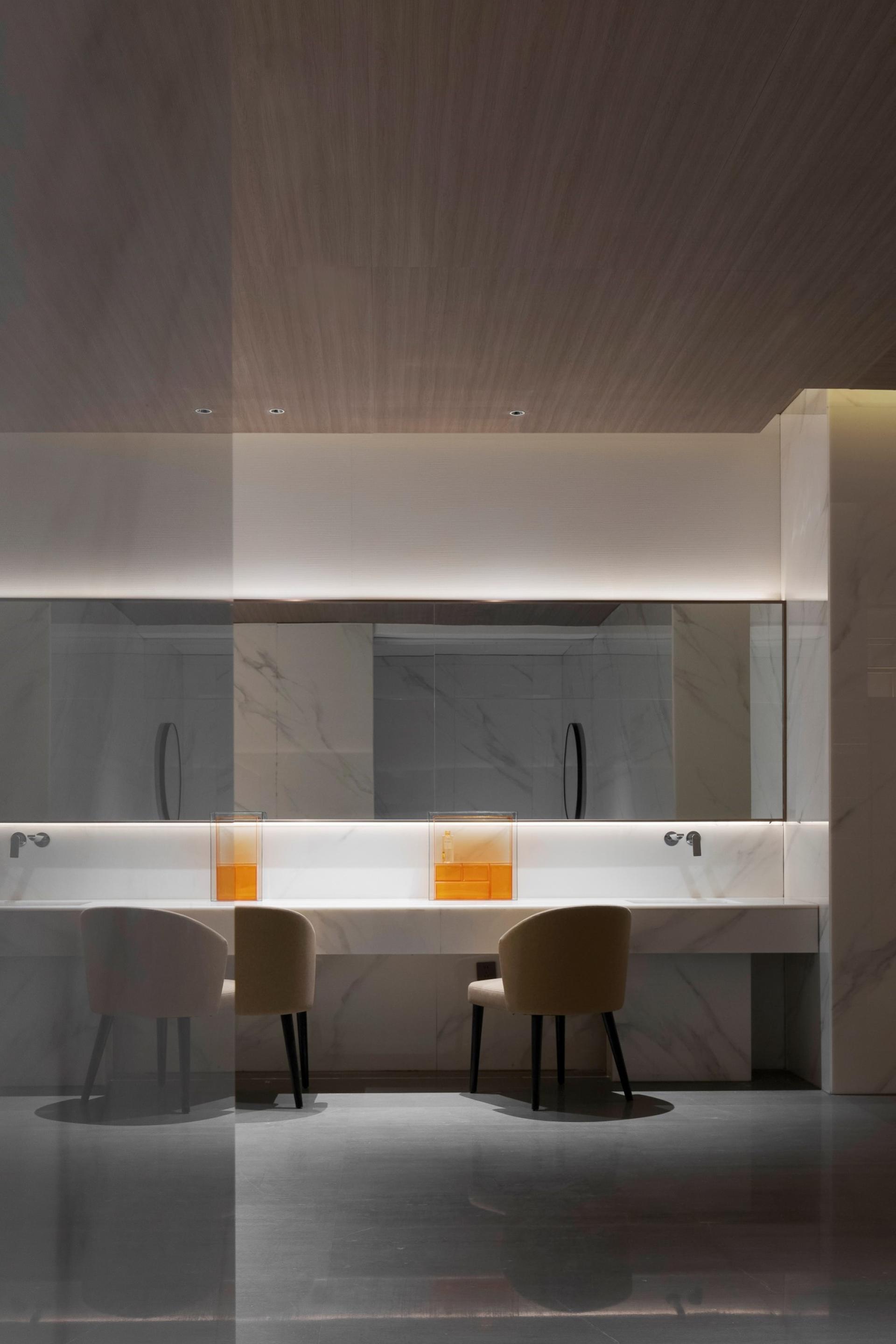 The project covers an area of 11,000 square meters, and the main materials are green jadeite stone, cinderella stone, fish belly white microcrystalline stone, metal laminate, wood veneer, metal, etc. Adhering to the high-quality design concept of "youth, exploration, and simplicity", the entertainment and leisure area boldly adopts the combination of color and geometry, and integrates a large number of minimalist elements to present a free and diversified entertainment scene.
