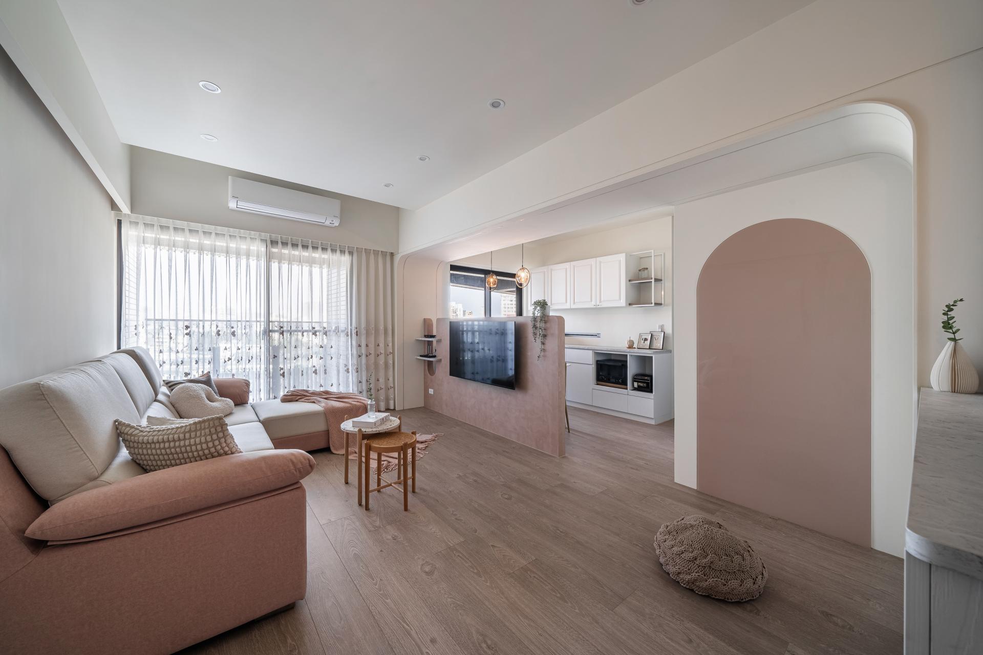 The owner of a 71 square meters residence in Kaohsiung, who lives with parents, wanted a warm atmosphere that is loved across generations in the limited space. The designer focuses on "soft pink and milk tea tone", combining with the warm texture of wood grain, to create a dreamlike and functional modern residence for the family.