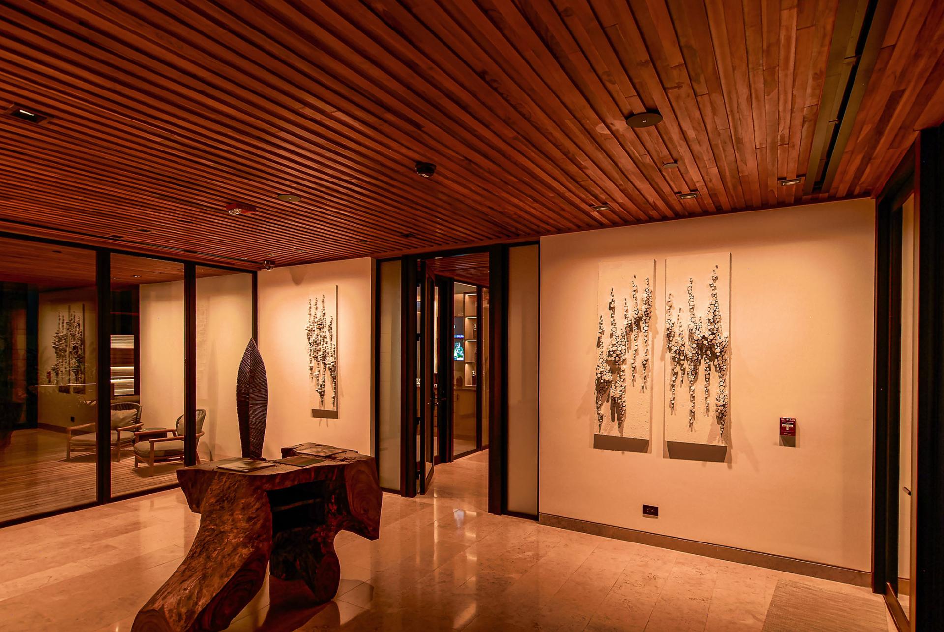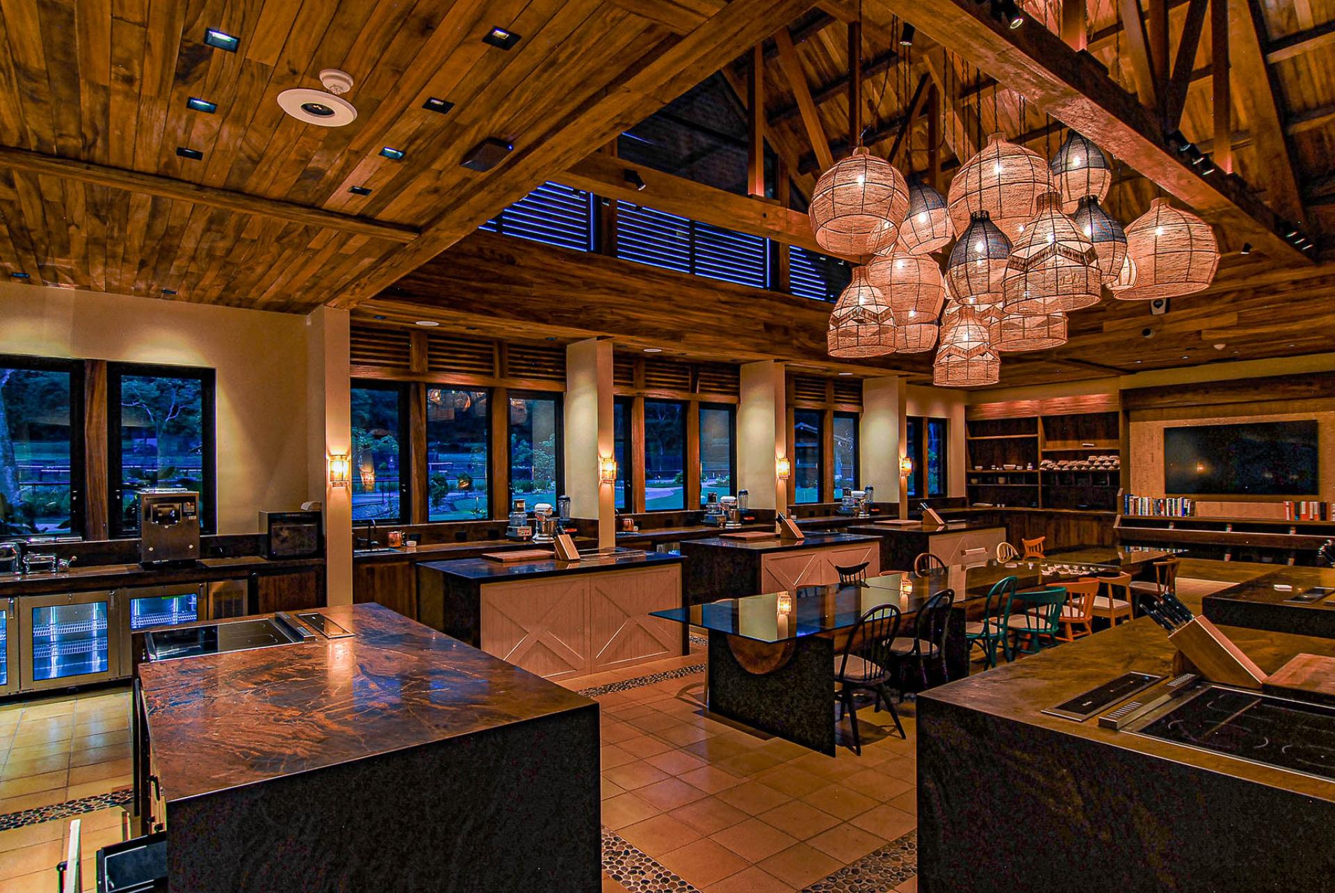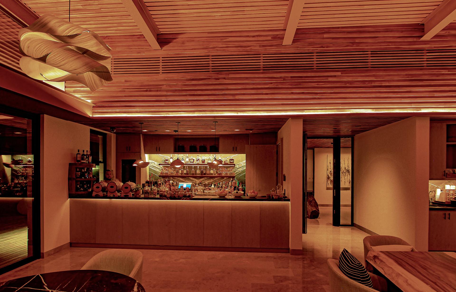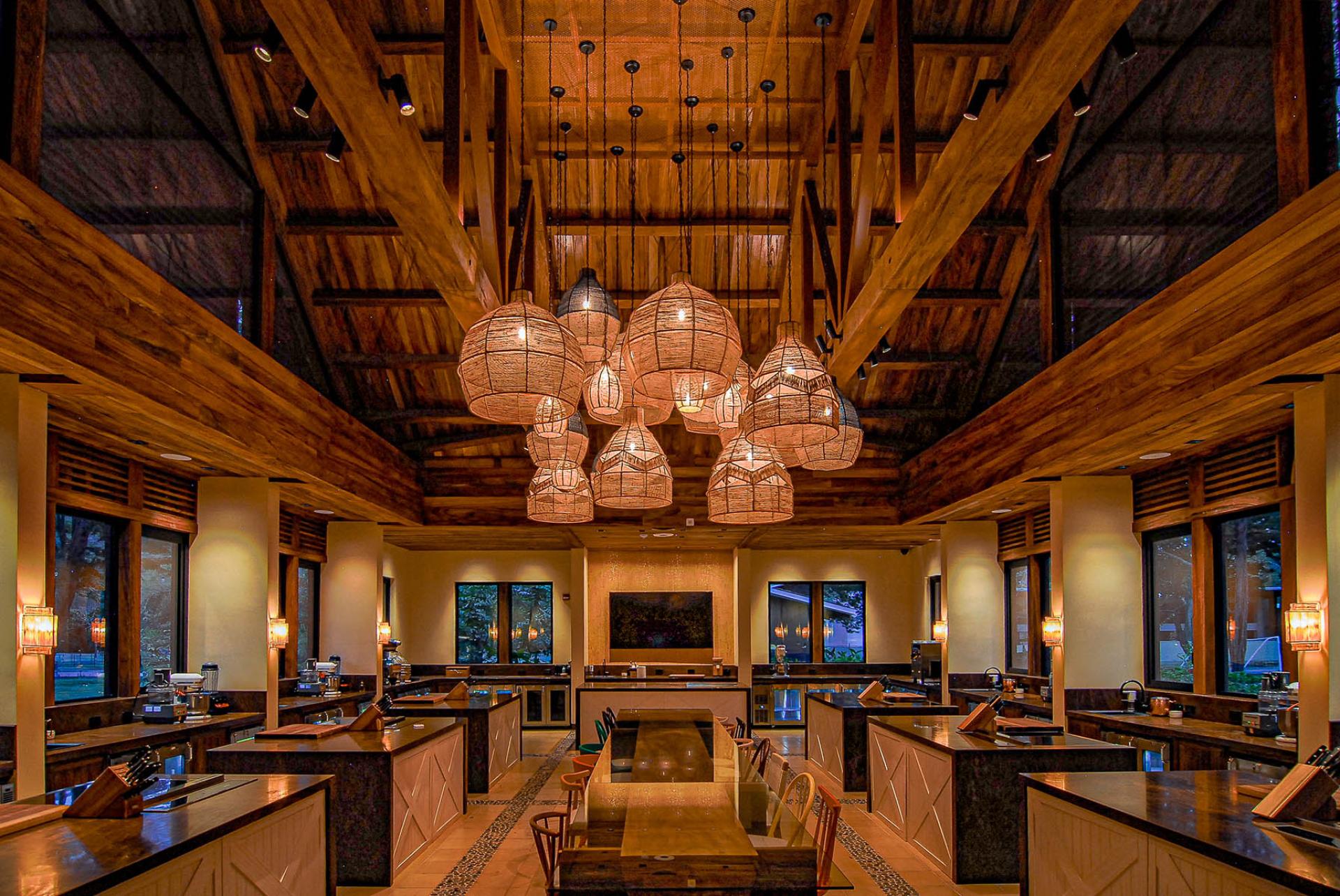 The architectural design goal for the Beach Club and Restaurant was showcasing wood and other natural materials typical of Costa Rica in a contemporary aesthetic. The lighting intent was to use minimal downlighting and create glowing spaces with warm-dim sources that accentuate the natural materials. Spaces used for relaxing, lounging and dining are designed to be warm and comfortable while balancing drama and the perception of light. Timeclock-triggered lighting scenes are programmed with the time of day so carefully set lighting scenes blend seamlessly from day to evening.