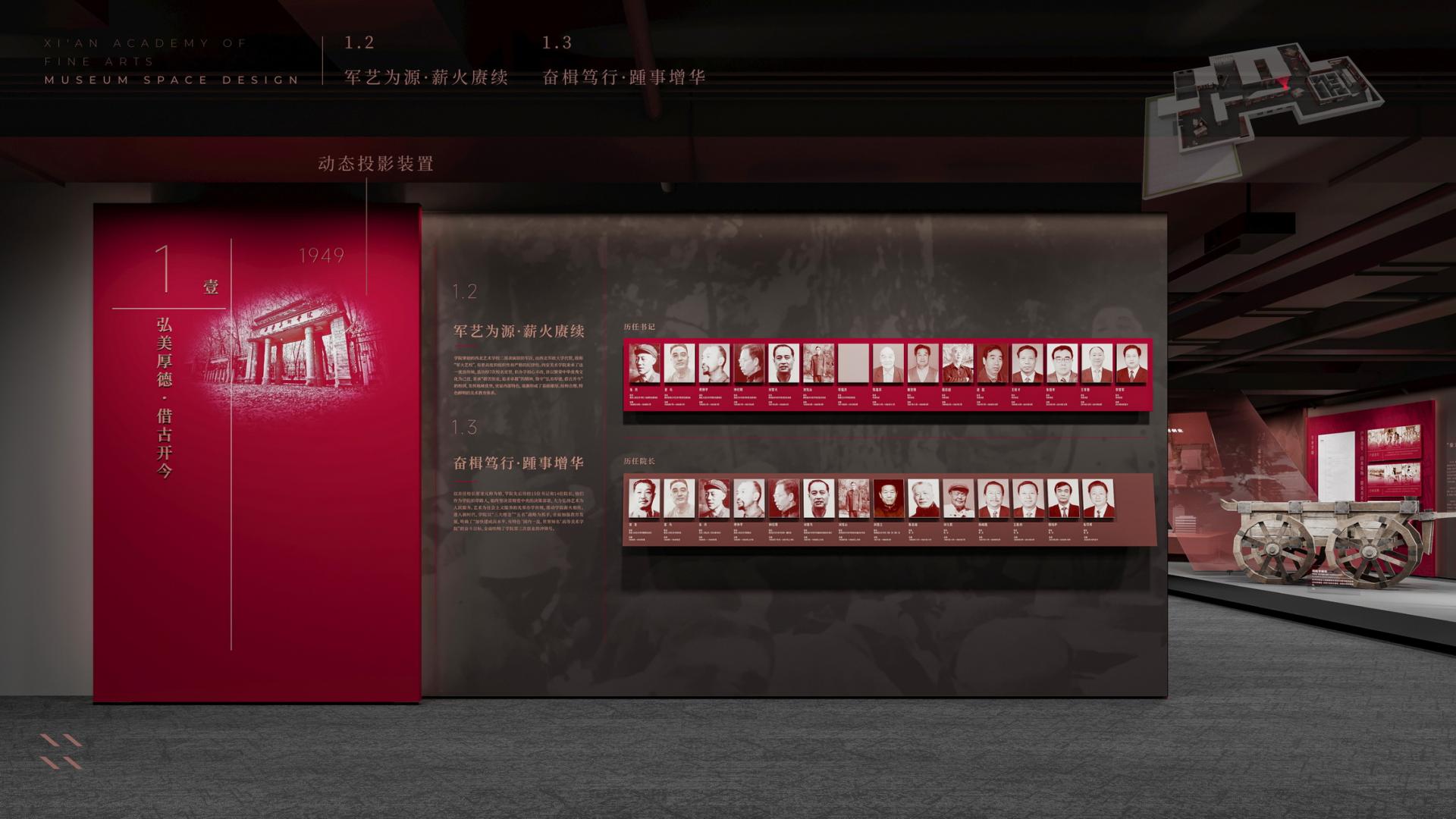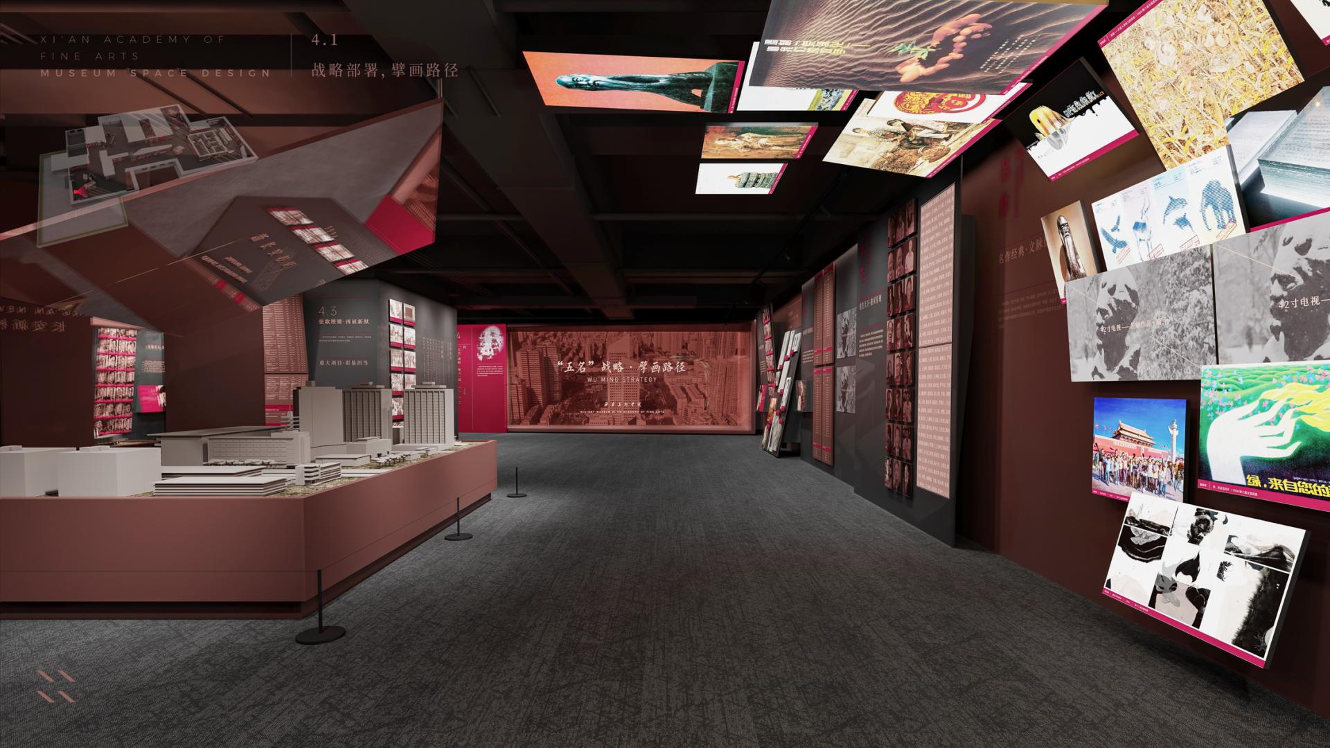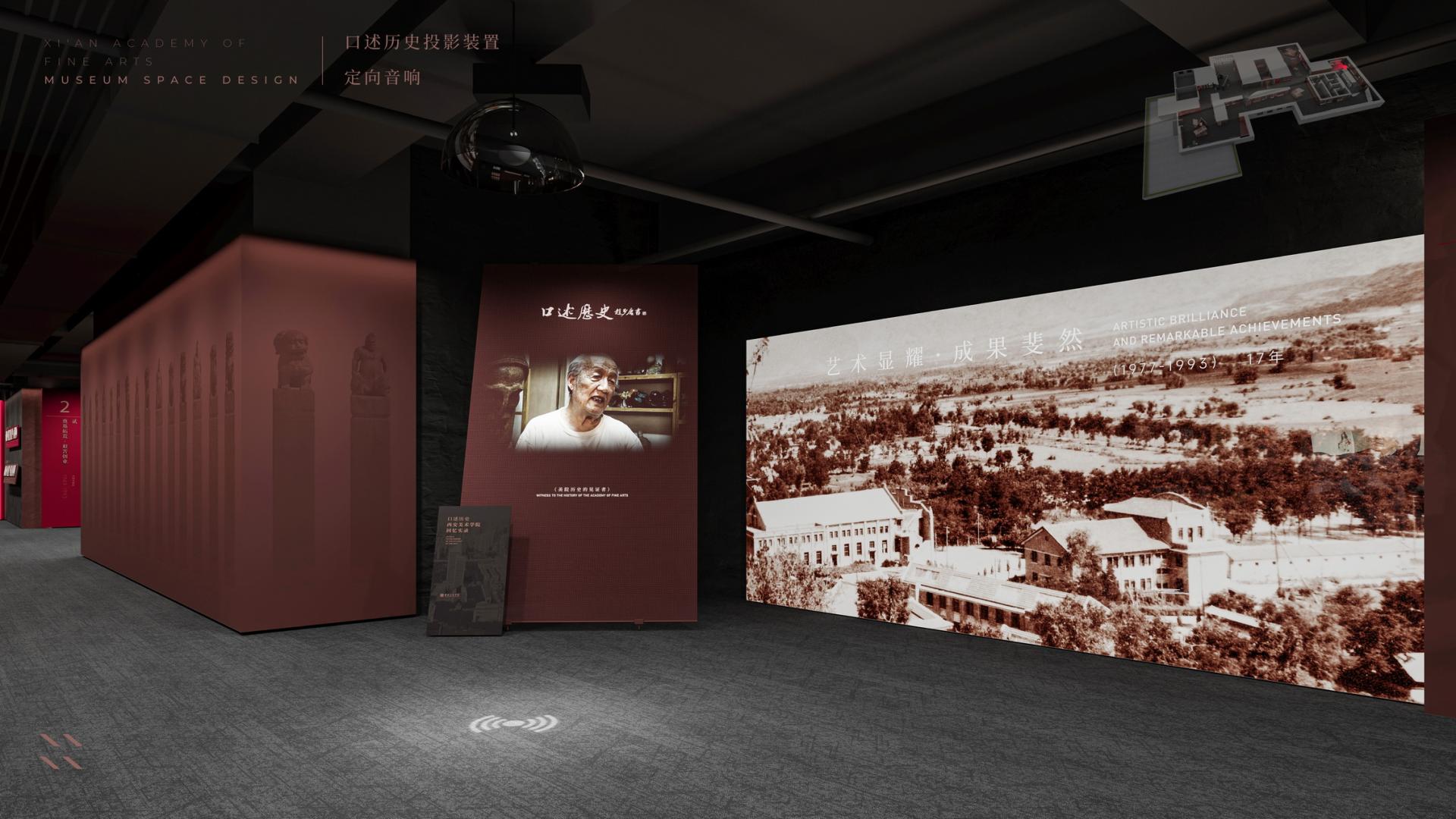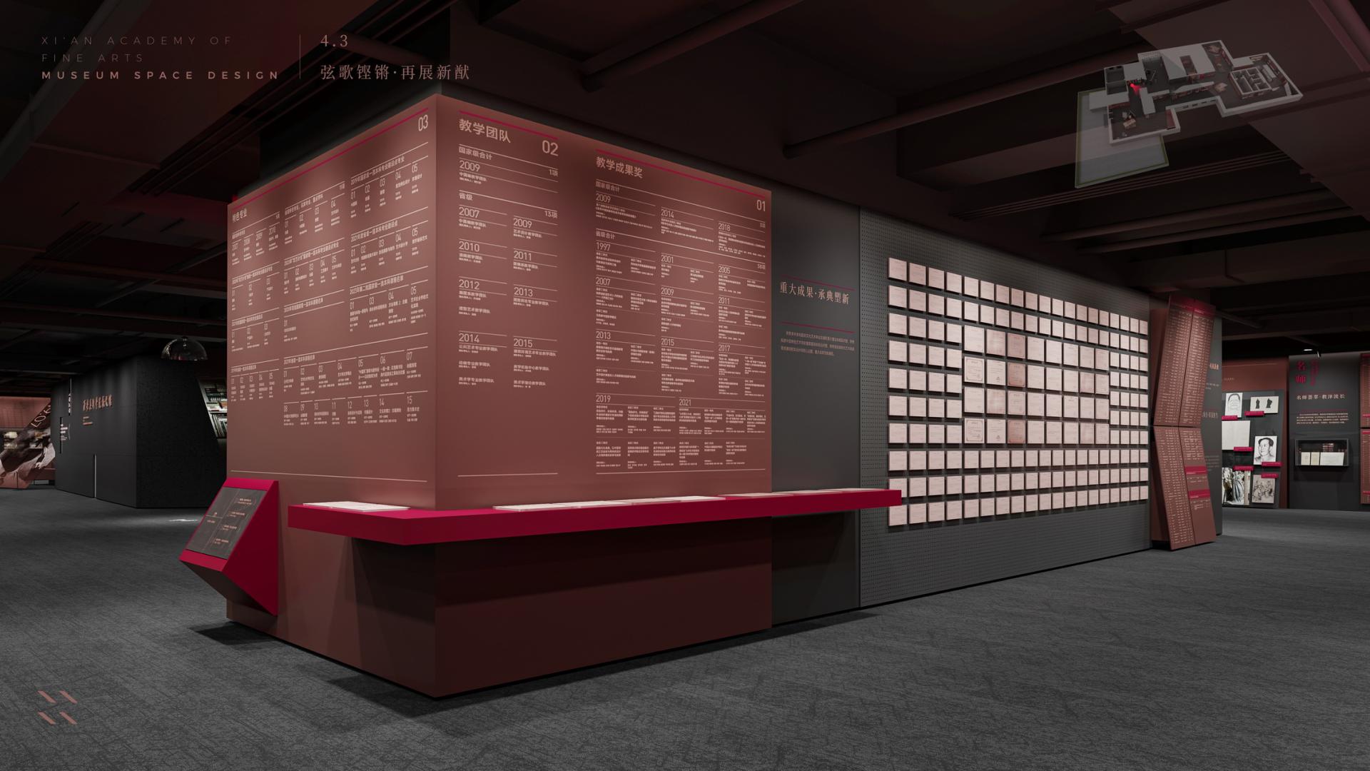 The overall design philosophy of the exhibition is encapsulated in the idea of “Inheriting Tradition, Innovating Xi'an Academy”. The space emphasizes depth, culture, and history, with dark-toned materials on the floors and ceilings to create an immersive, contemplative atmosphere. Semi-transparent structures inspired by paper interweave through the exhibit, providing visual continuity between sections. Interactive digital displays, projections, and multimedia content bring the academy's rich history to life, engaging visitors and allowing them to connect emotionally with key moments in the academy’s past.