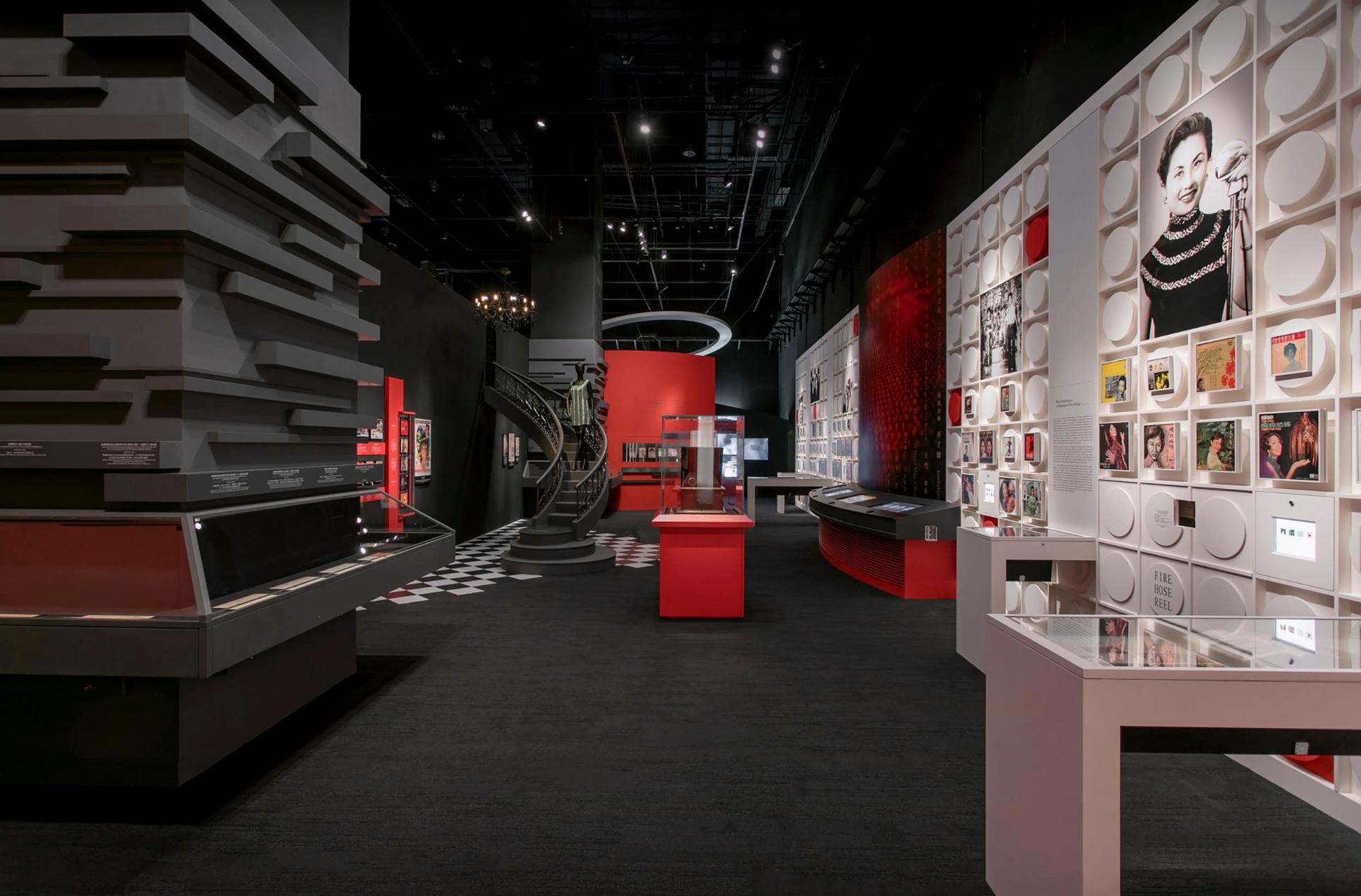 Beginning with the 'Diversity & Cultural Convergence' gallery, visitors are transported to different abstracted areas reflecting different influences on Hong Kong's popular culture and diversity. The modern contemporary design and bold red, grey and white colour scheme highlight the vibrant collection of Mandarin Pop records and Cantonese Opera artefacts, creating pockets of intrigue and photo-opportunistic moments.
