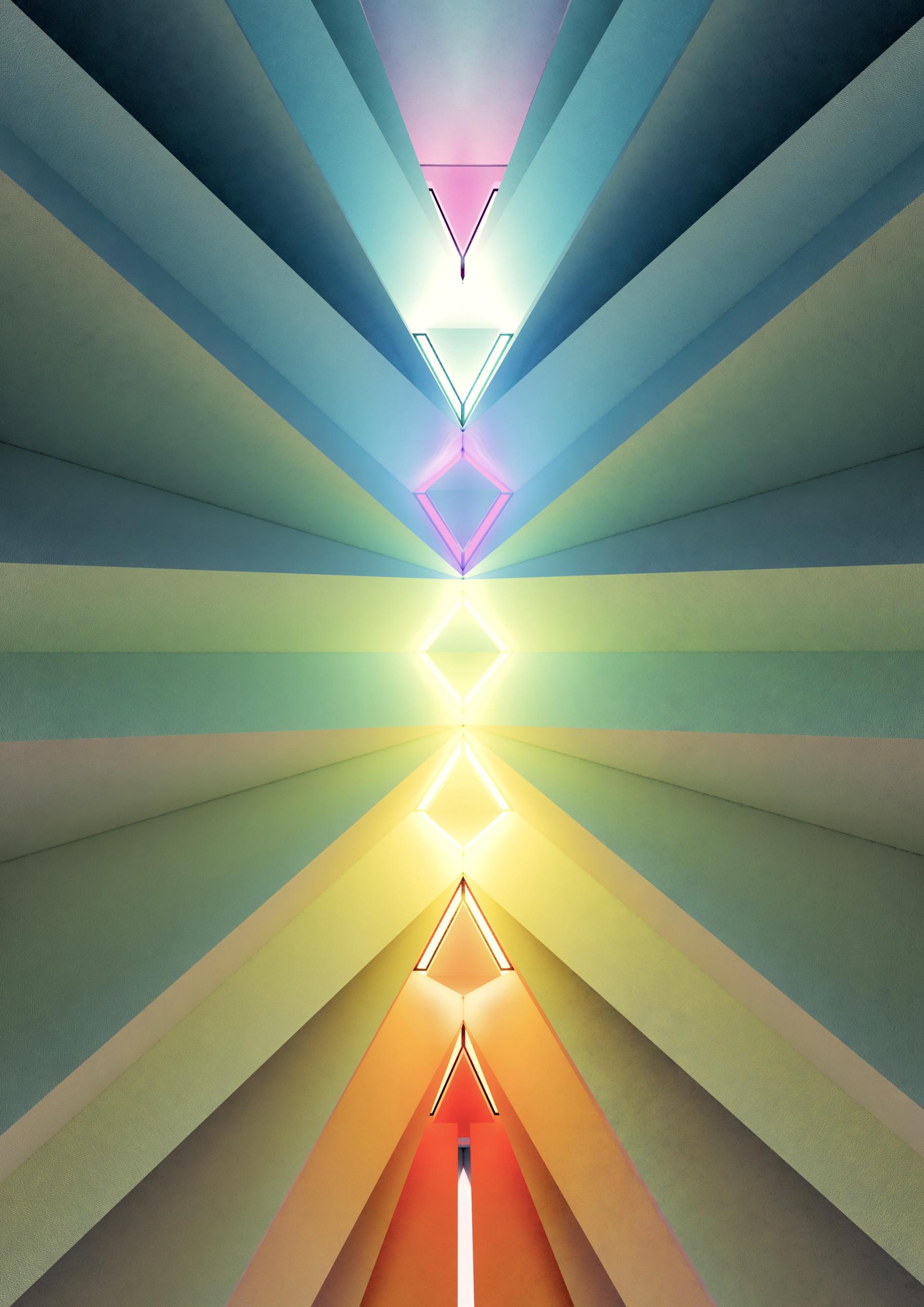 We have designed two paths, one bright and one dark, to reach the ceremony space inside the small auditorium. Different paths into the ceremony space bring two completely different walking experiences, leading to the same destination. The final destination is a mysterious seven color light and shadow space.