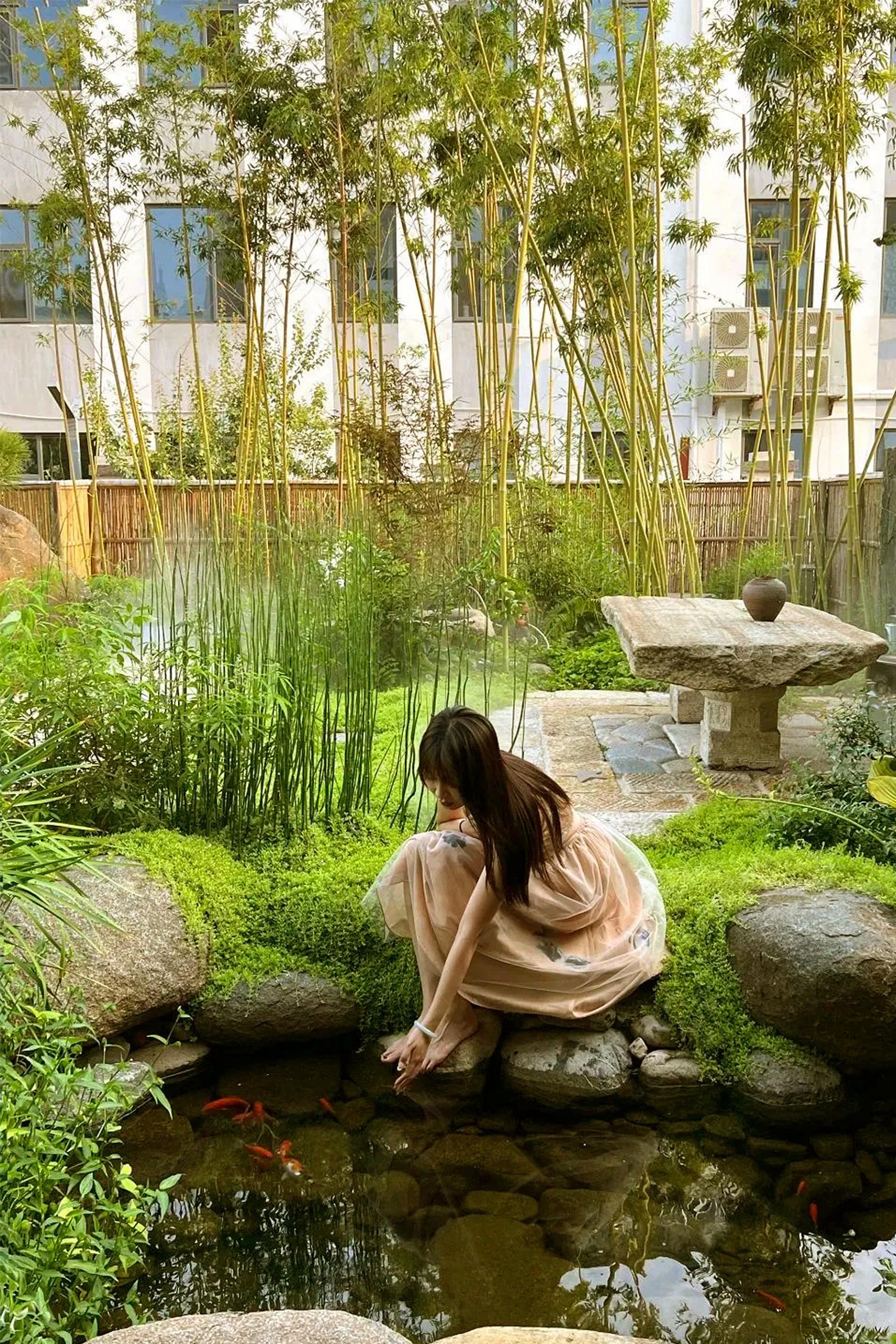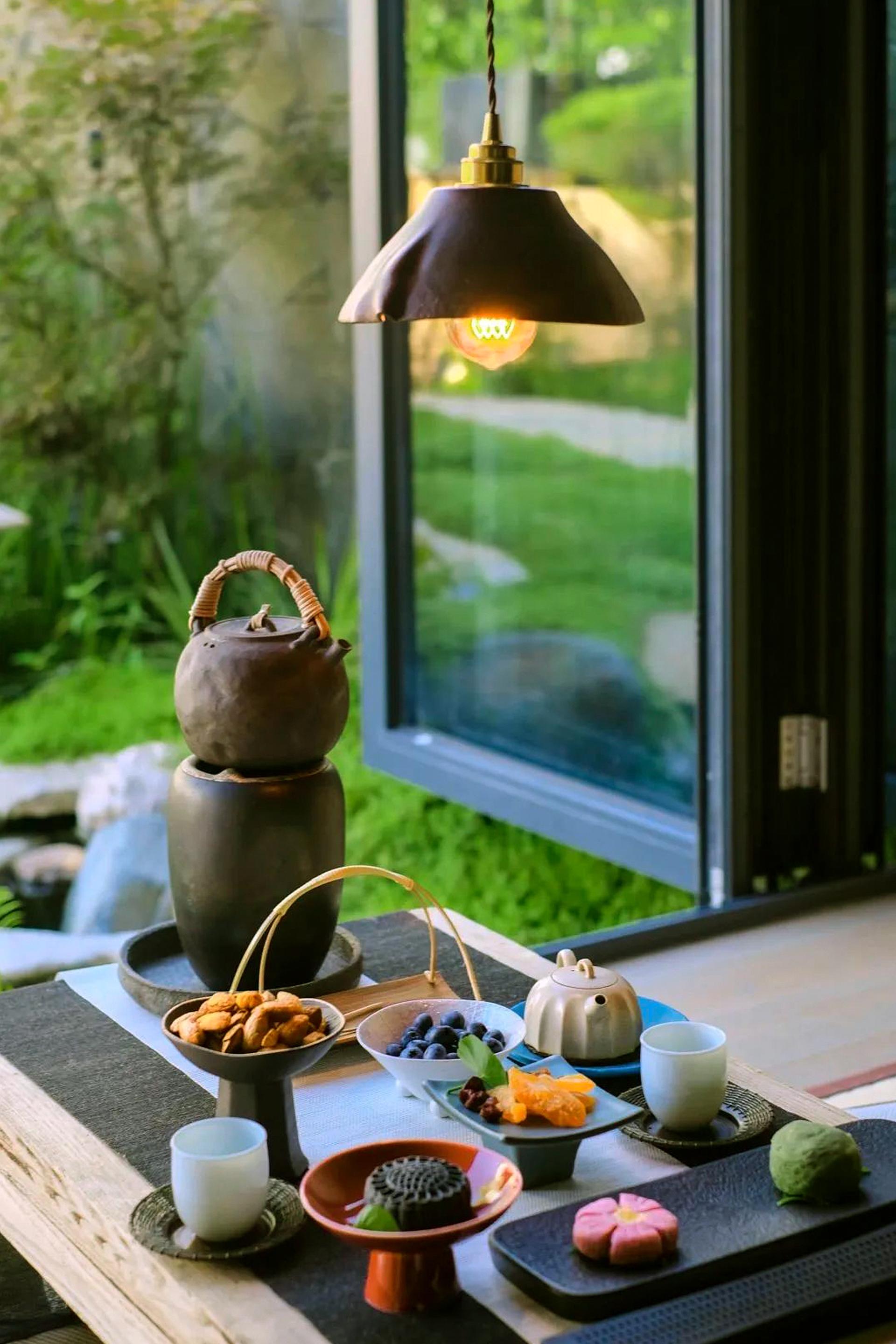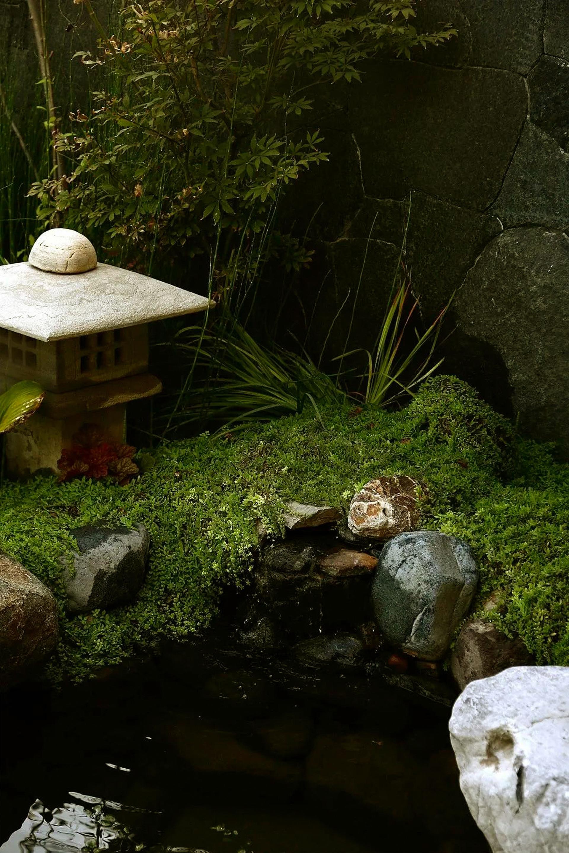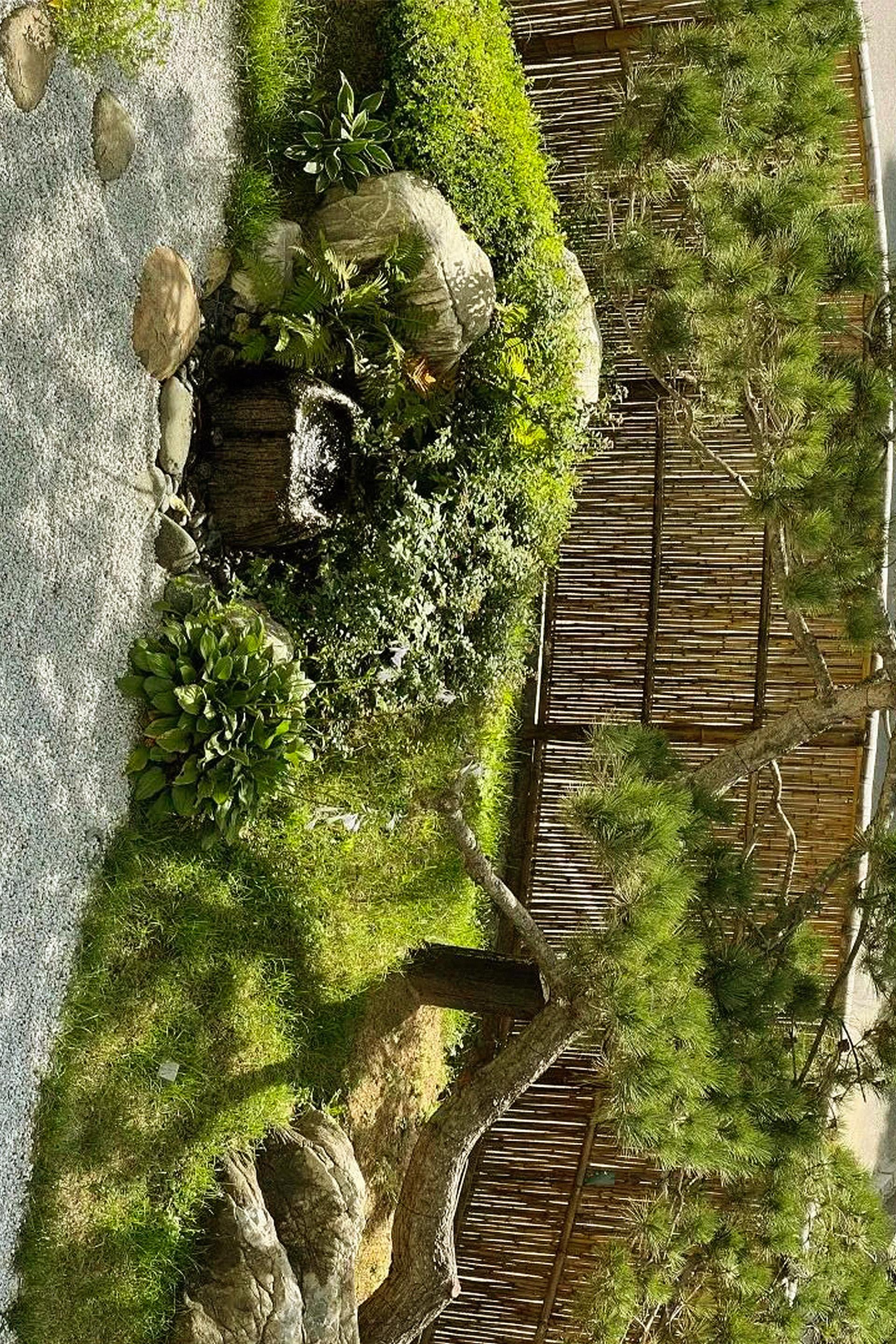 每个人都向往着诗和远方,但平凡生活才是日常。等风来,不如追风去,生活不是为了赶路,而是为了感受路。品一杯茶,时光无端柔软起来,看着屋外的小鸟,闻着近旁的花香,或者和朋友说几句家常话,不求得到,而是分享一种共鸣,岁华空冉冉,心曲空悠悠。窗边鱼池水钵,圆润的草地边缘,枯山水的石子,特殊形状的山石以及造型各异的植物汇聚凝结,利用窗口框景形成一幅美丽的画卷。坐在小池边喝茶,看着水中鱼儿游来游去,树叶随风摇曳,一缕缕阳光透过叶片映出屋内,不自觉便大脑放空,感觉自己恍惚间也变成一条鱼,与它们交流,成群结队,淡之喧嚣,坐拥宁静。