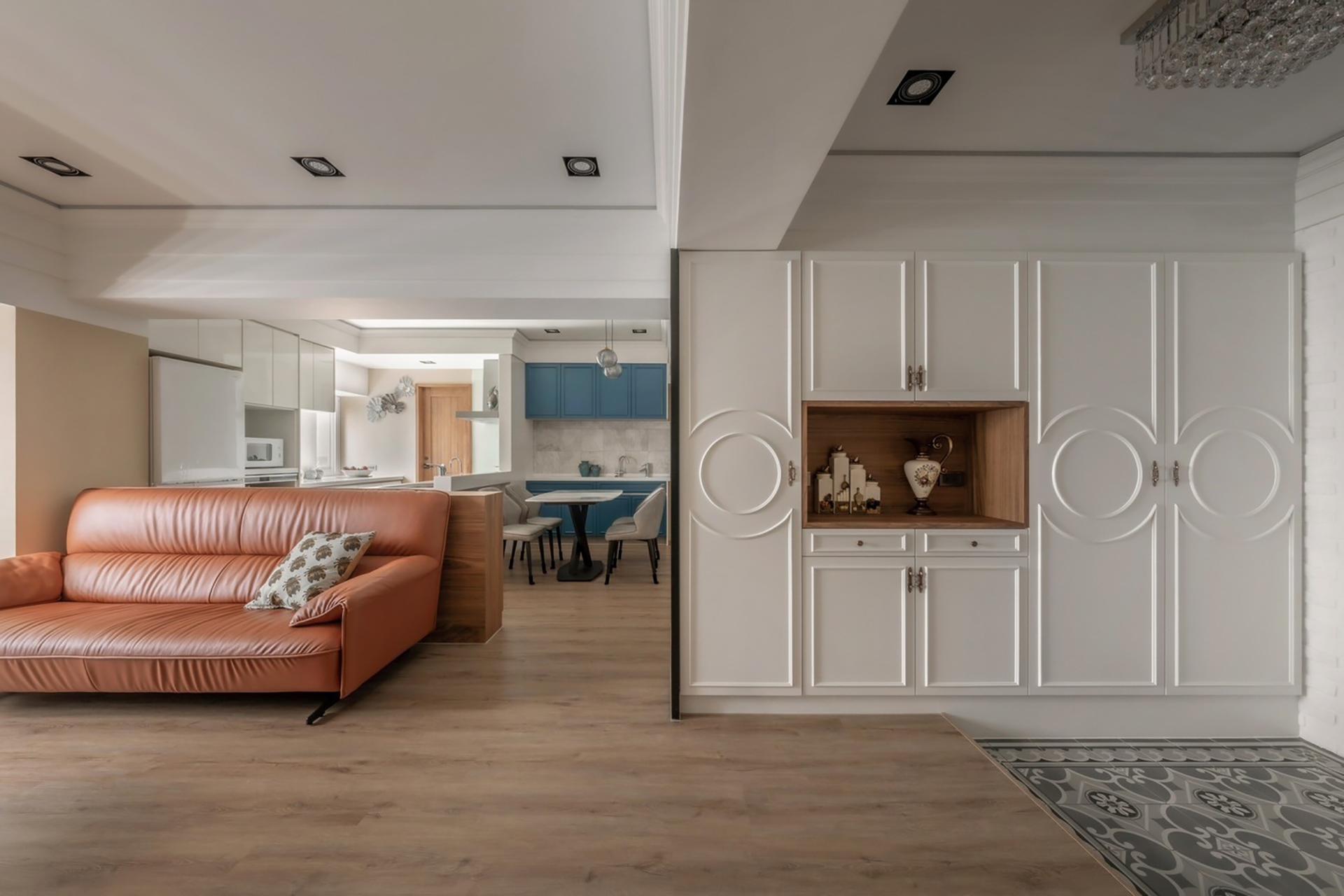 The project takes place in an old apartment and is named "Artistic Flow" to reflect the gallery-like ambiance of the space. By incorporating an American country-style design, the designer seamlessly integrates the homeowner’s cherished art pieces and antiques into the home.