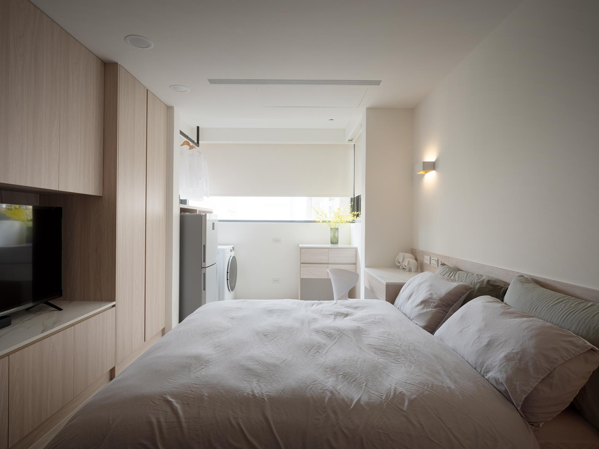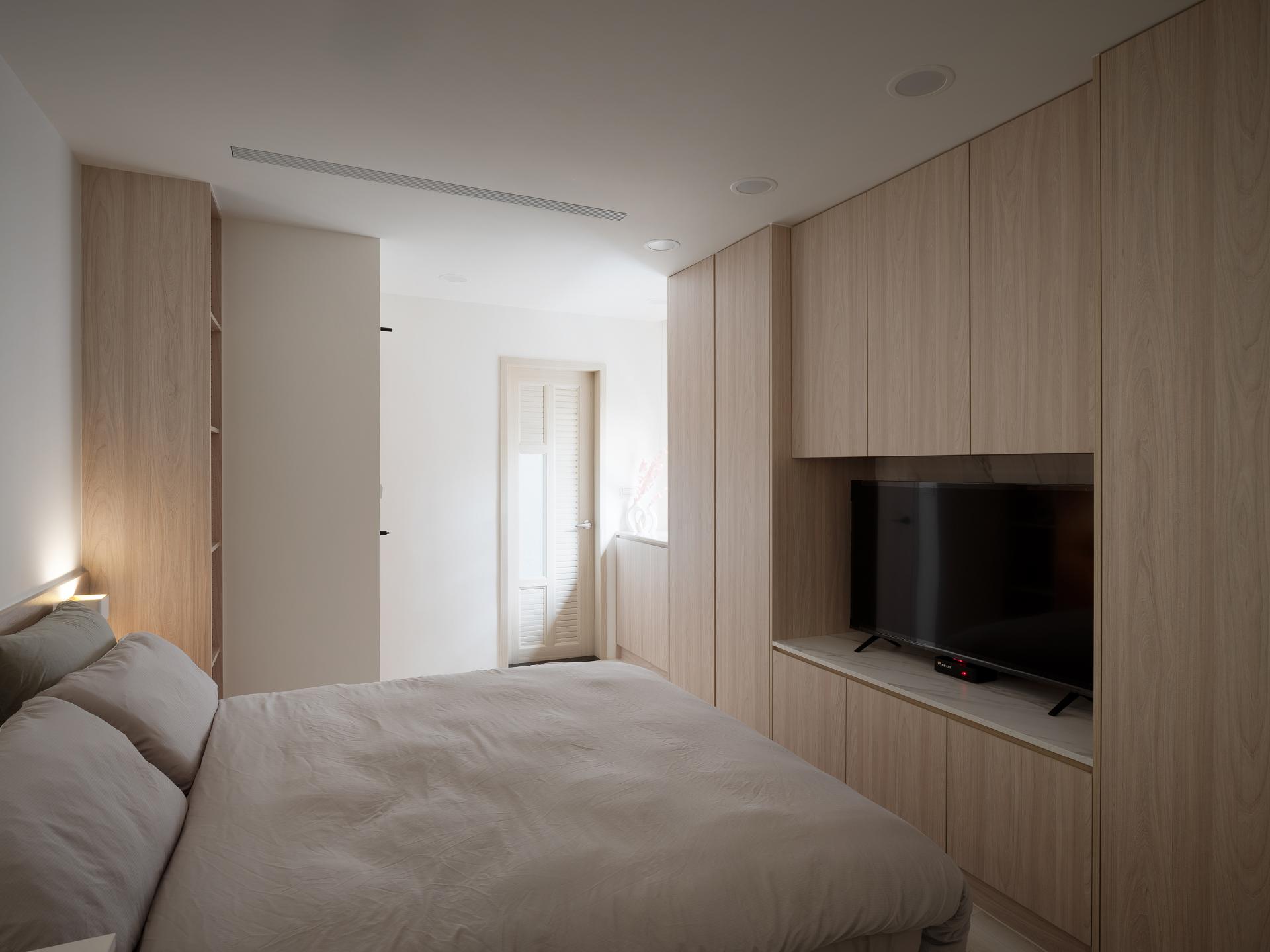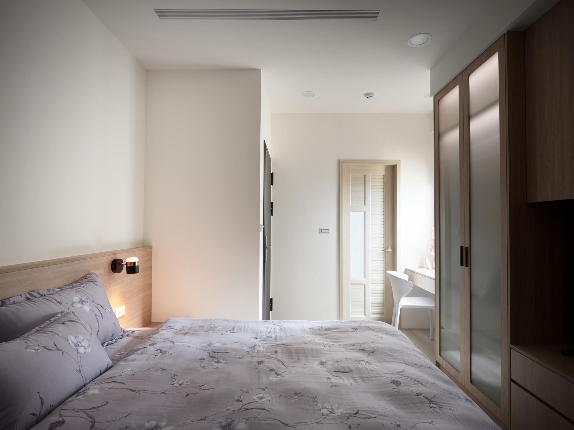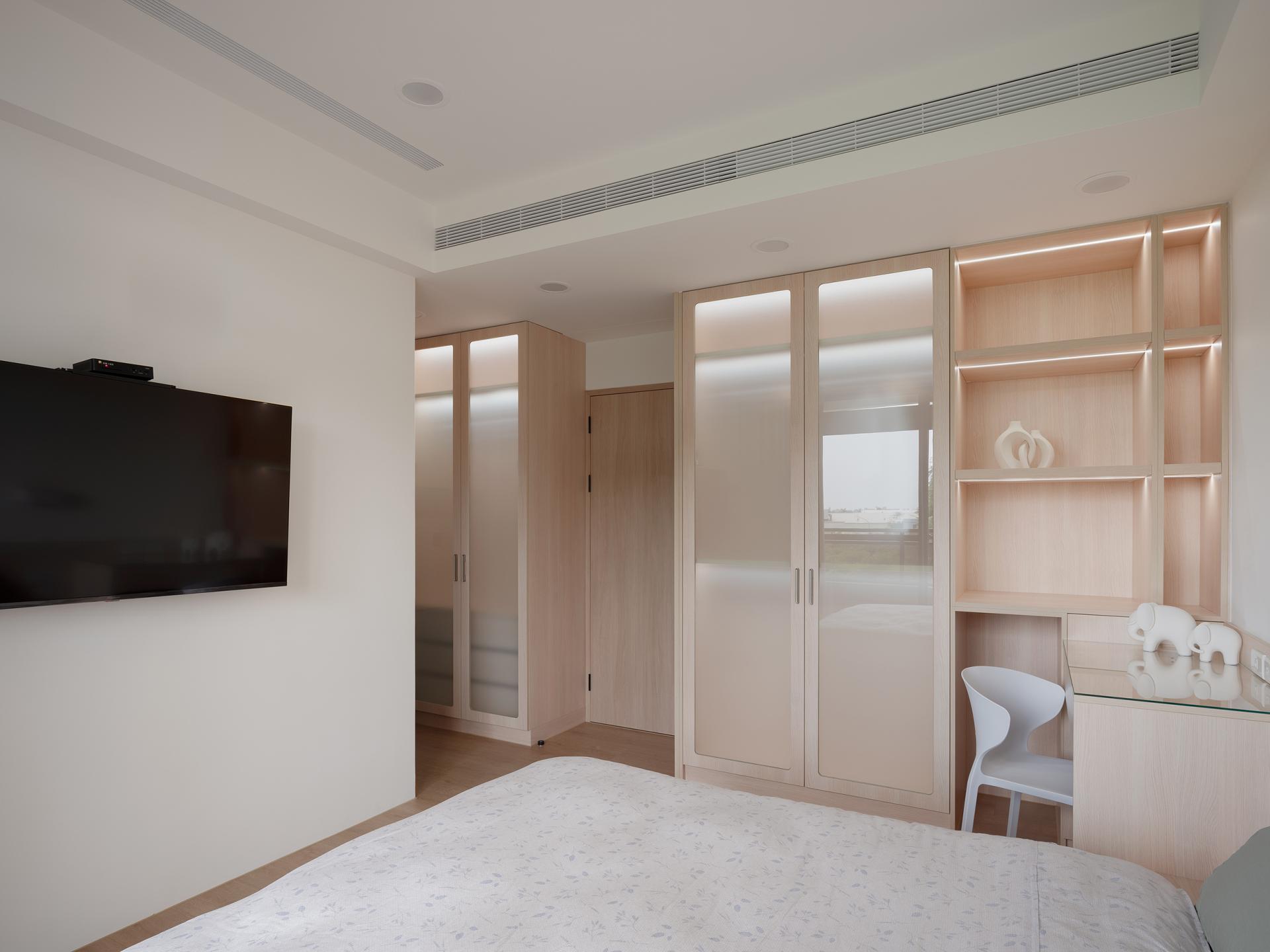 The interior designers skillfully utilize arched elements to adorn columns, corners, and ceilings throughout the design. Paired with indirect lighting, the curved transitions beautifully diffuse gradients of light and shadow, allowing one’s gaze to naturally follow the arc, seamlessly connecting the living room, dining area, and kitchen. This creates a warm atmosphere conducive to family gatherings. The design incorporates concealed air conditioning and maintenance access, making future upkeep more convenient, with vents cleverly hidden within the ceiling.